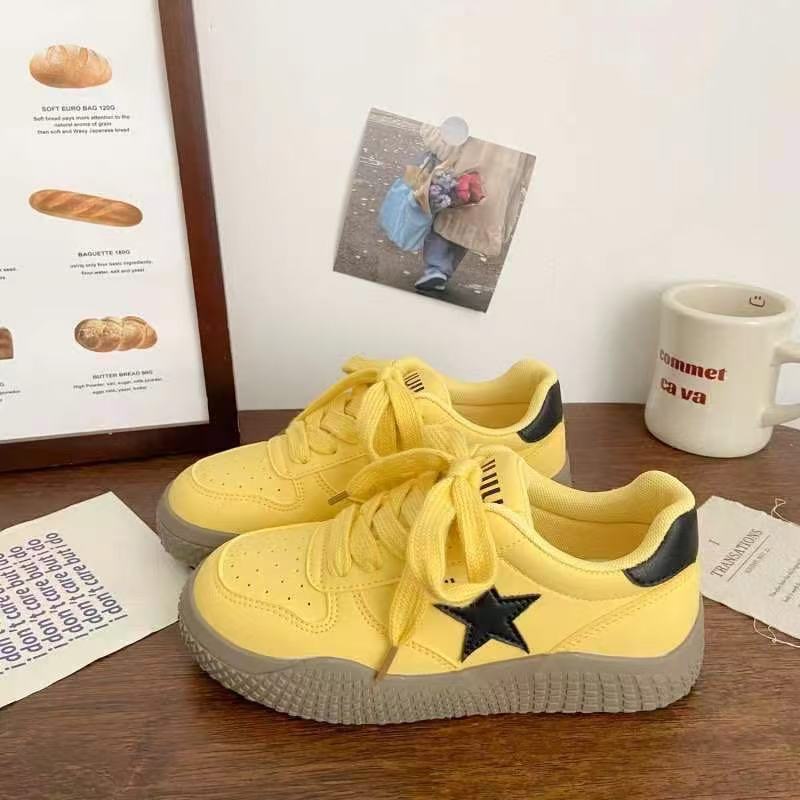 핑크 플랫폼 신발 여성 스타 봄 새로운 세련된 틈새 디자인 가죽 흰색 신발 학생 스포츠스토어 가기