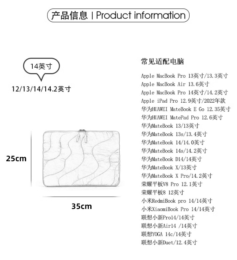 퀼트 및 자수 워터 드롭 패턴 IPDA 라이너 백 휴대용 간단한 색상과 logo14 인치 휴대용 방수 컴퓨터 가방