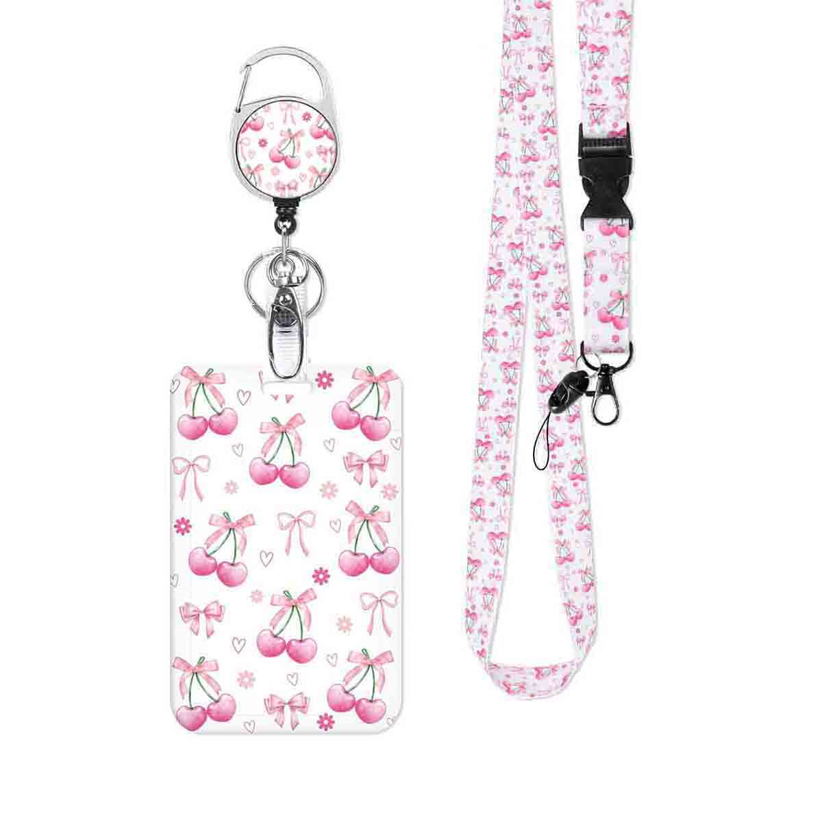 국경 간 체리 여성 인증서 교수형 목 로프 유방 카드 카드 홀더 개폐식 벨트 뒷면 클립 360 회전 쉬운 풀 버클스토어 가기