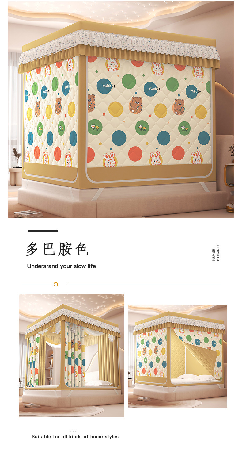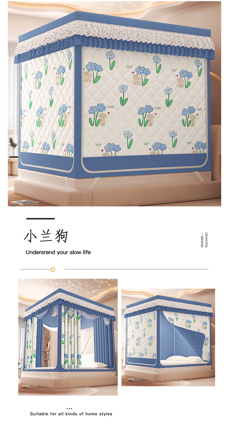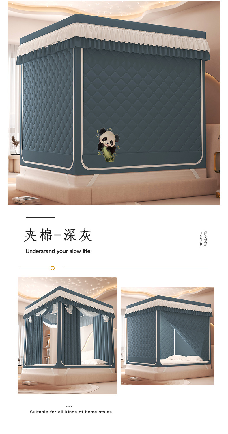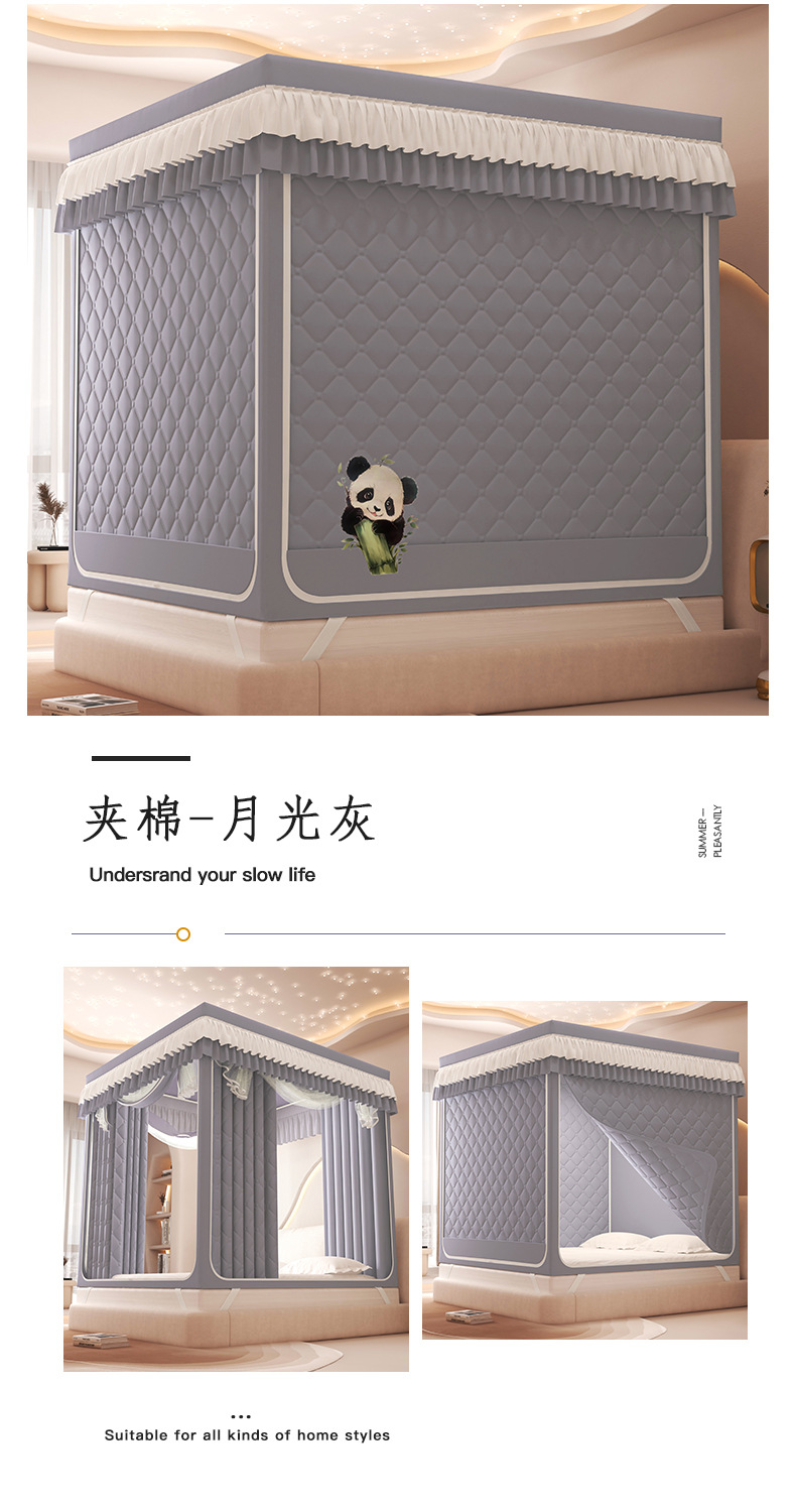 2025 새로운 따뜻한 낙하 모기장 직접 겨울 지퍼 샌딩 면 침대 커튼 강한 음영 모기장스토어 가기