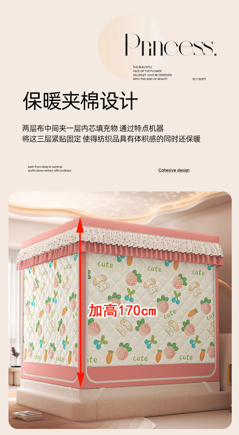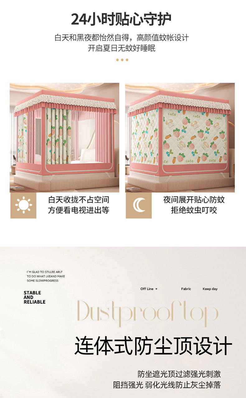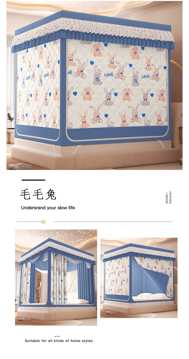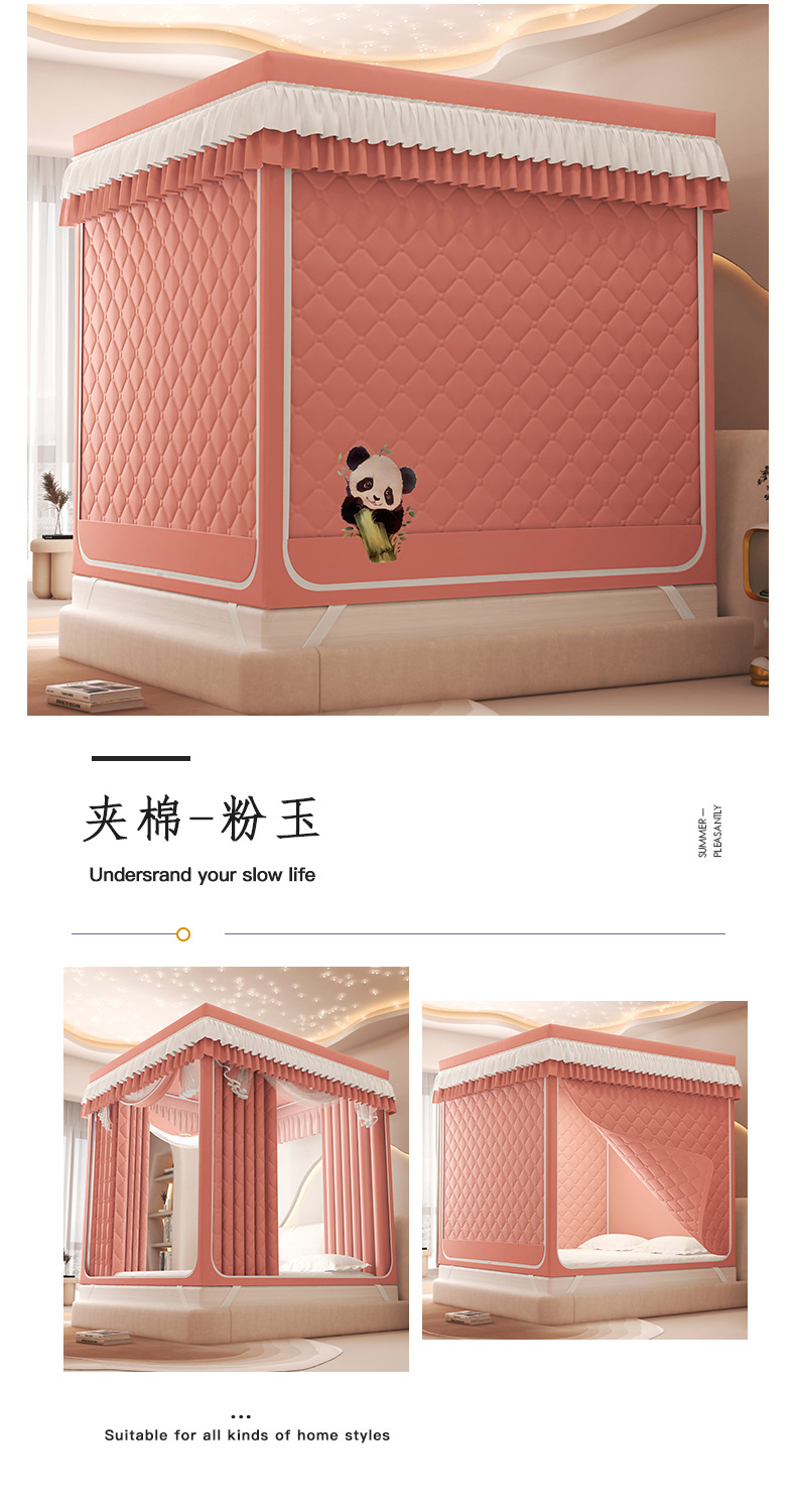 2025 새로운 따뜻한 낙하 모기장 직접 겨울 지퍼 샌딩 면 침대 커튼 강한 음영 모기장스토어 가기