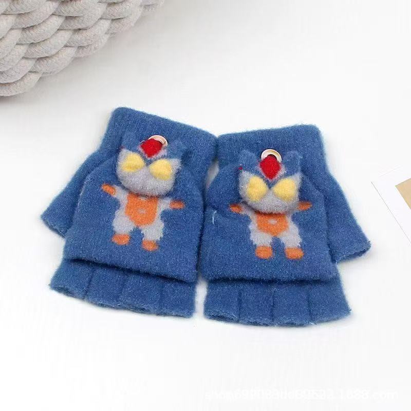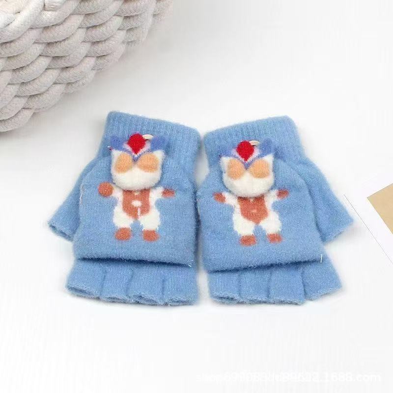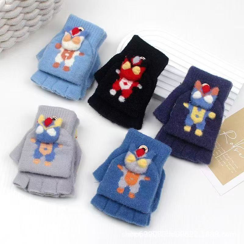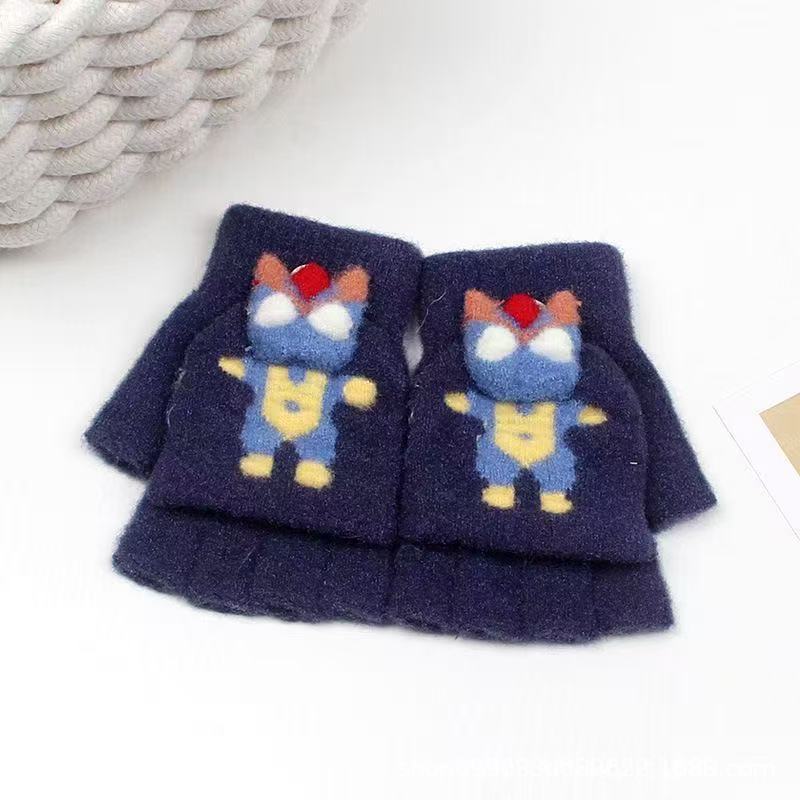 어린이 따뜻한 장갑 귀여운 만화 감기 방지 아기 소년과 소녀 니트 양모 반 손가락 가을과 겨울 플립 중간 크기의 어린이