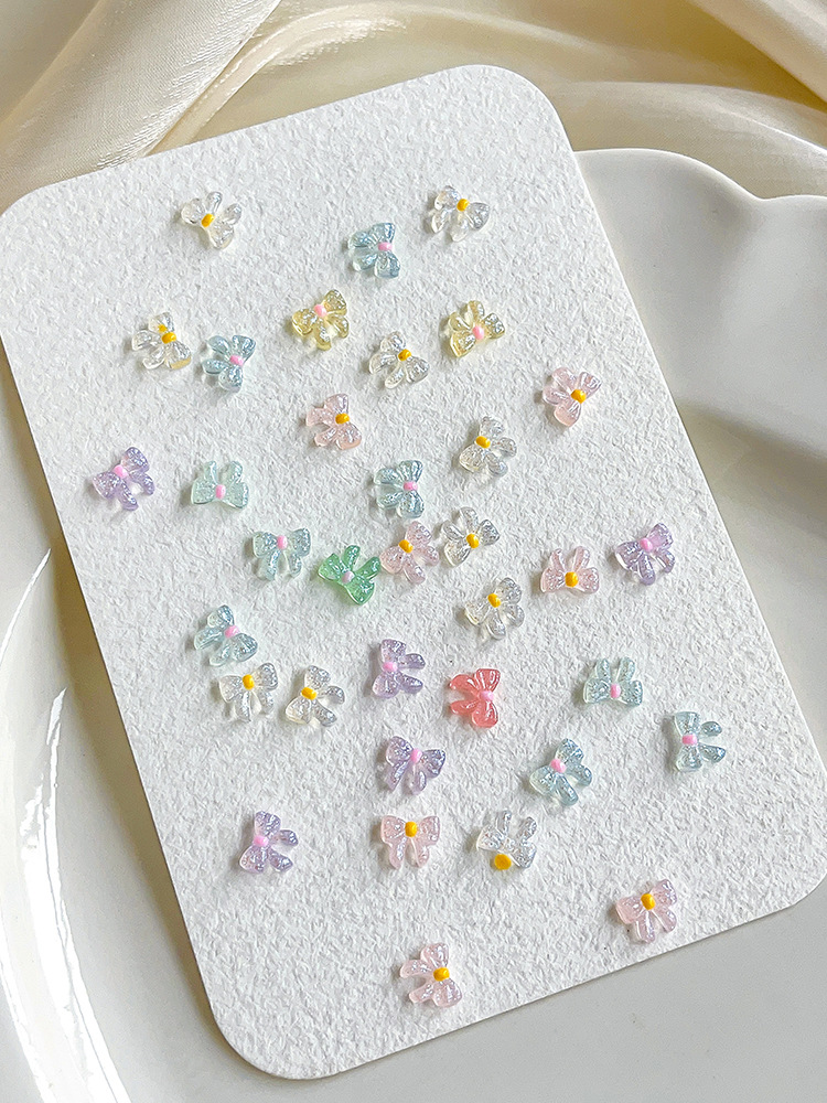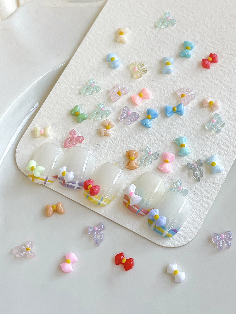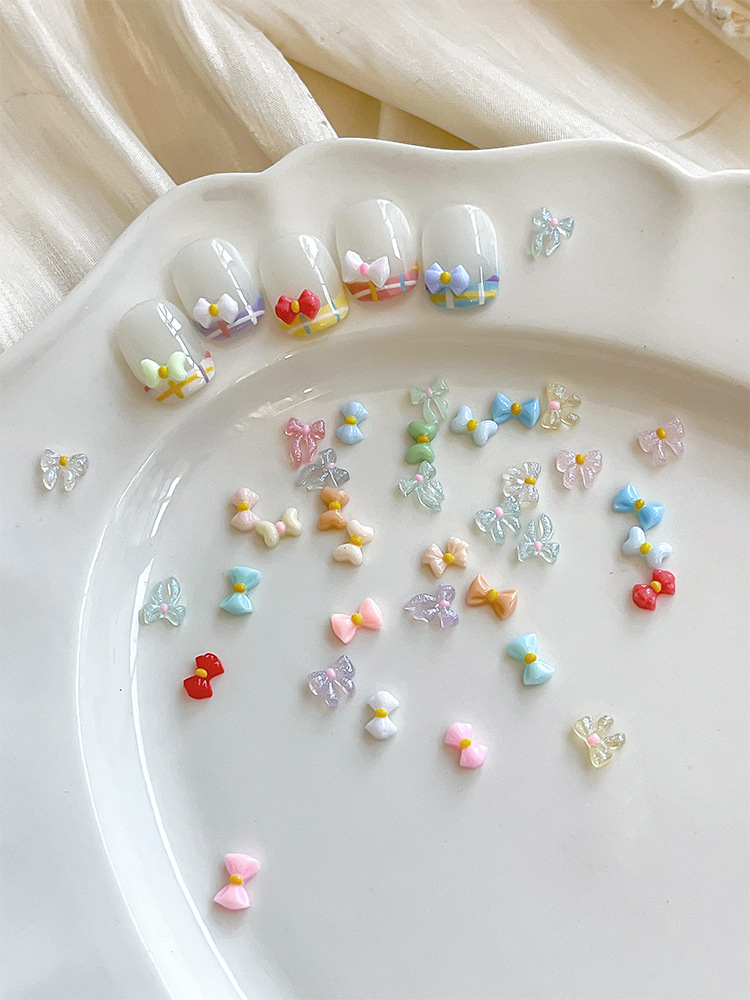 다채로운 활 네일 아트 쥬얼리 수지 얼음 달콤한 빛 럭셔리 스타일 플랫 엔드 착용 갑옷 장식 도매