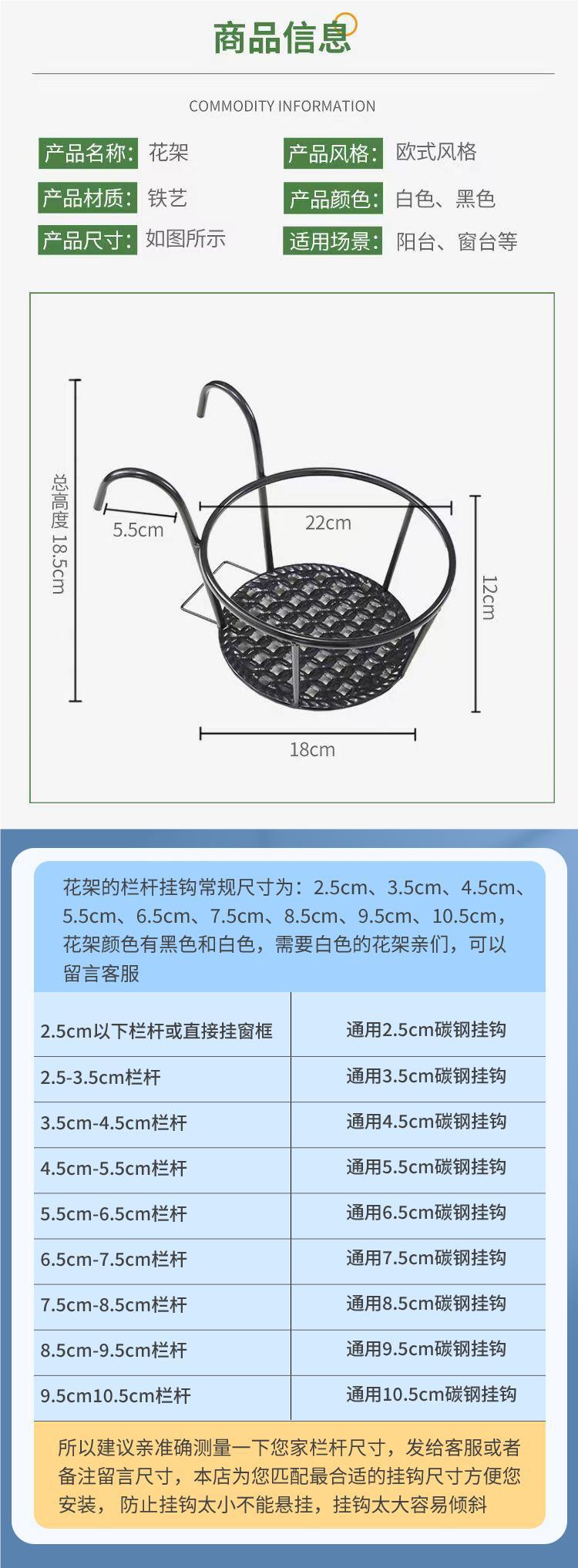 • 2개 구매 시 1개 무료 두꺼운 강철 막대 단일 바구니 검정색 꽃 바구니 바닥 직경 18cm