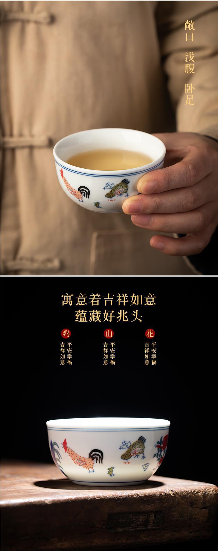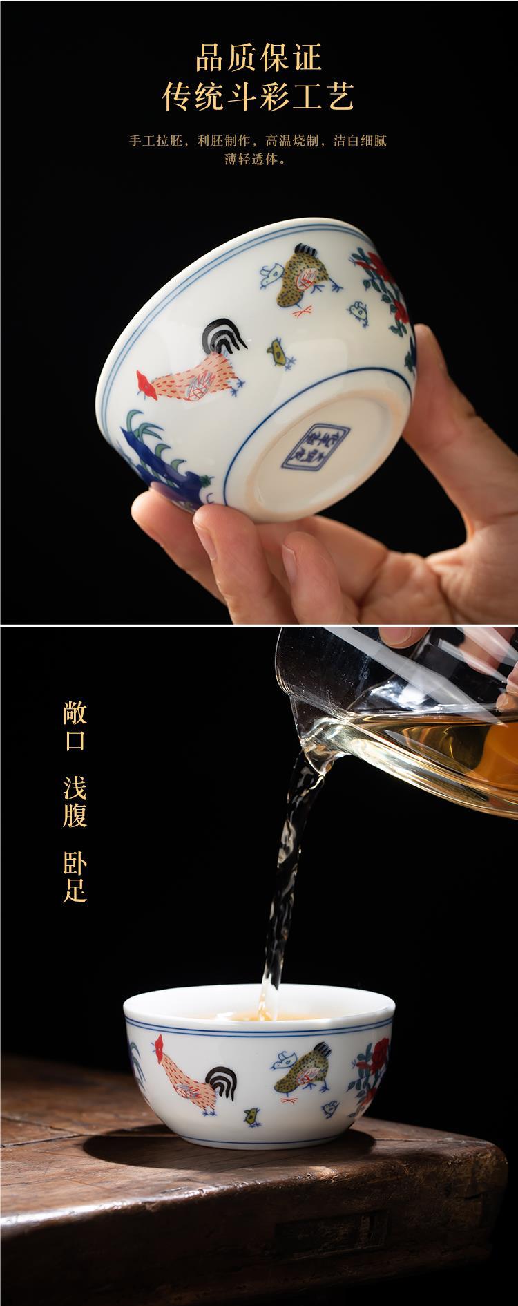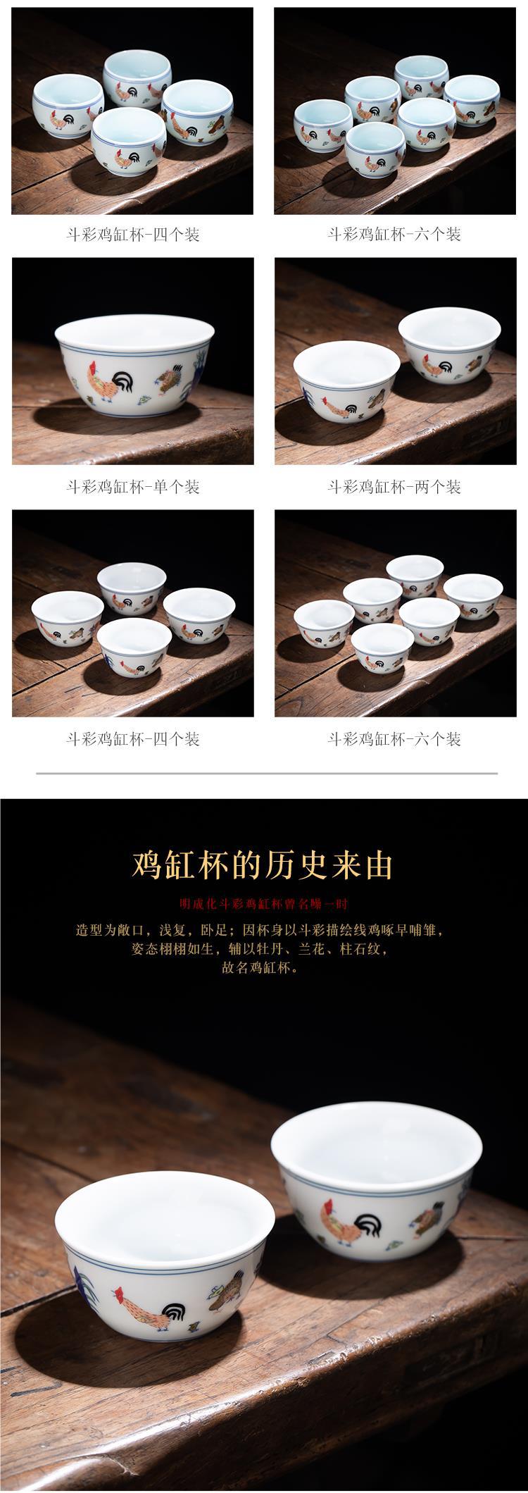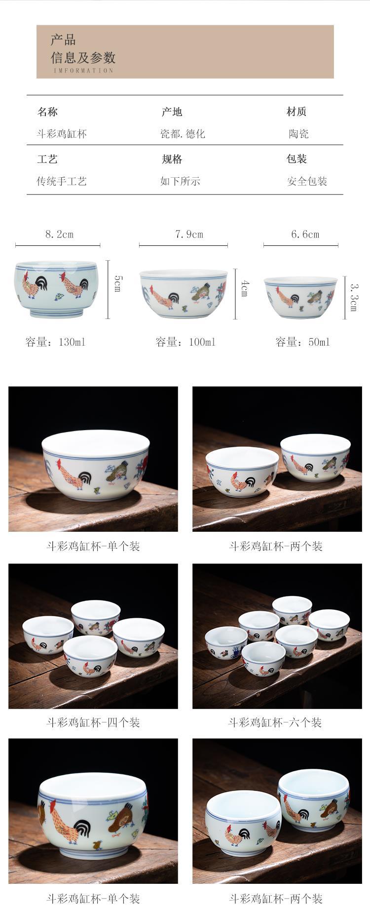 0.28 억 치킨컵 징데첸 골동품 찻잔 6 팩 쿵푸 차 세트 티 컵 가정용 마스터 컵 싱글 컵스토어 가기