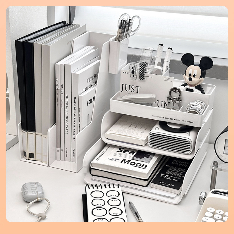 ✅파일 저장 상자 사무실 책장 데스크톱 저장 플라스틱 가정용 책 다층 A4 문구 책상 보관