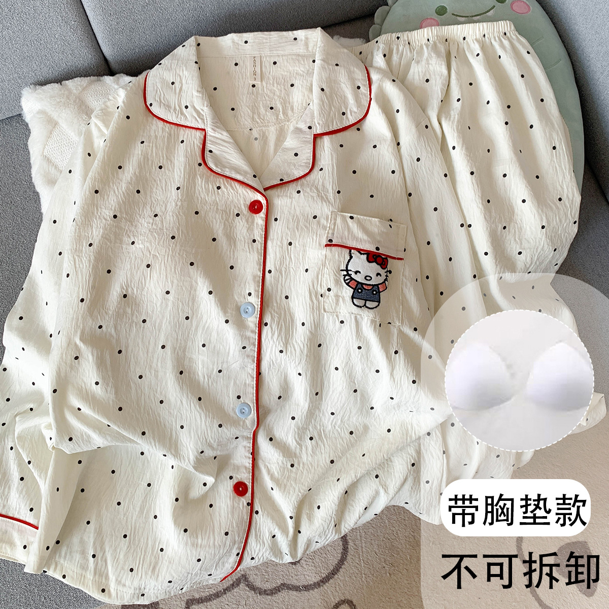 • (고정가슴패드) [Yunduo Cotton] 폴카 도트 KT 고양이 (긴팔+긴바지)