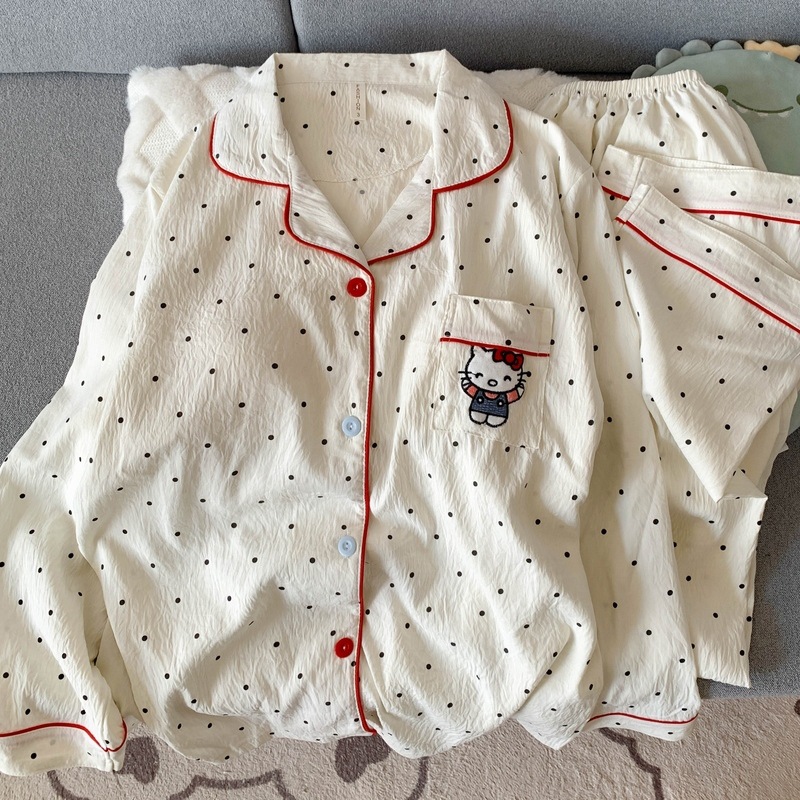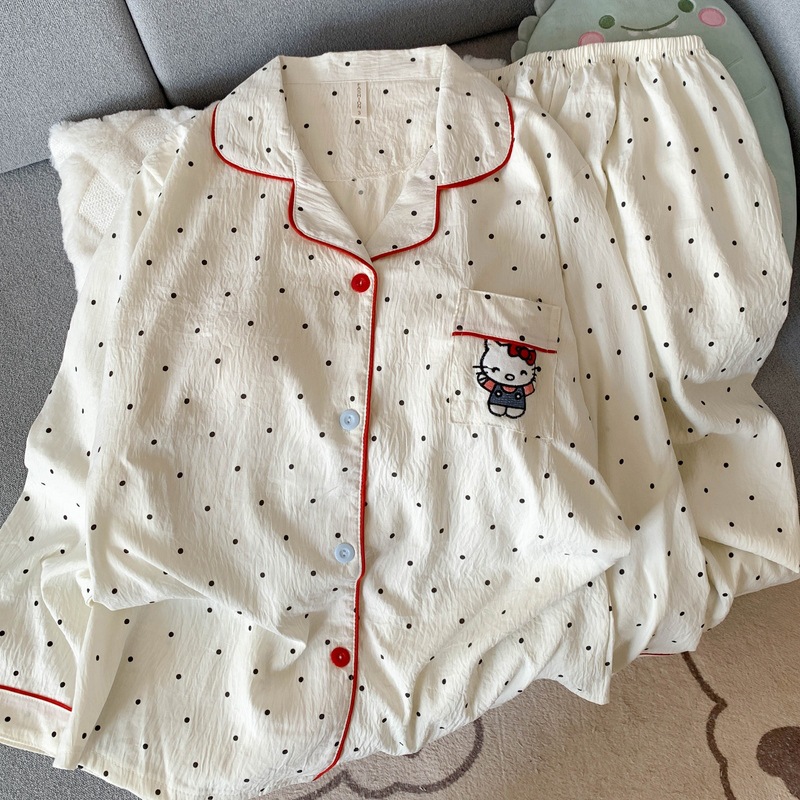 • (가슴패드 없음) [Yunduo Cotton] 폴카 도트 KT 고양이 (긴팔+긴바지)