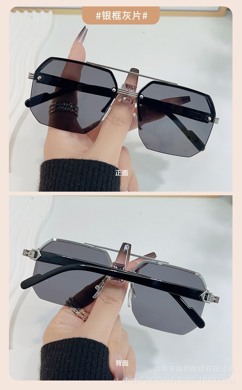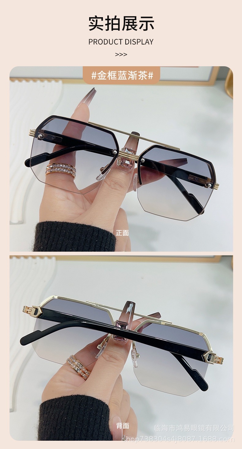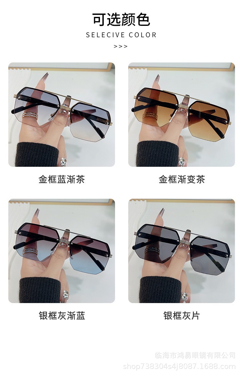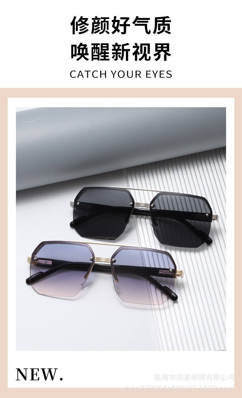 대외 무역 새로운 관대 한 프레임 선글라스 여성 유럽과 미국 패션 더블 빔 선글라스 남성 하프 프레임 선글라스 도매스토어 가기