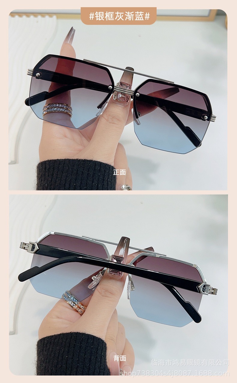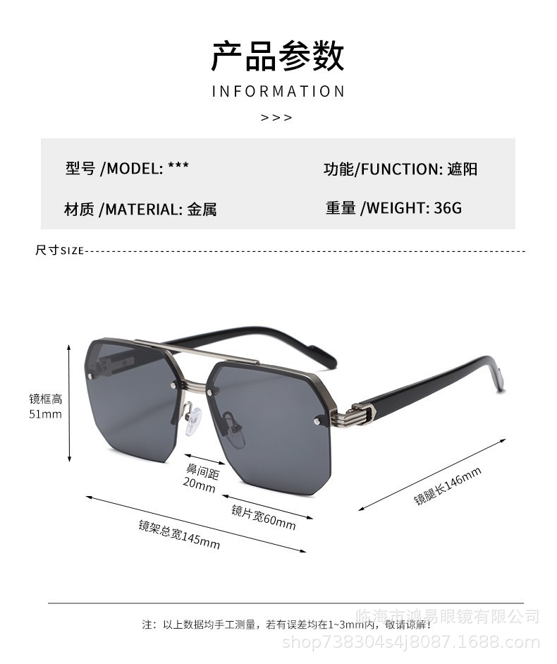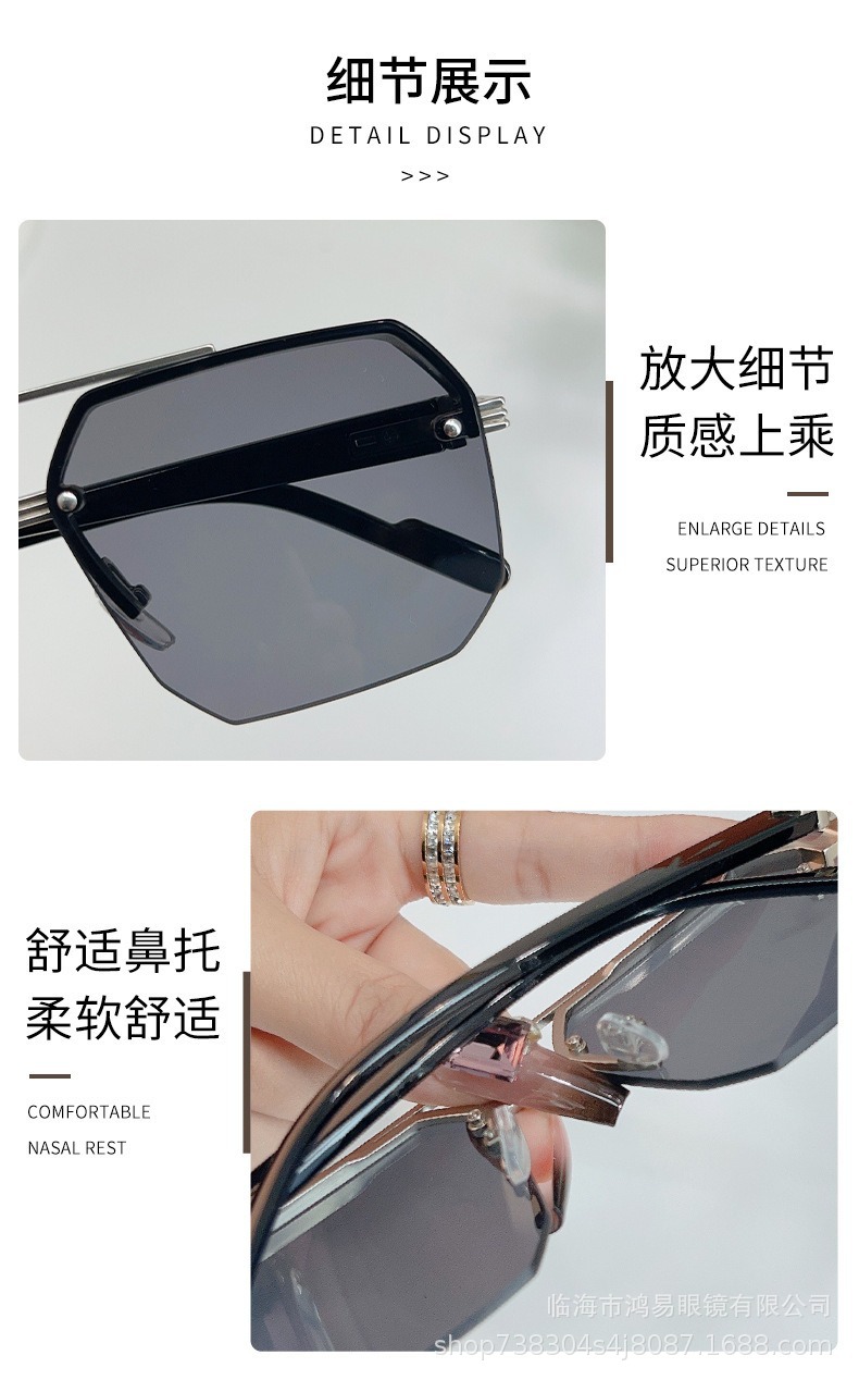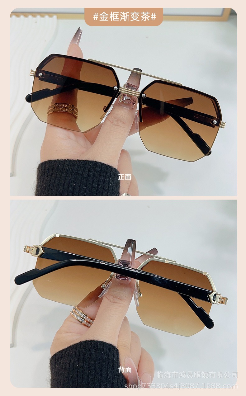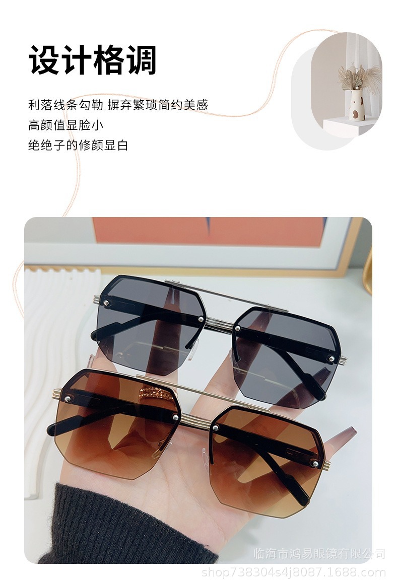 대외 무역 새로운 관대 한 프레임 선글라스 여성 유럽과 미국 패션 더블 빔 선글라스 남성 하프 프레임 선글라스 도매스토어 가기