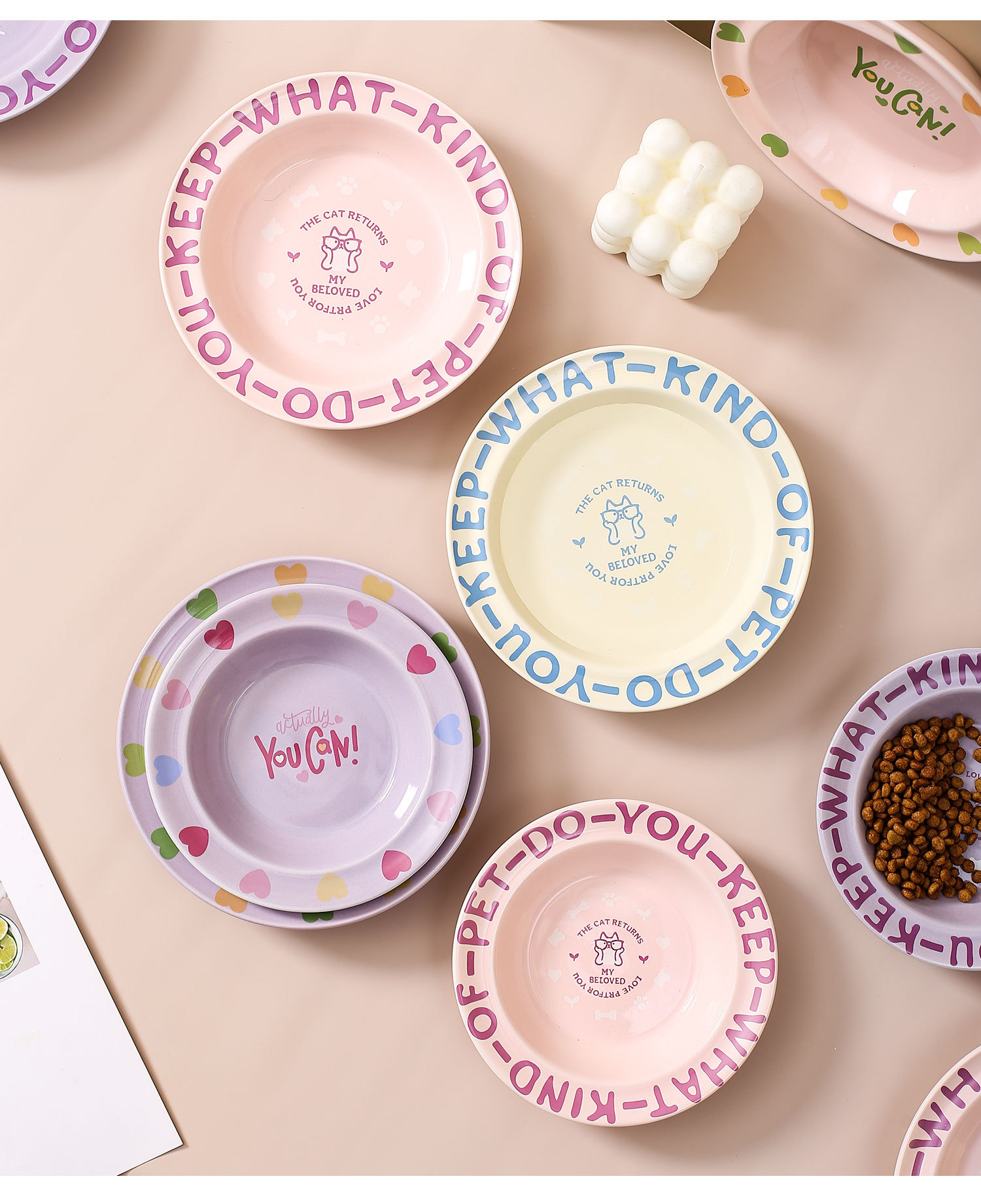 창조적 인 만화 패턴 비행 접시 가정용 애완 동물 그릇 세라믹 고양이 밥 그릇 개 그릇 가장자리 보호 애완 동물 제품