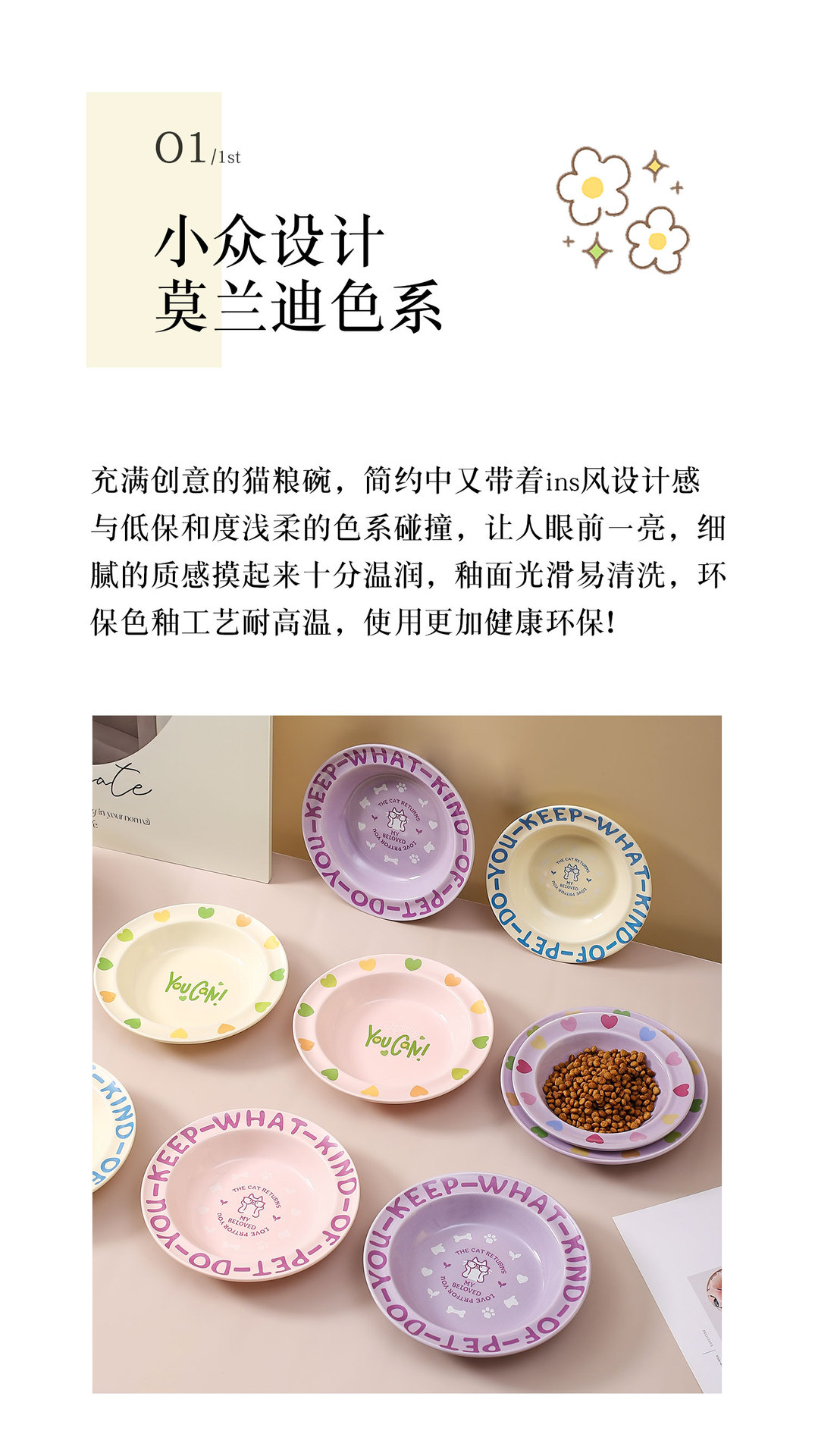 창조적 인 만화 패턴 비행 접시 가정용 애완 동물 그릇 세라믹 고양이 밥 그릇 개 그릇 가장자리 보호 애완 동물 제품스토어 가기