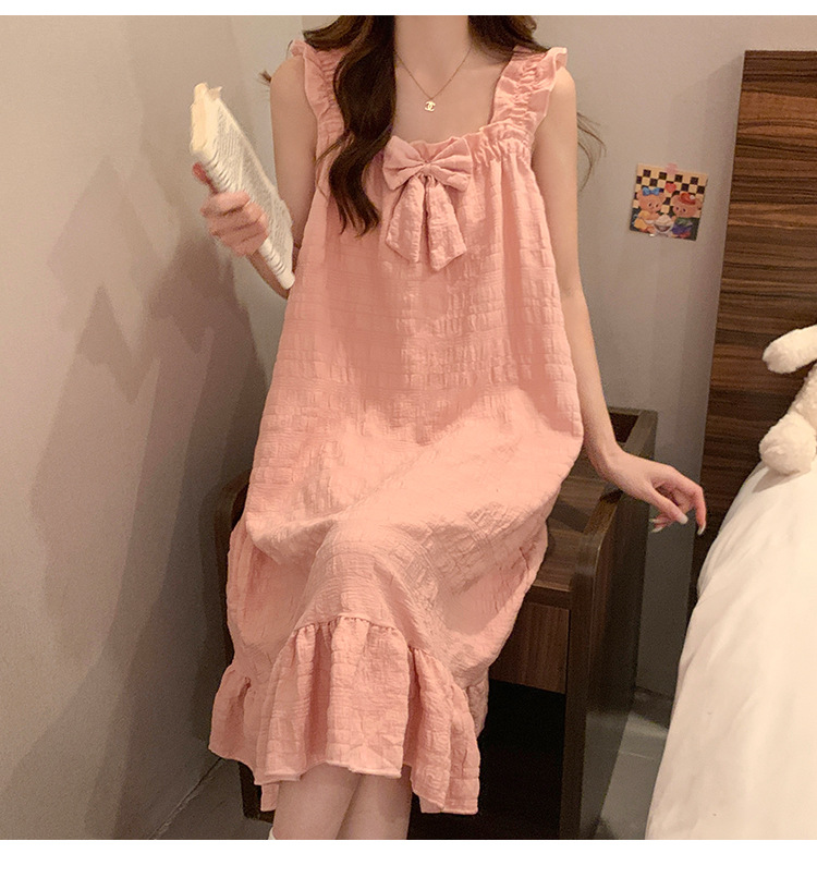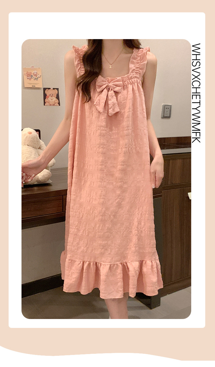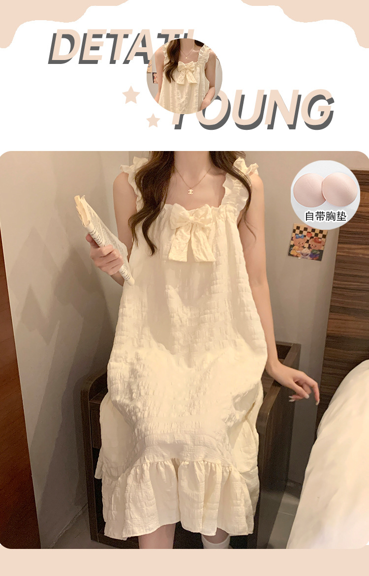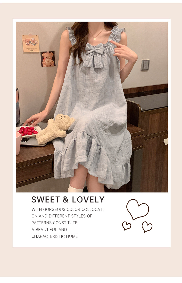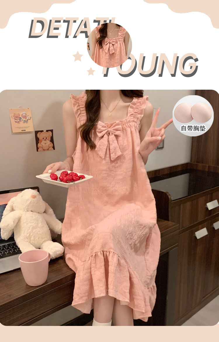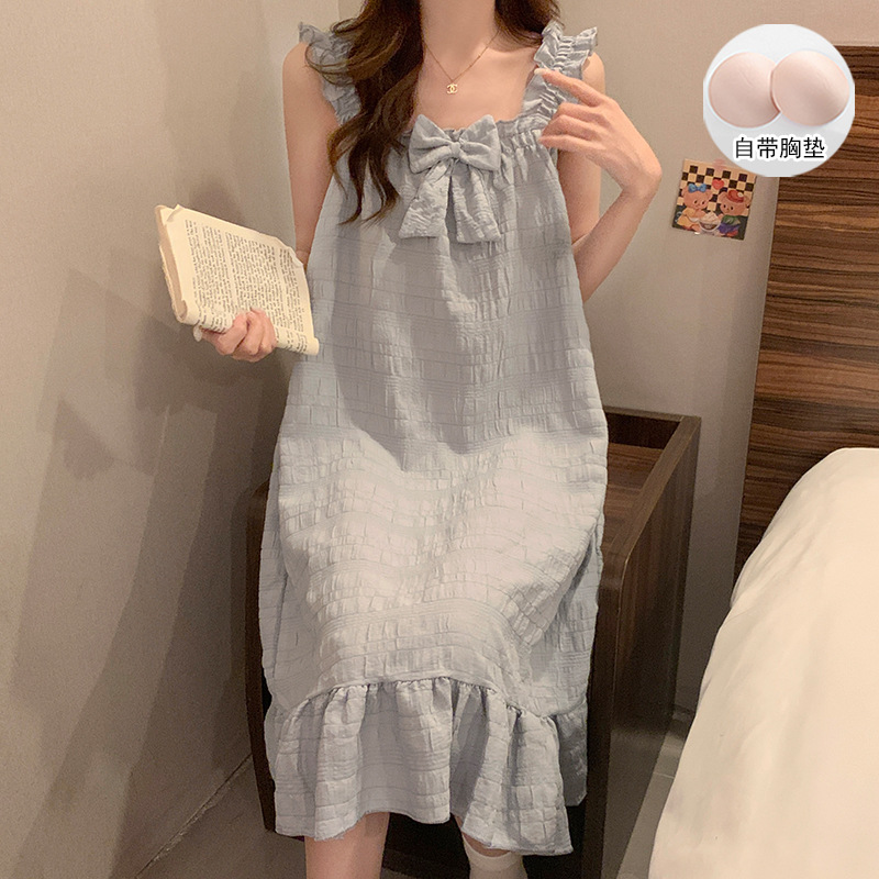 국경 단색 일본 스타일 슬링 나이트 가운 여성 벨트 가슴 패드 여름 공주 스타일 플러스 사이즈 느슨한 홈 옷 귀여운 세트스토어 가기
