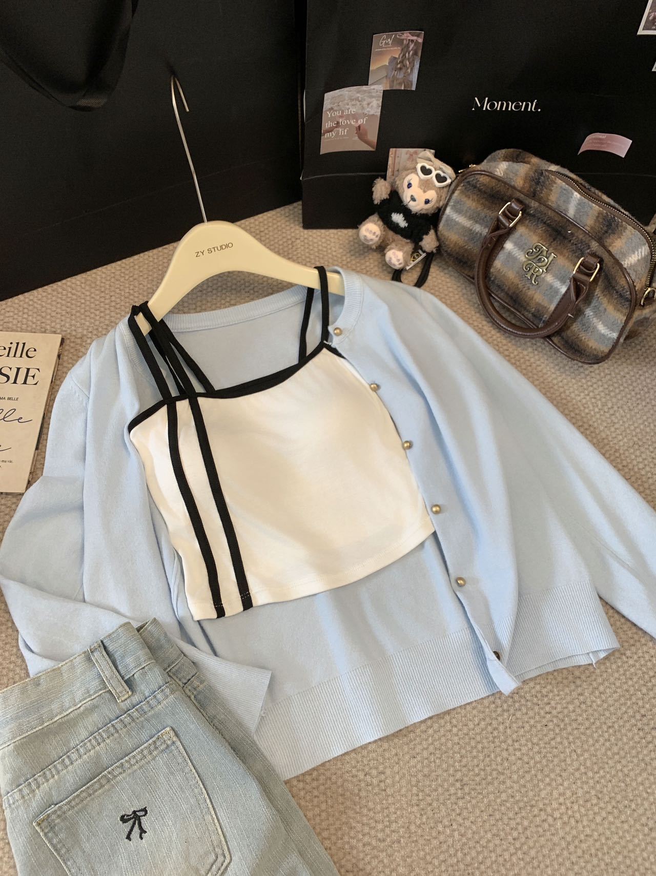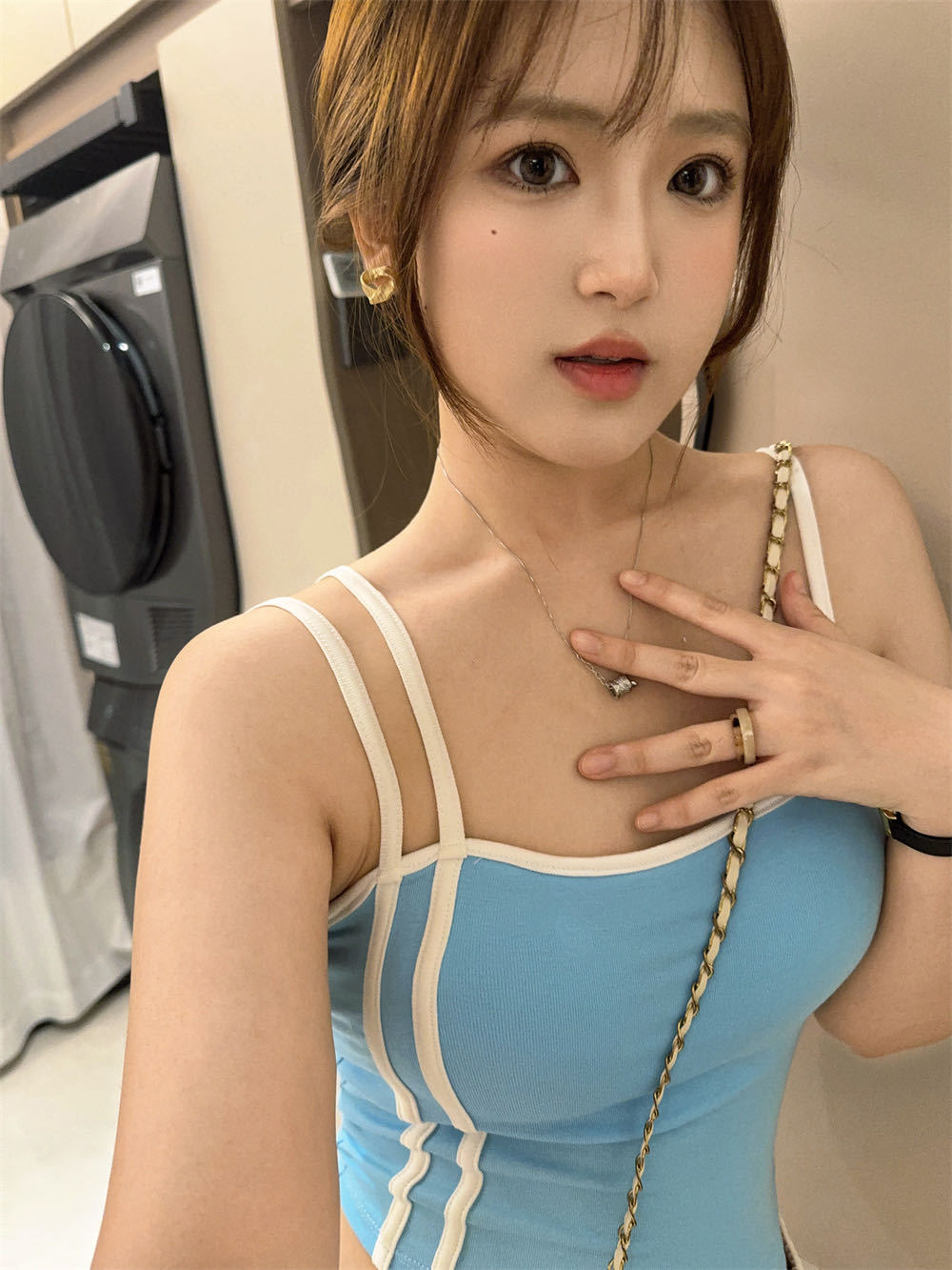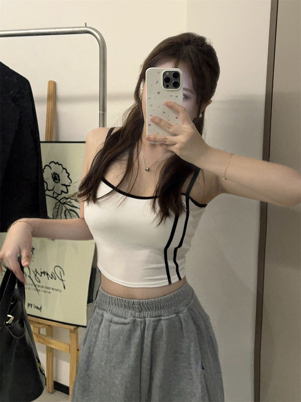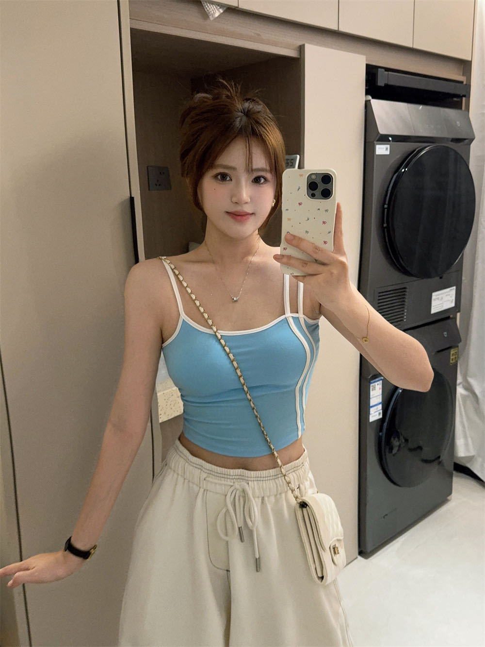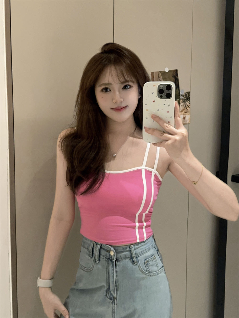 1065 # 미국 스파이스 소녀 외부 착용 슬링 순수 섹스 섹시 벨트 가슴 패드 내베이스 슬림 핏 짧은 아름다운 뒷면스토어 가기