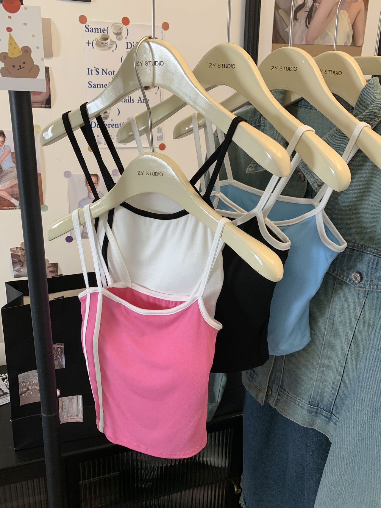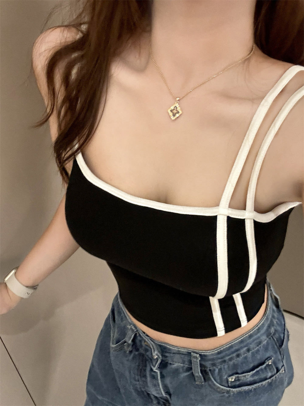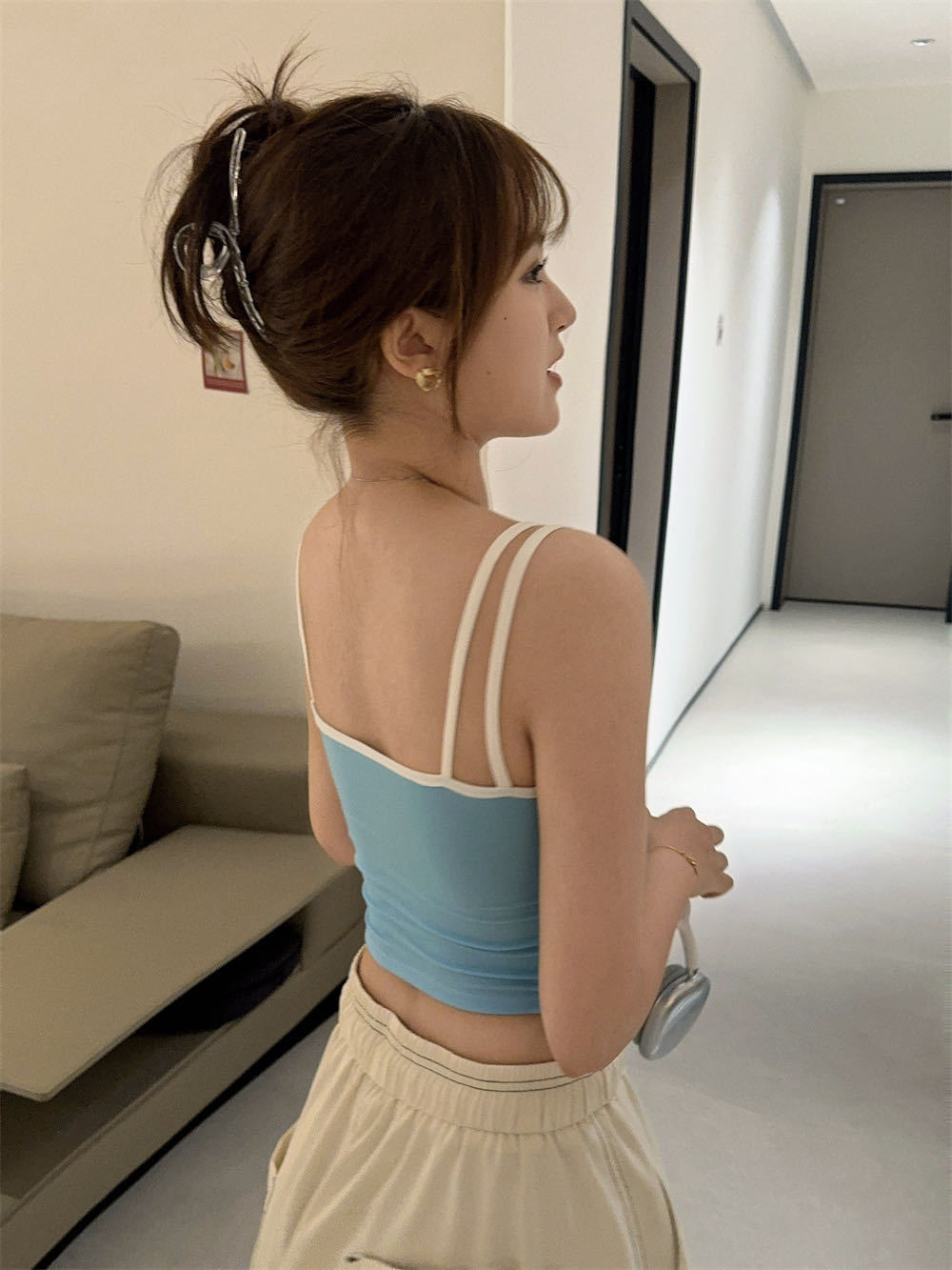 1065 # 미국 스파이스 소녀 외부 착용 슬링 순수 섹스 섹시 벨트 가슴 패드 내베이스 슬림 핏 짧은 아름다운 뒷면