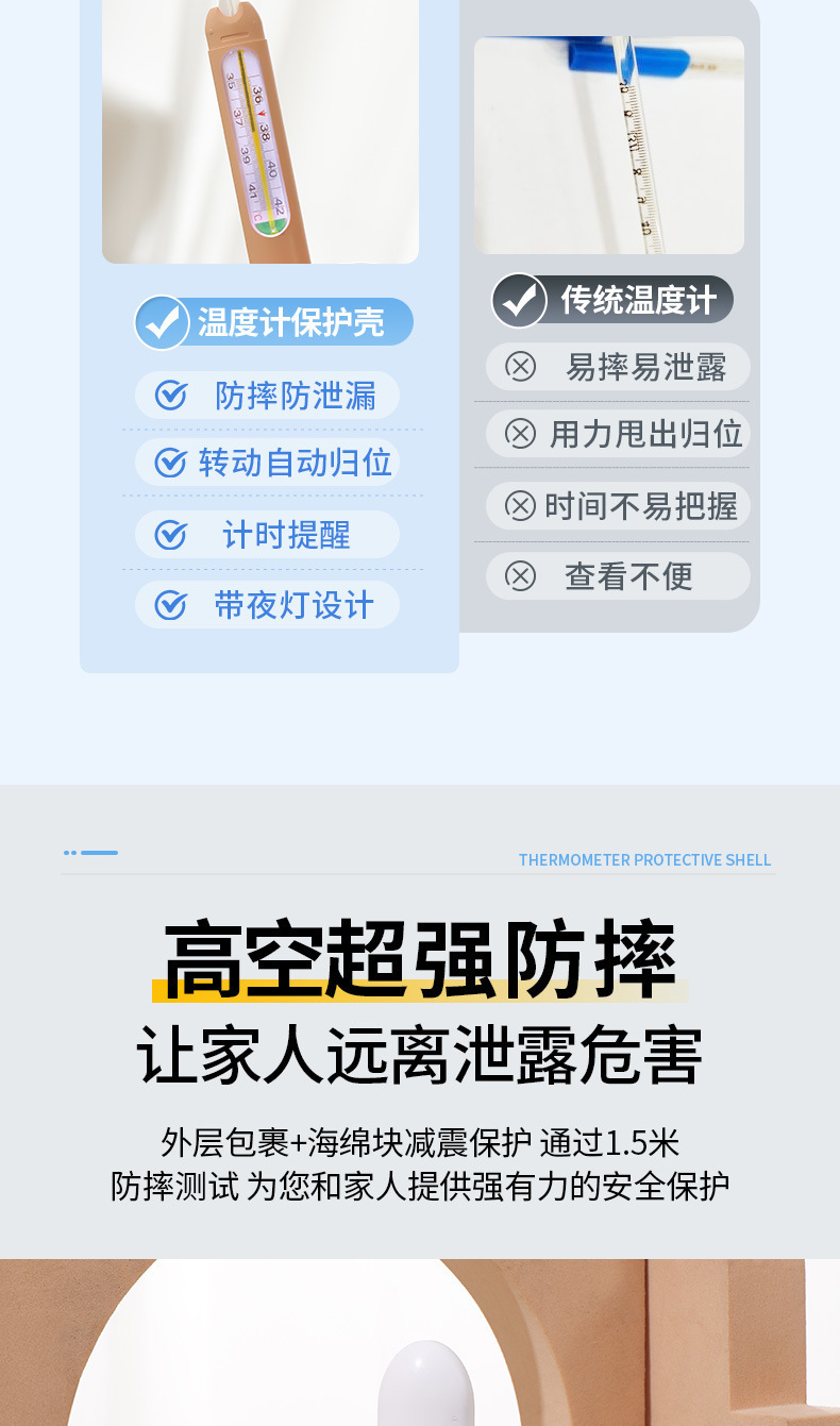 온도계 지능형 낙하 방지 커버 유리 온도계 보호 커버 온도계 점등이있는 낙하 방지 커버스토어 가기