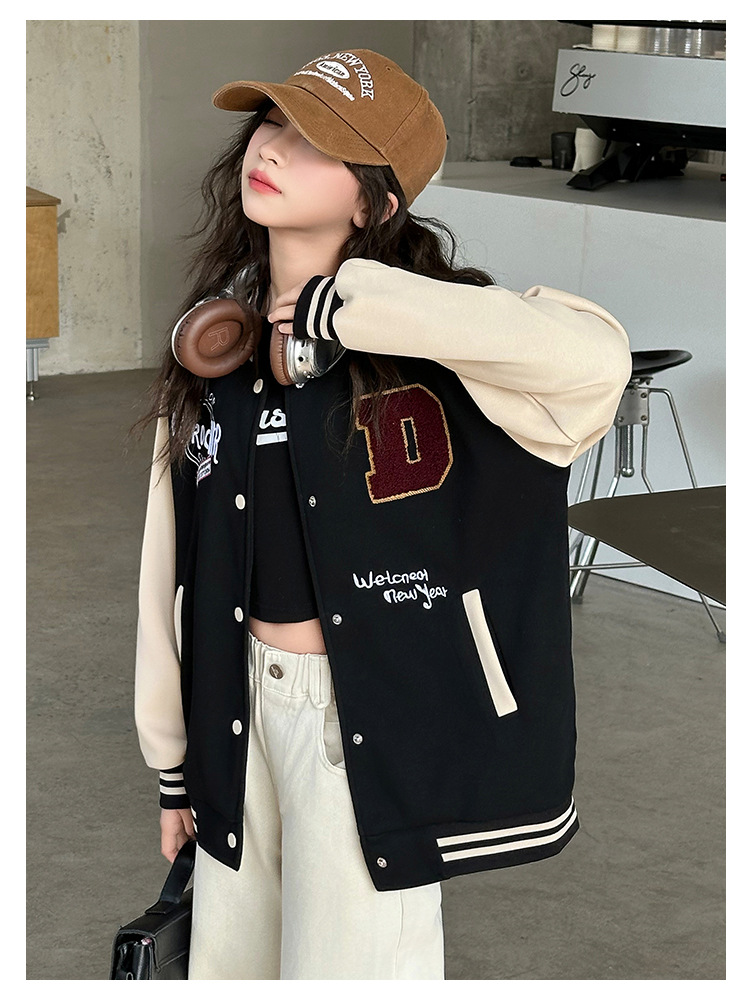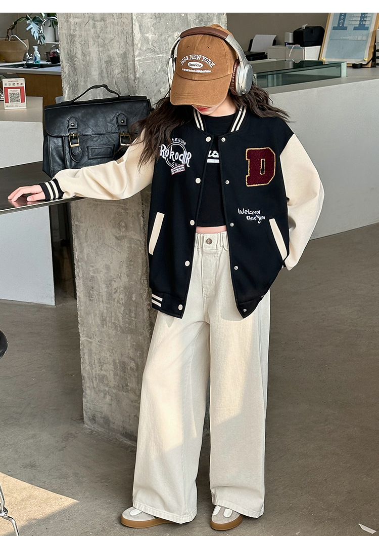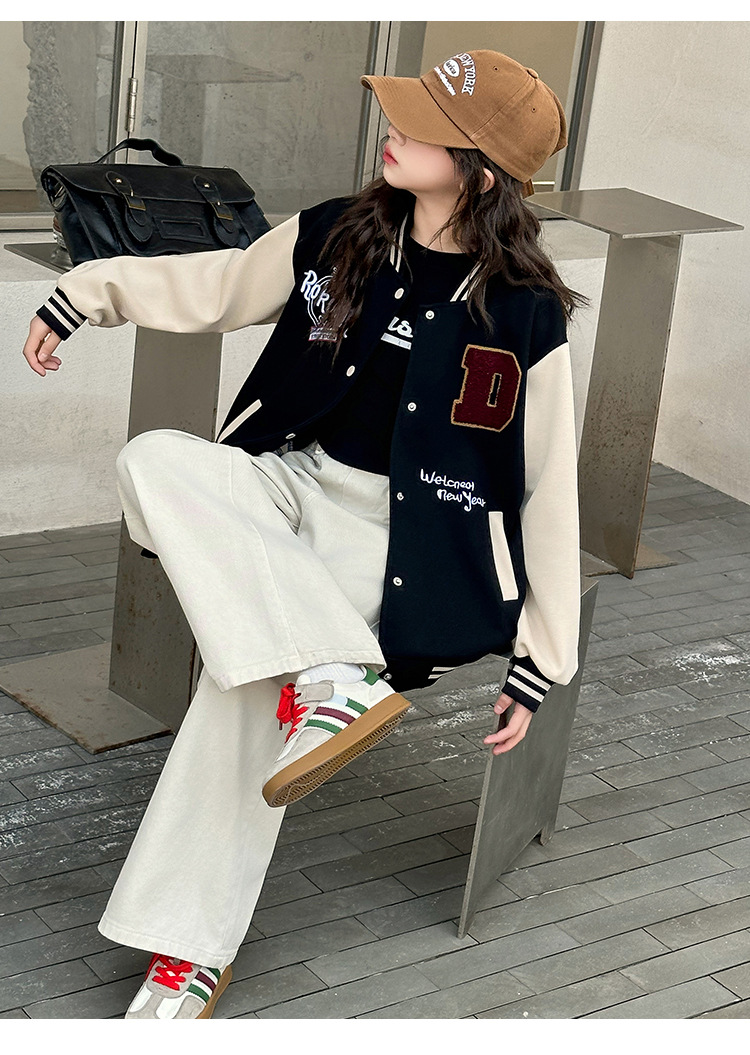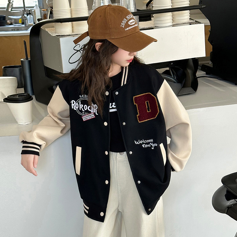 소녀의 봄 자수 편지 야구 세트 코트 2025 새로운 어린이 서양식 캐주얼 재킷 윈드브레이커 봄과 가을 옷스토어 가기