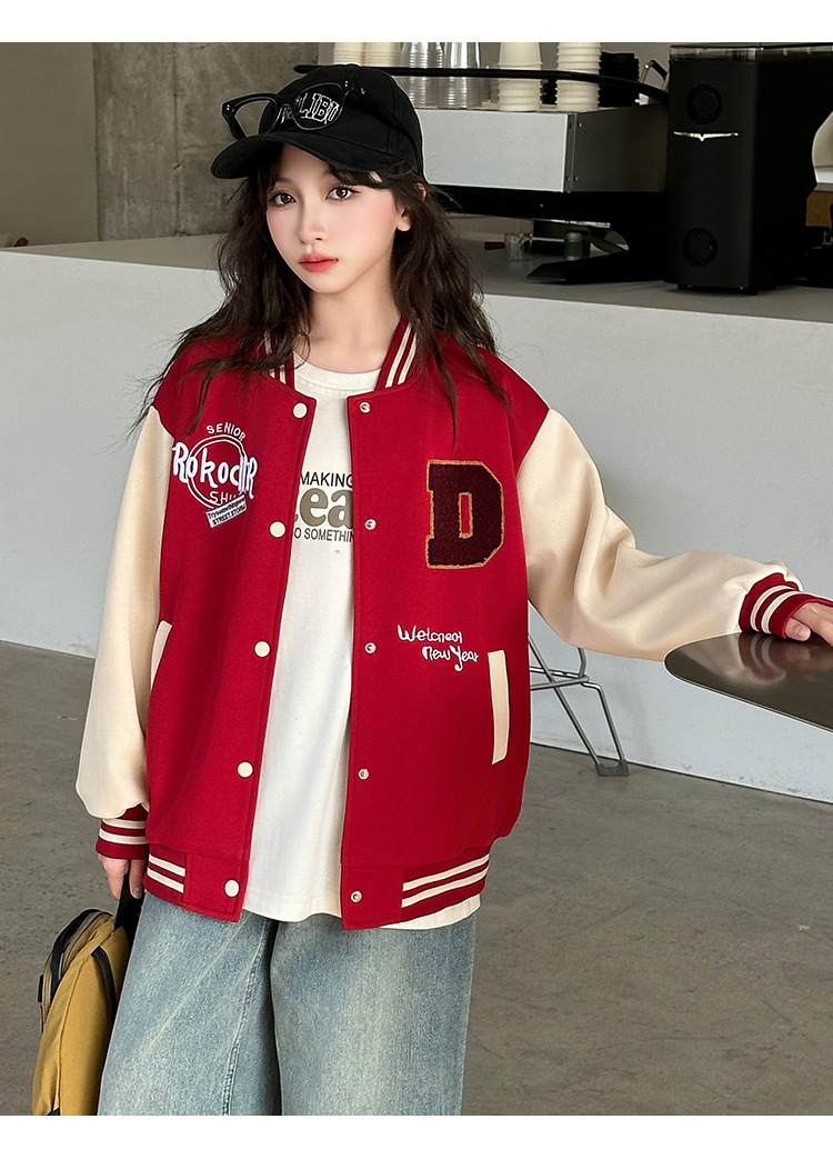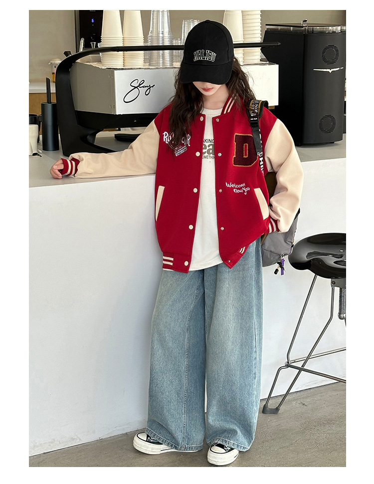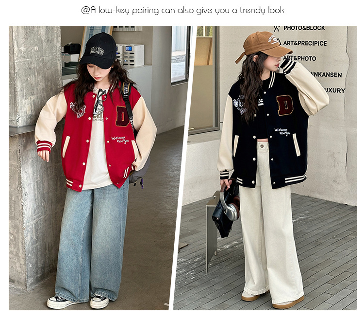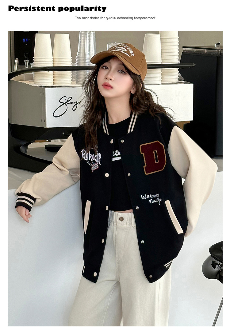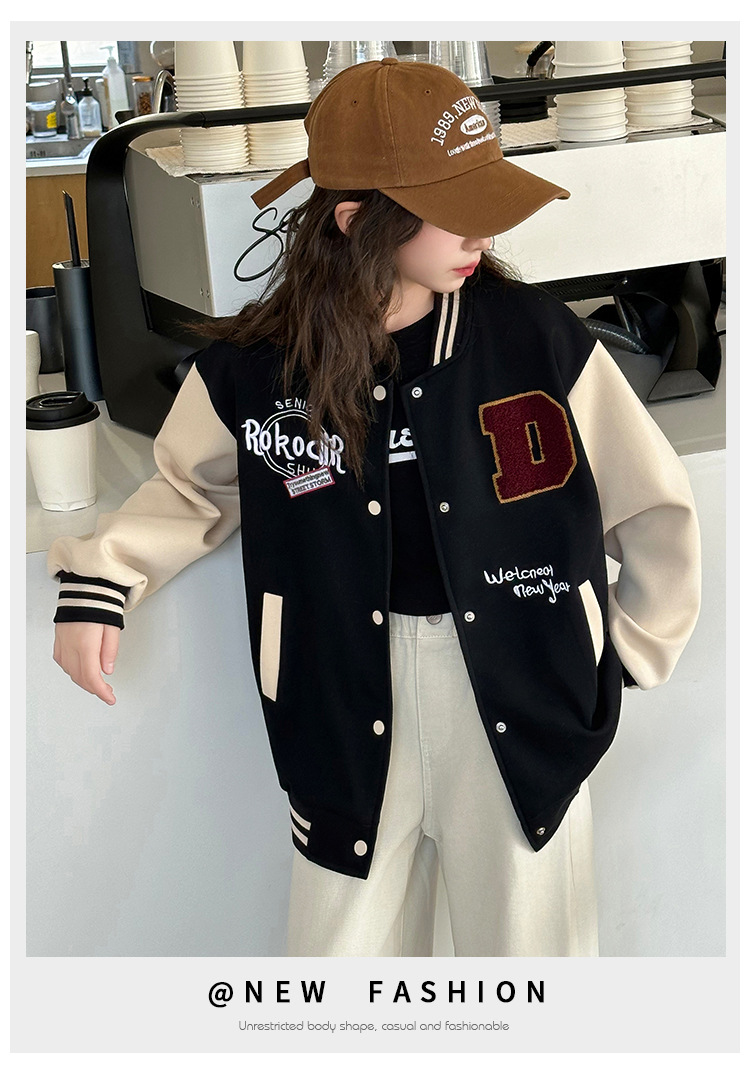 소녀의 봄 자수 편지 야구 세트 코트 2025 새로운 어린이 서양식 캐주얼 재킷 윈드브레이커 봄과 가을 옷스토어 가기
