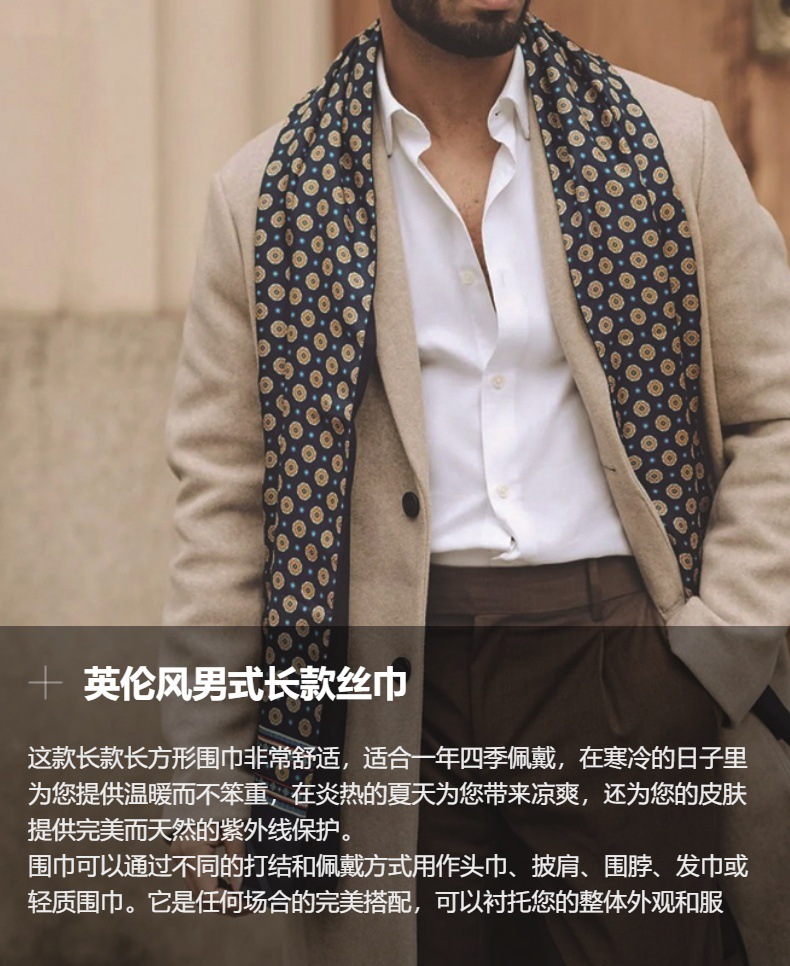 레트로 실크 스카프 긴 스카프 영국 스타일 100% 뽕나무 실크 남자 스카프 더블 레이어 실크 스카프 신사 선물 질감스토어 가기