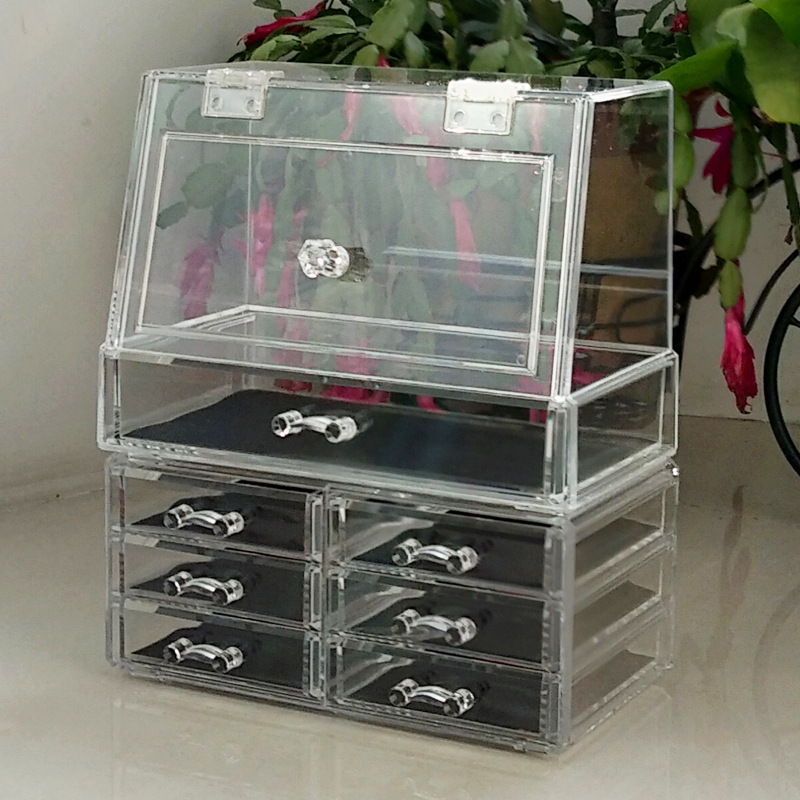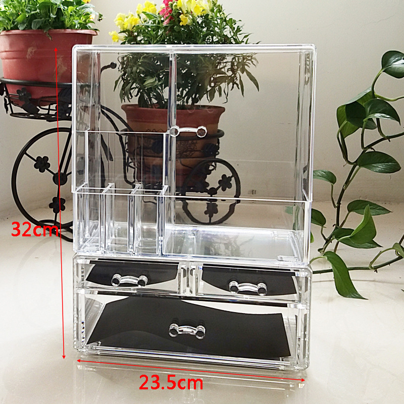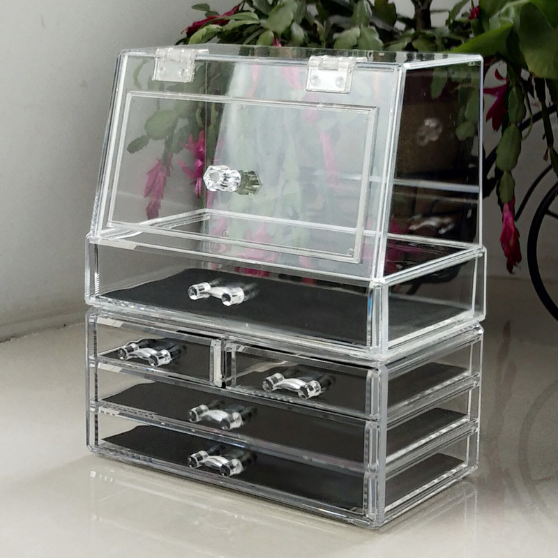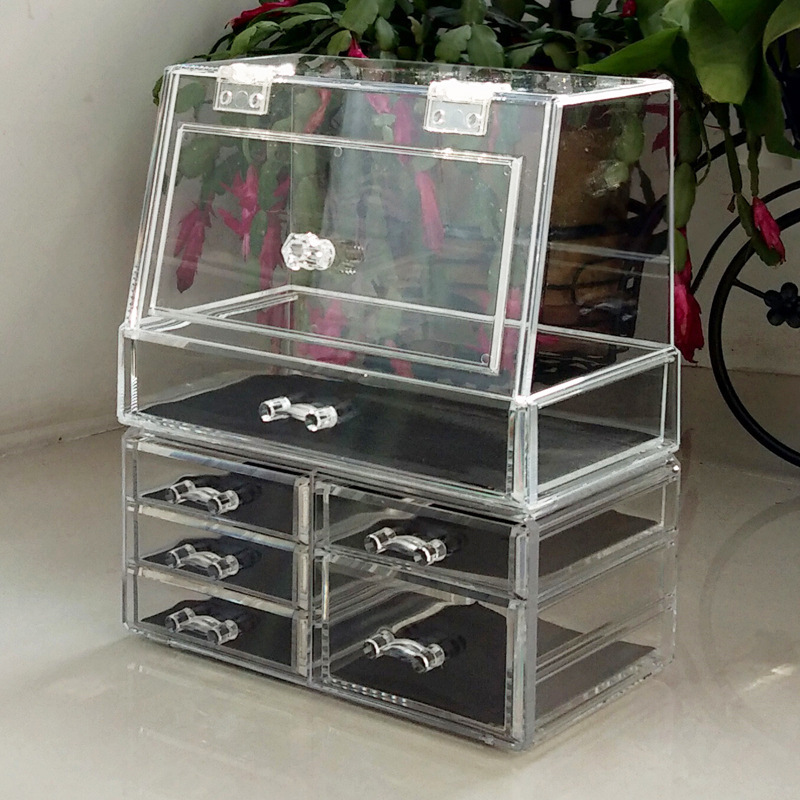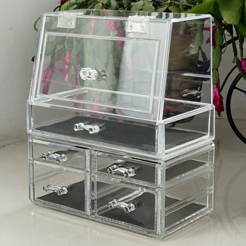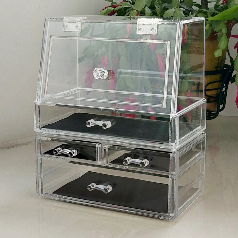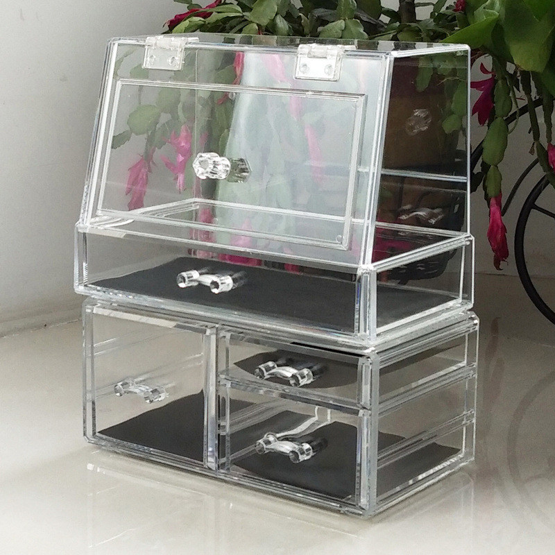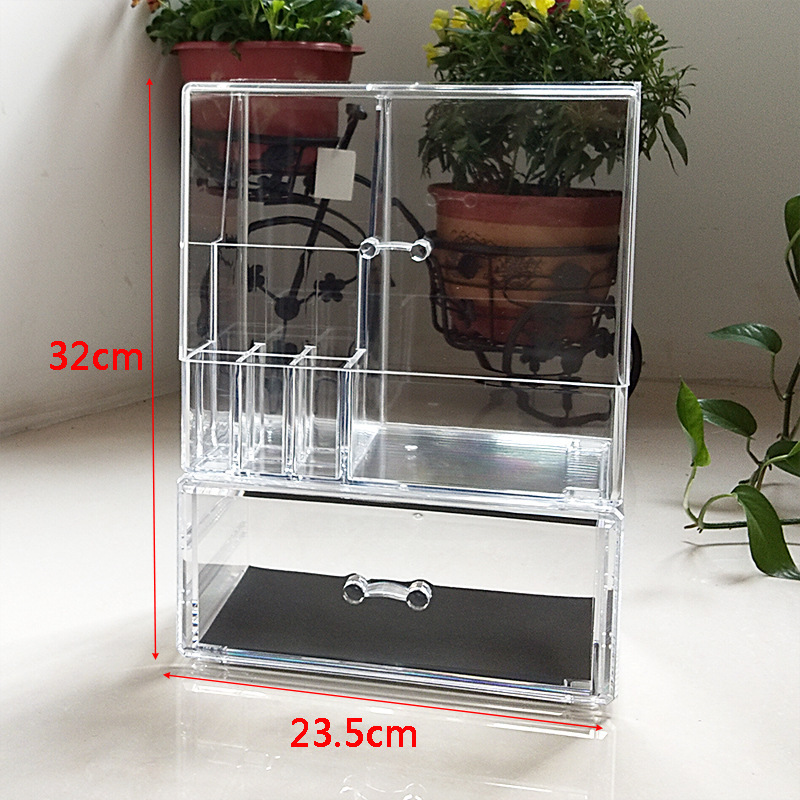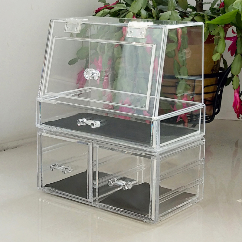 침실 화장품 저장 방진 투명 아크릴 스킨 케어 플립 커버 박스 데스크탑 스토리지 랙 기숙사 보관 랙