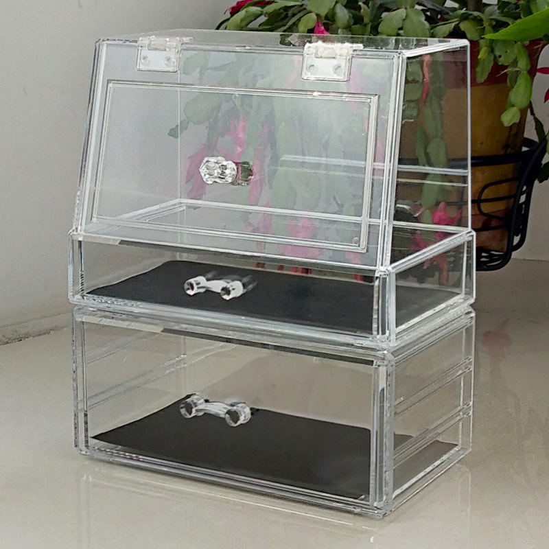 침실 화장품 저장 방진 투명 아크릴 스킨 케어 플립 커버 박스 데스크탑 스토리지 랙 기숙사 보관 랙스토어 가기