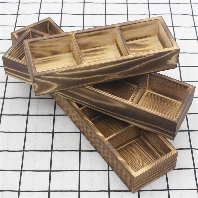 나무 단단한 나무 데스크탑 레트로 창조적 인 멀티 그리드 저장 상자 직사각형 잡화 마무리 격자 상자 살포 나무 접시