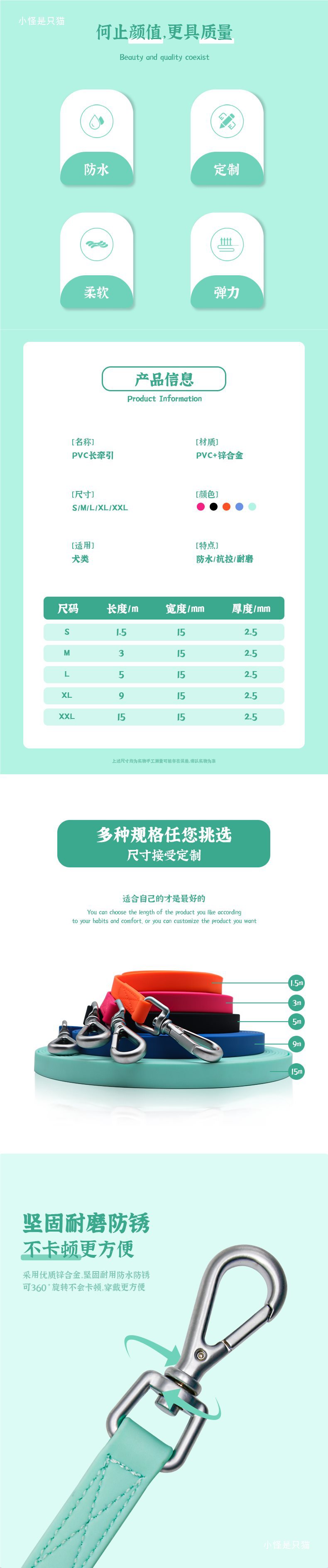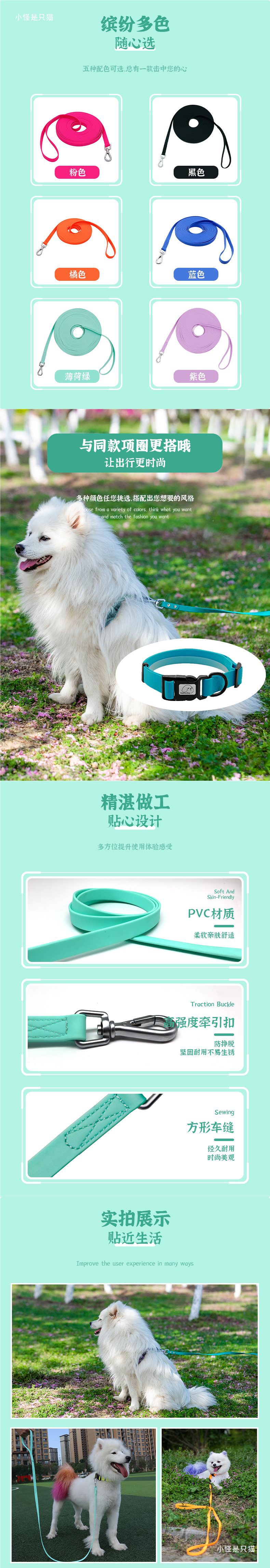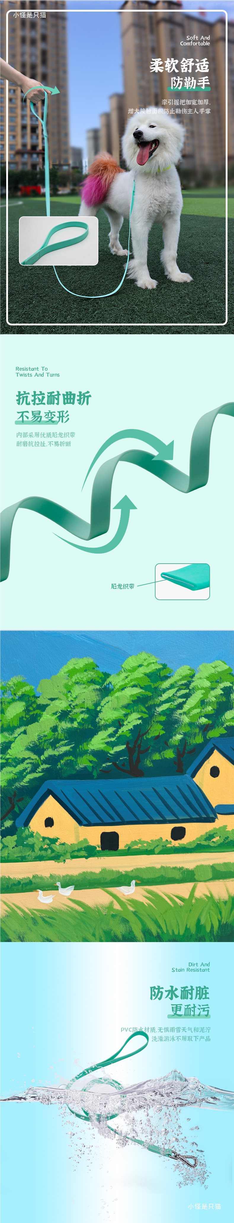 국경 간 애완 동물 공급 PVC 방수 마카롱 색상 부드러운 견인 로프 부드러운 피부 친화적 인 개 걷는 로프 제조 업체