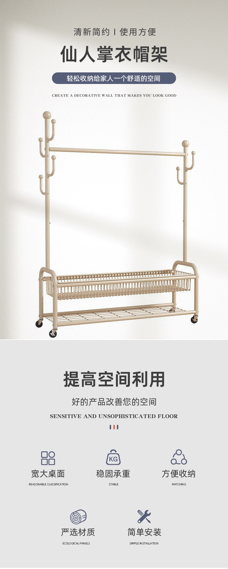간단한 코트 랙 바닥에 서있는 이동식 선인장 가정용 옷 걸이 홈 거실 옷 건조 랙 간단한 코트 랙