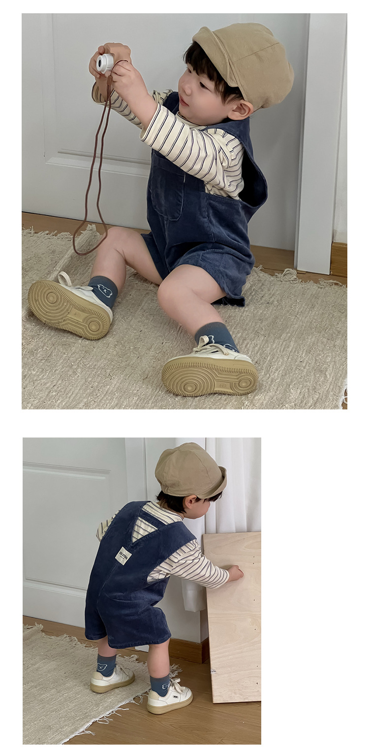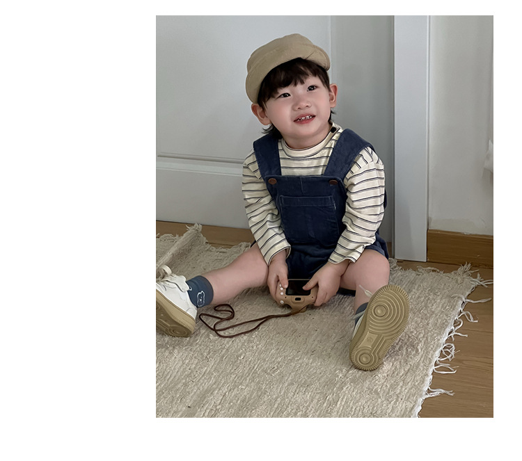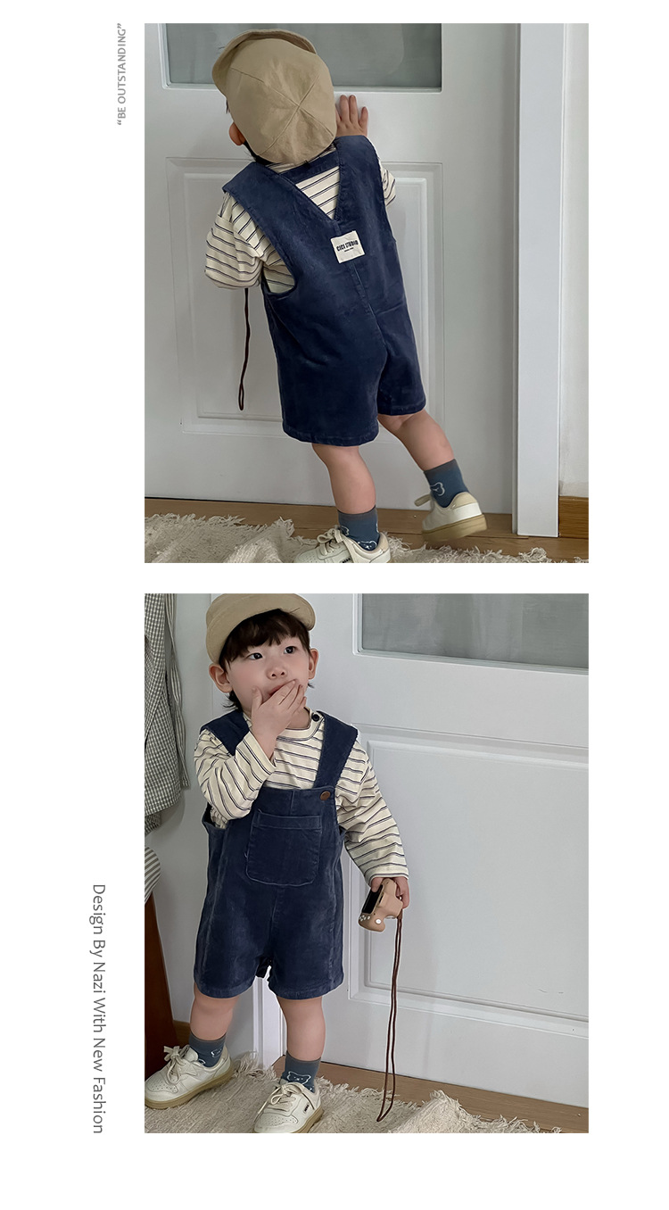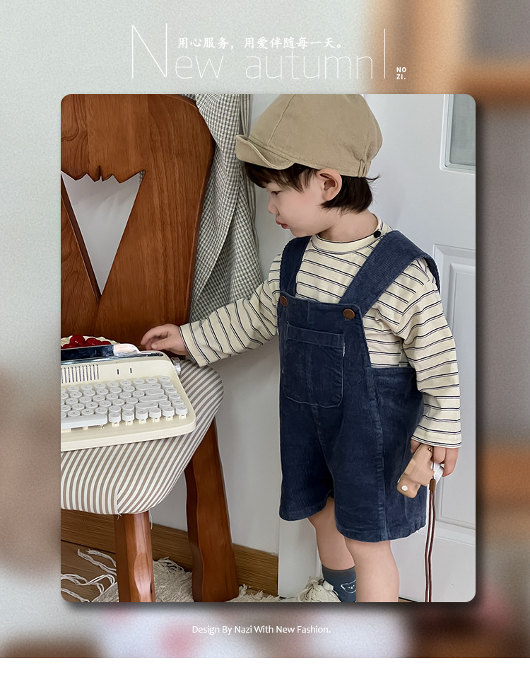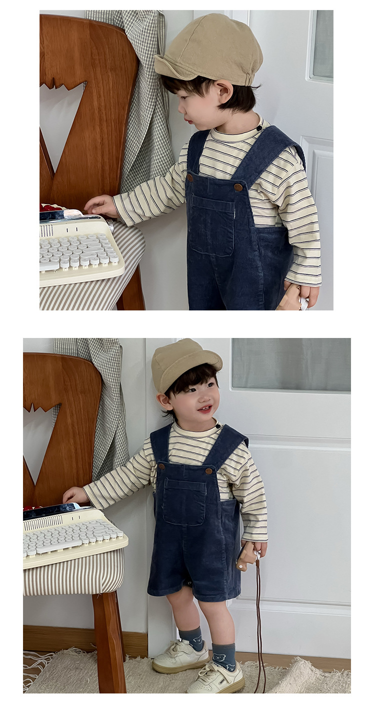 条纹上衣成分:95棉5氨纶 背带裤成分:97棉3氨纶