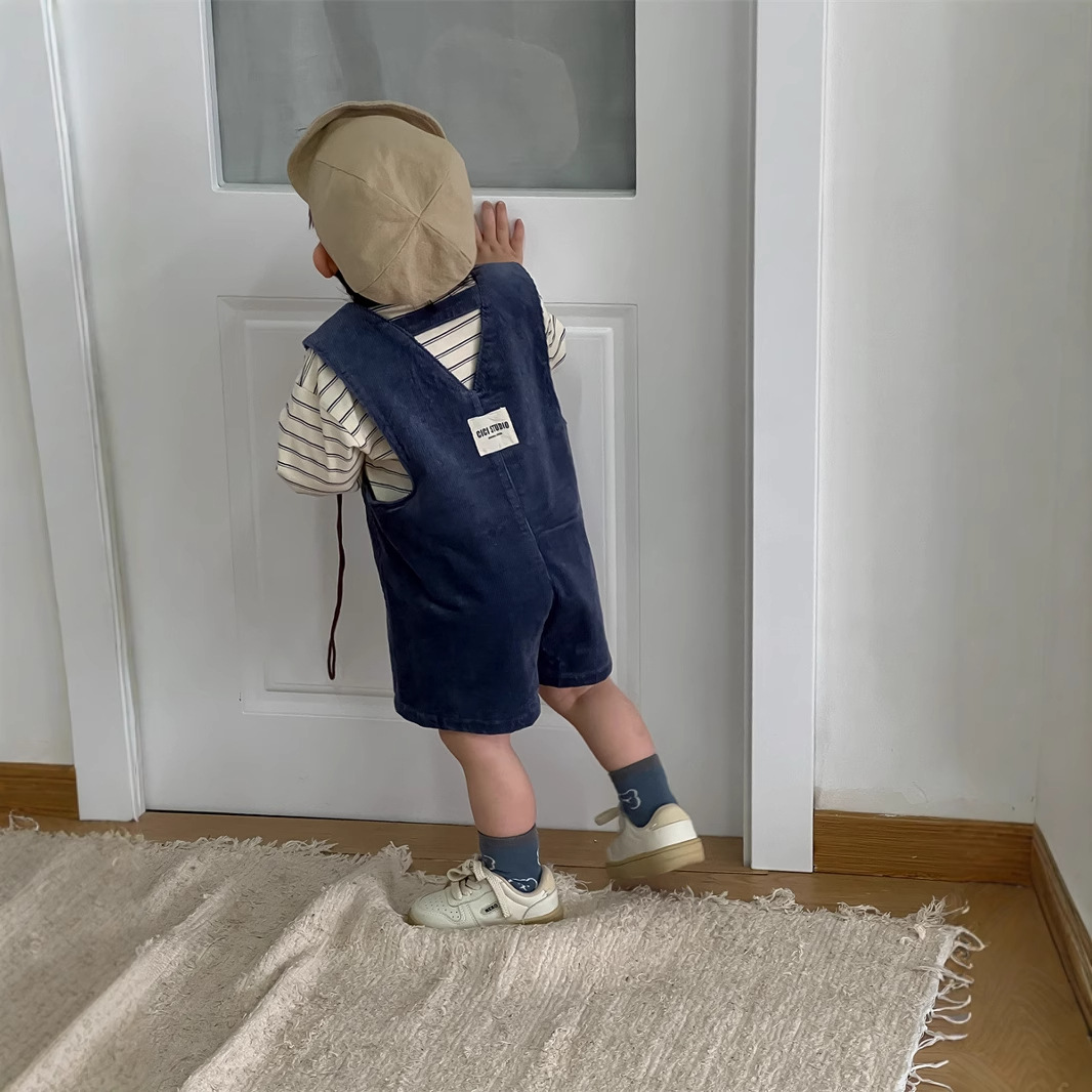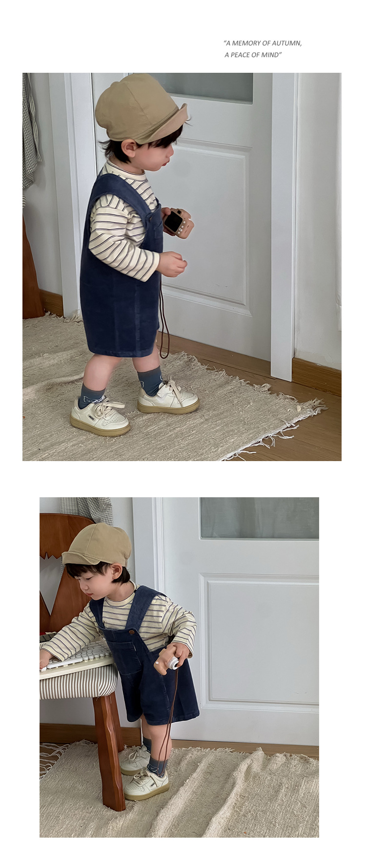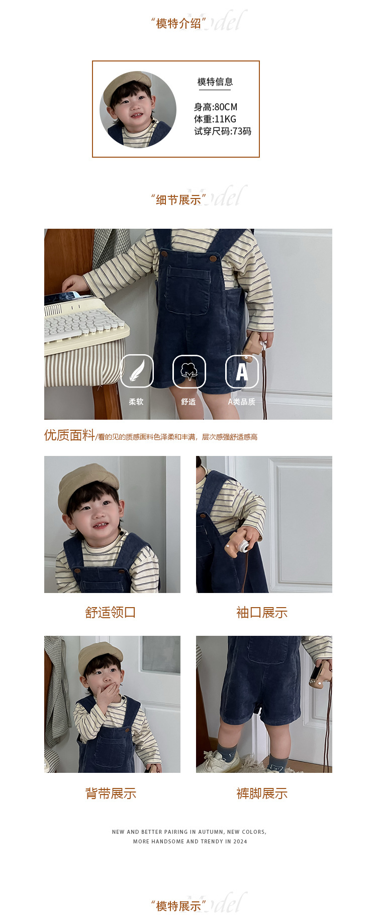 条纹上衣成分:95棉5氨纶 背带裤成分:97棉3氨纶