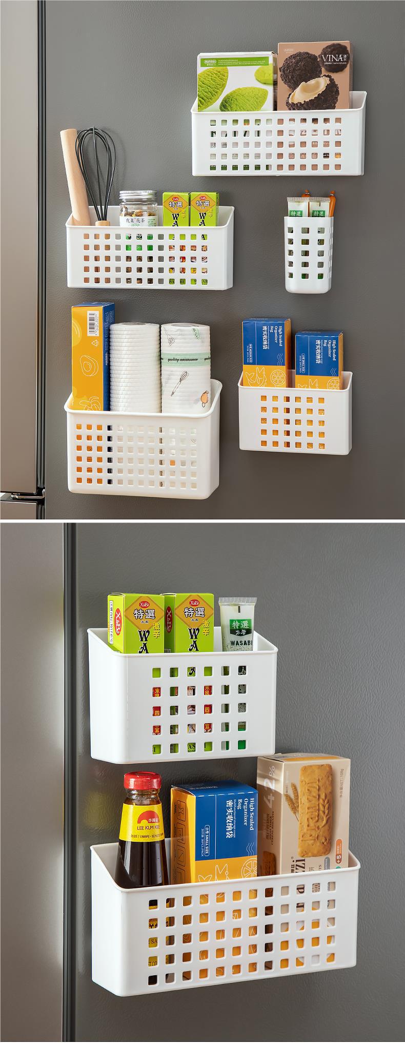 벽걸이 형 자기 흡수 저장 상자 냉장고 사이드 랙 자석 펀치 벽걸이 형 주방 보존 필름 보관 상자스토어 가기
