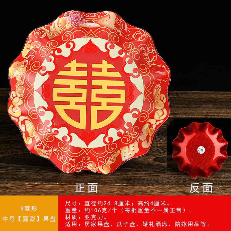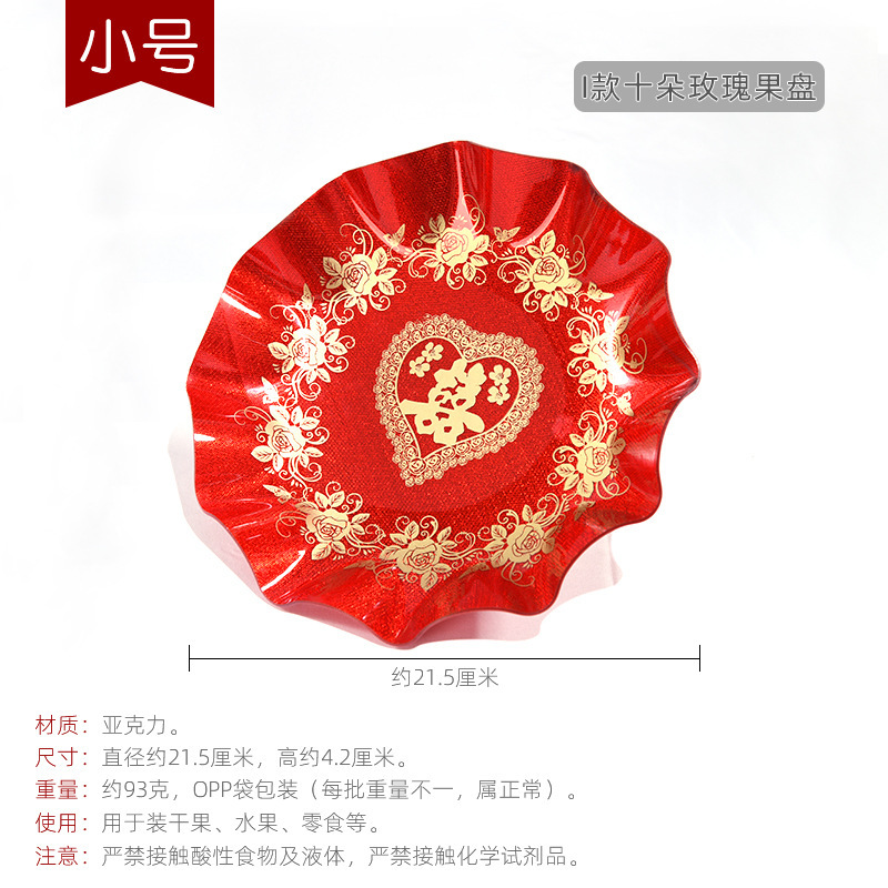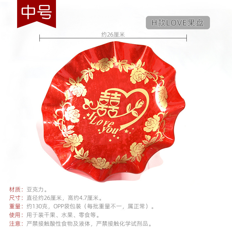 웨딩 플레이트 레드 가정용 축제 용품 캔디 멜론 시지 티 트레이 아크릴 해피 워드 스낵 과일 트레이