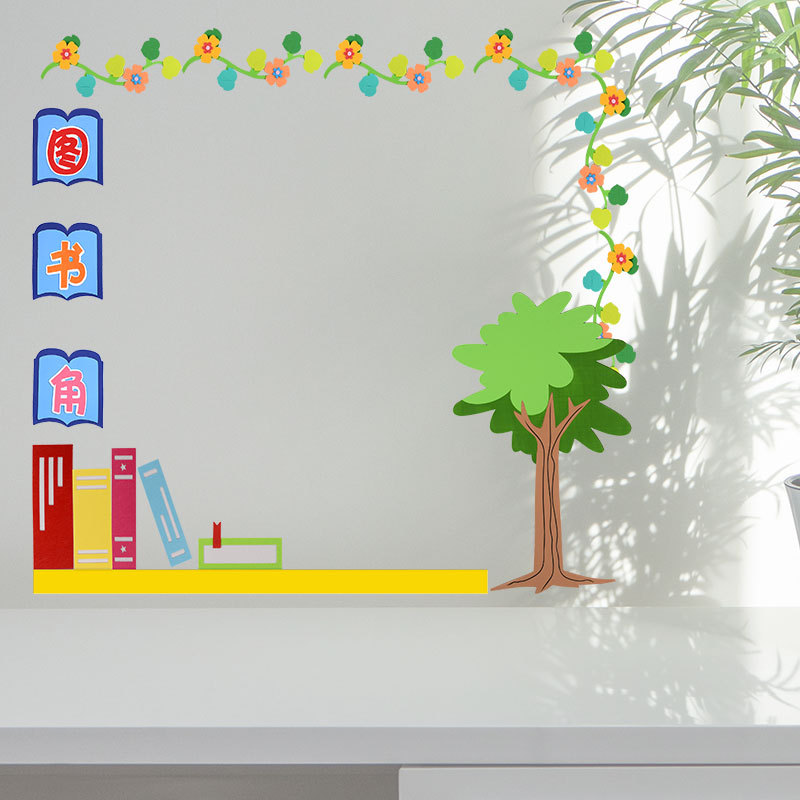 도서 코너 레이아웃 장식 클래스 교실 감정 유치원 건강 코너 문화 벽 스티커 식물 소원 게시판