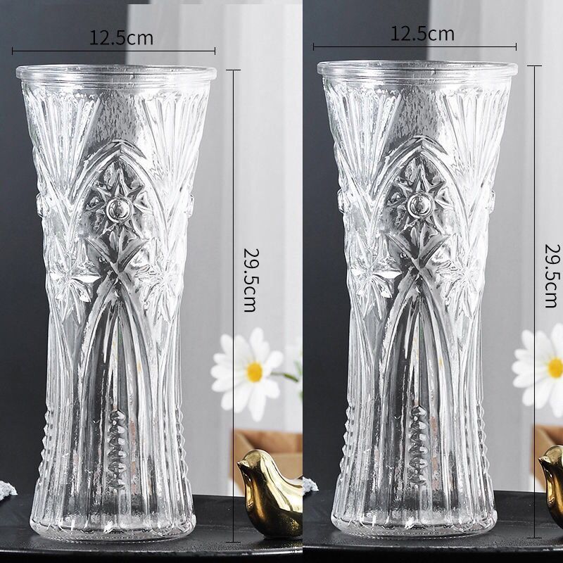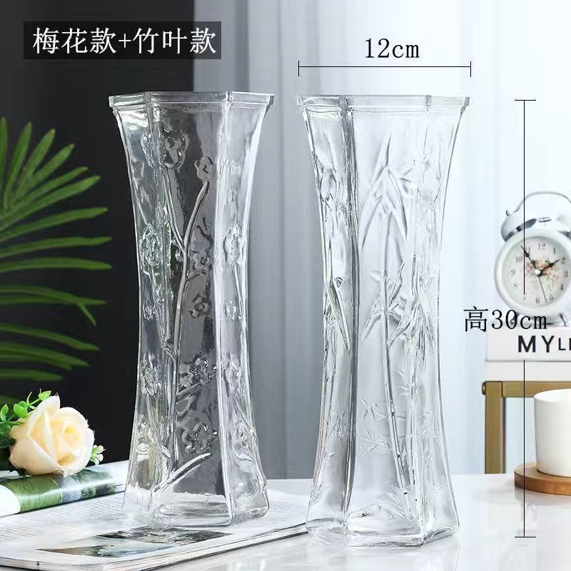 두꺼운 큰 꽃병 유리 투명한 거실 장식 수경 식물 풍부한 대나무 백합 말린 꽃 세라믹 메이플 룬스토어 가기