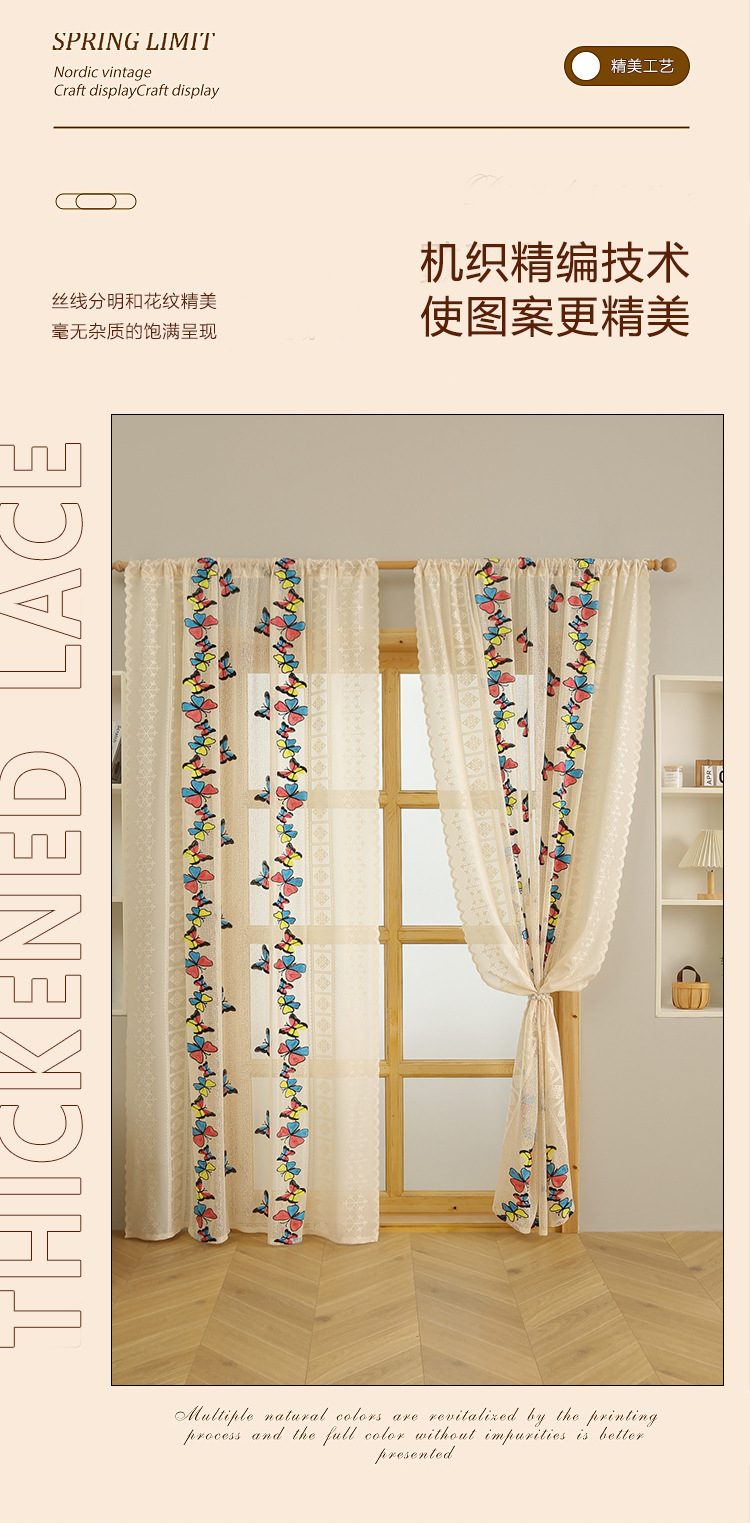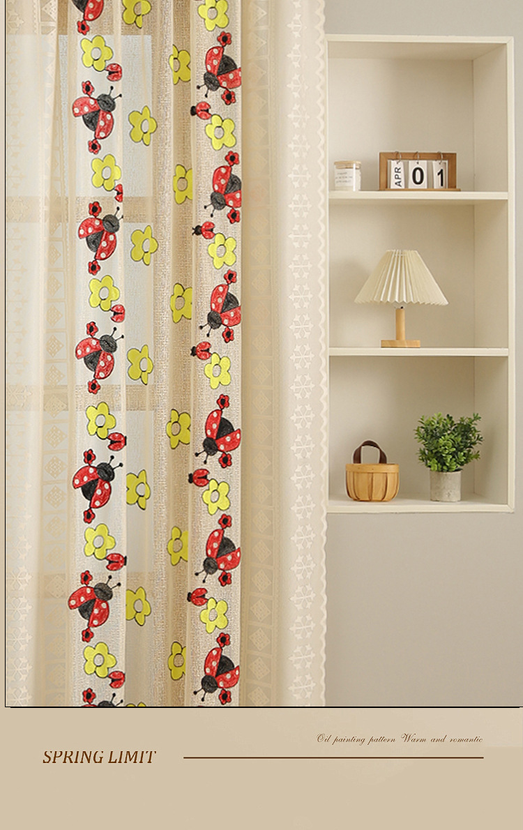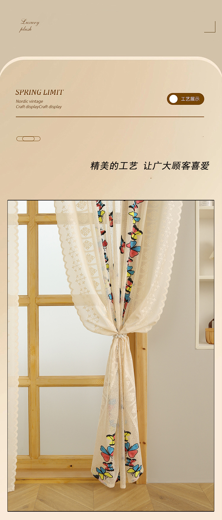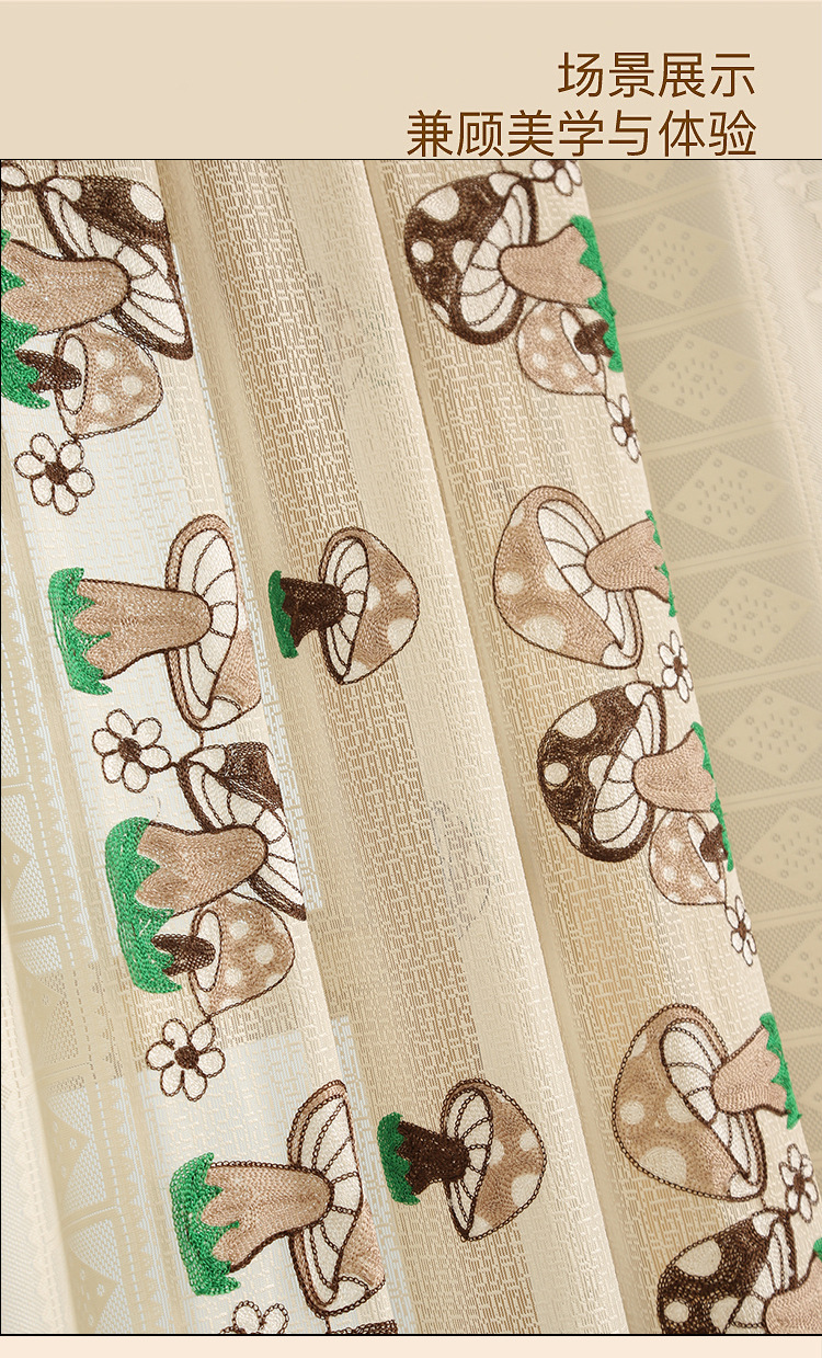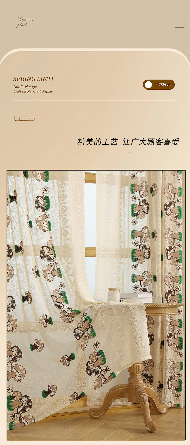 국경 간 직송 라벨 부착 소형 버섯 자수 커튼 침실 프렌치 스타일 크림색 거즈 커튼 거실 침실 발코니 창문 커튼스토어 가기