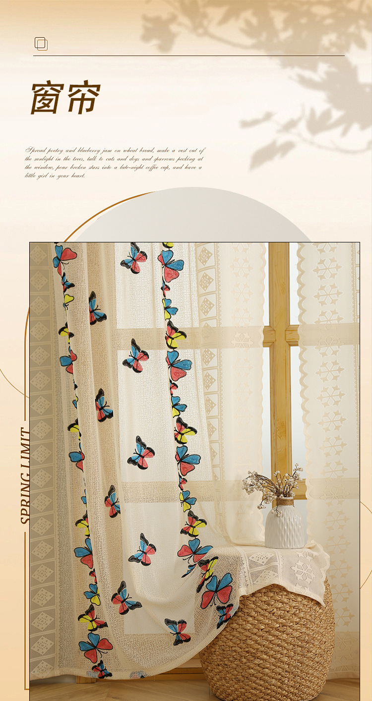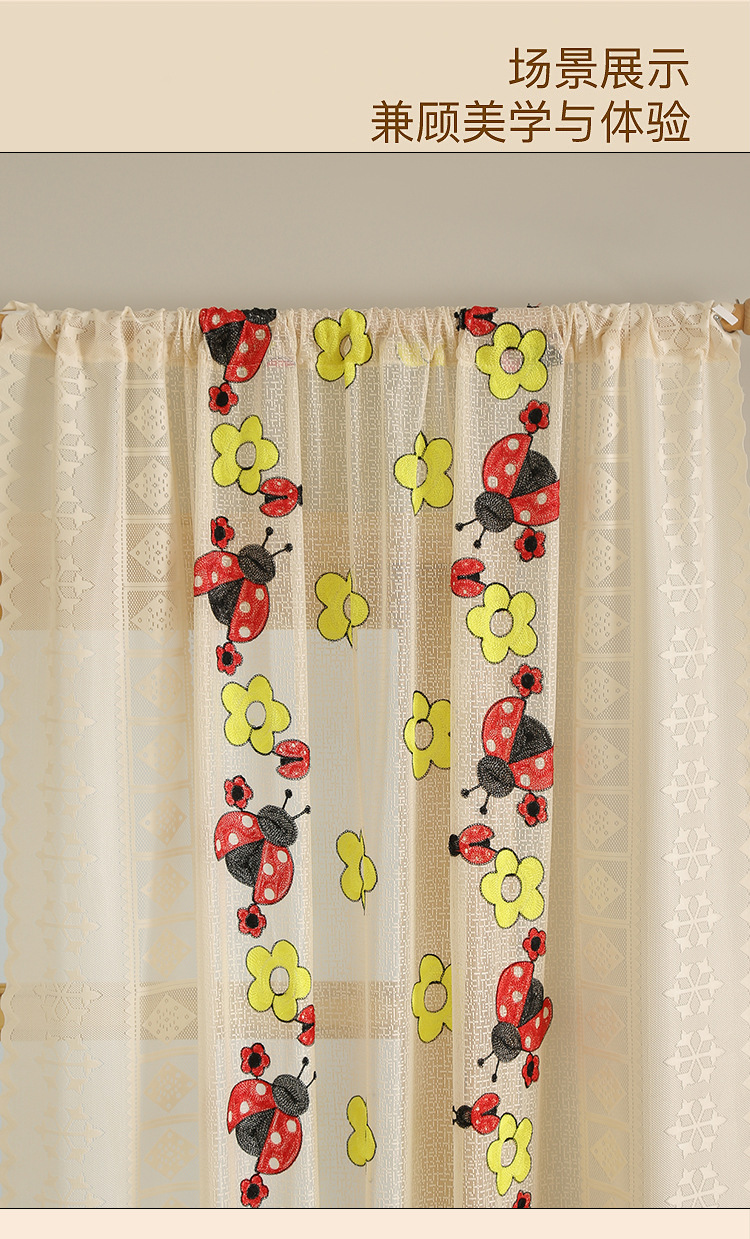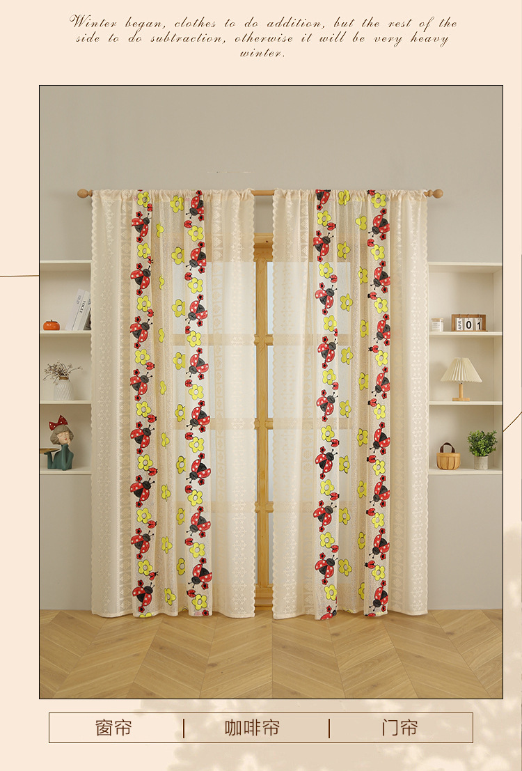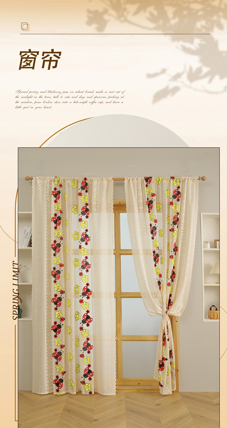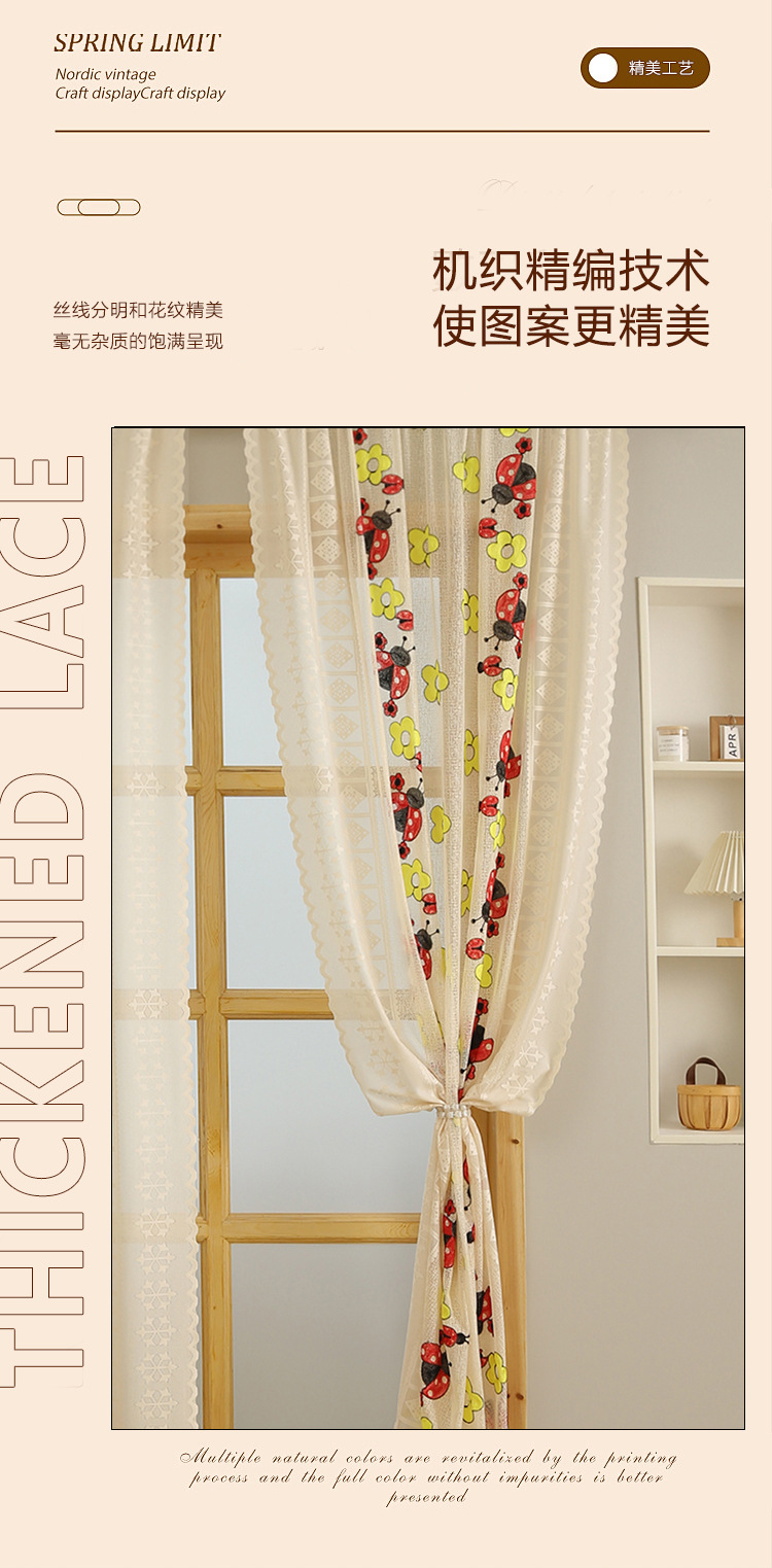 국경 간 직송 라벨 부착 소형 버섯 자수 커튼 침실 프렌치 스타일 크림색 거즈 커튼 거실 침실 발코니 창문 커튼스토어 가기