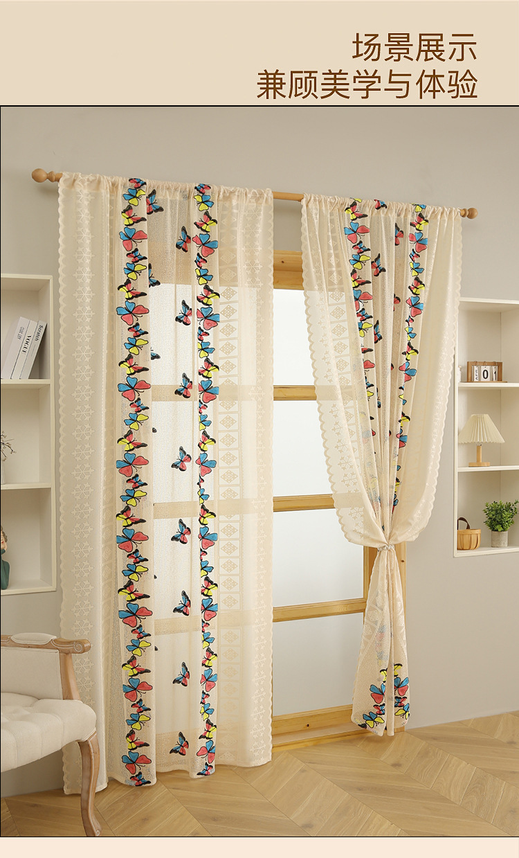 국경 간 직송 라벨 부착 소형 버섯 자수 커튼 침실 프렌치 스타일 크림색 거즈 커튼 거실 침실 발코니 창문 커튼