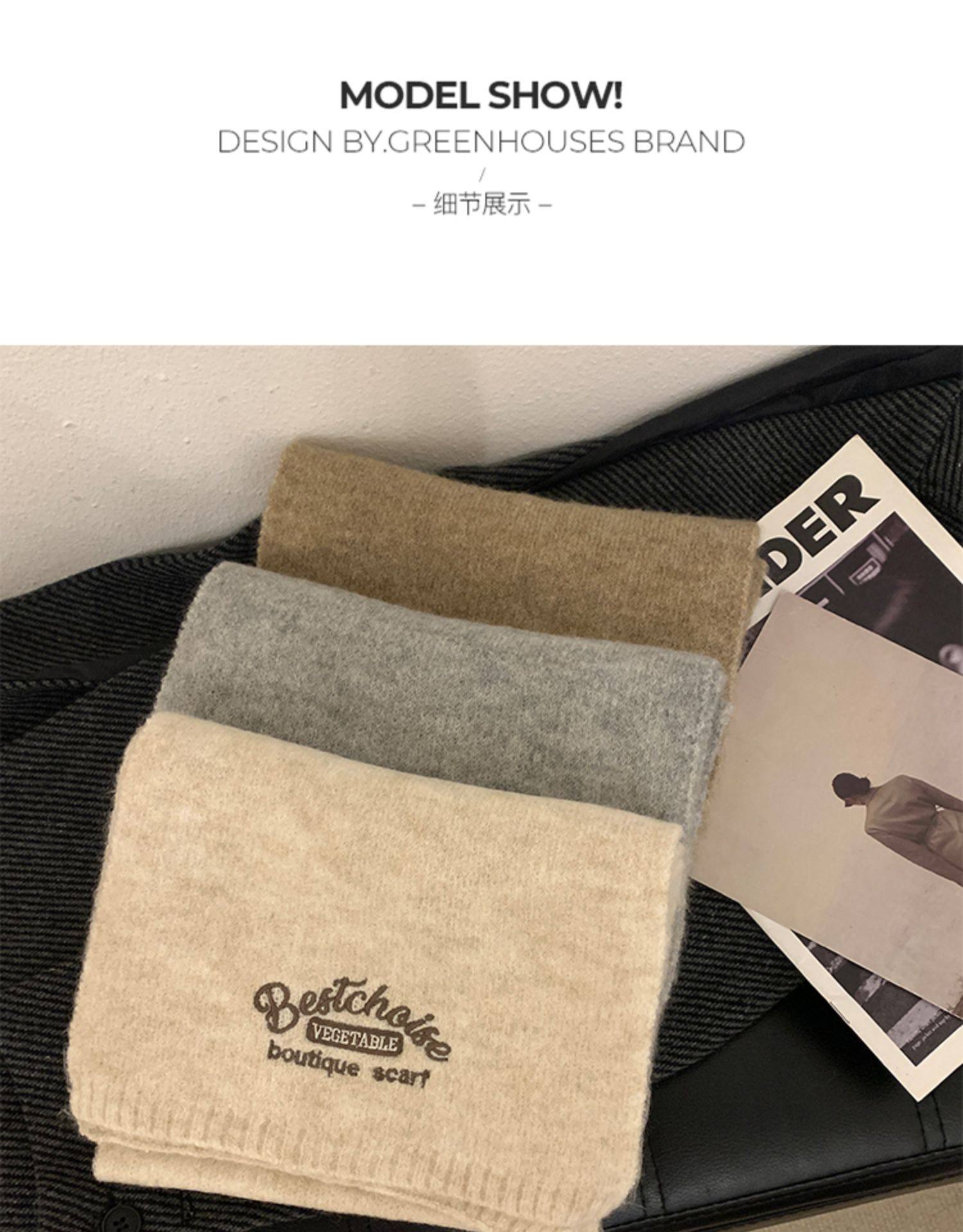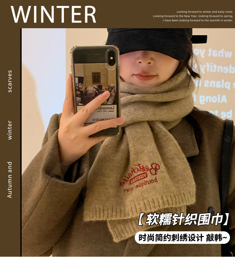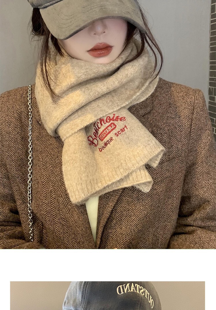겨울 따뜻한 긴 니트 스카프 한국 울 커플 솔리드 컬러 자수 여성을위한 모든 경기 방풍 스카프스토어 가기