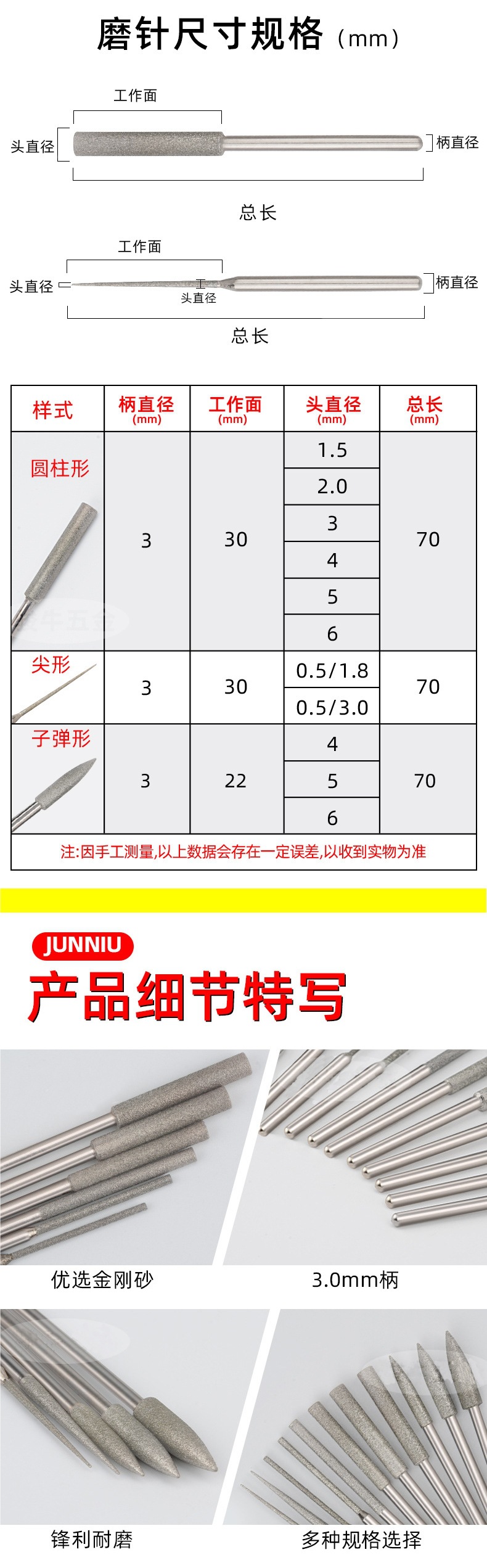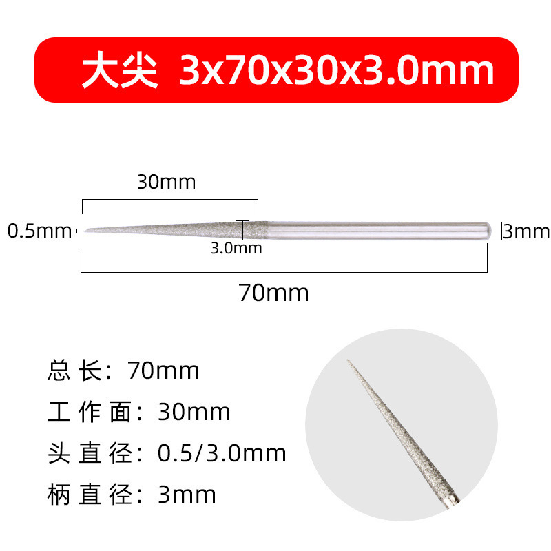 더 긴 에머리 연삭 바늘 3mm 다이아몬드 연삭 헤드 옥 연삭 조각 리밍 체인 공압 연삭 공구스토어 가기
