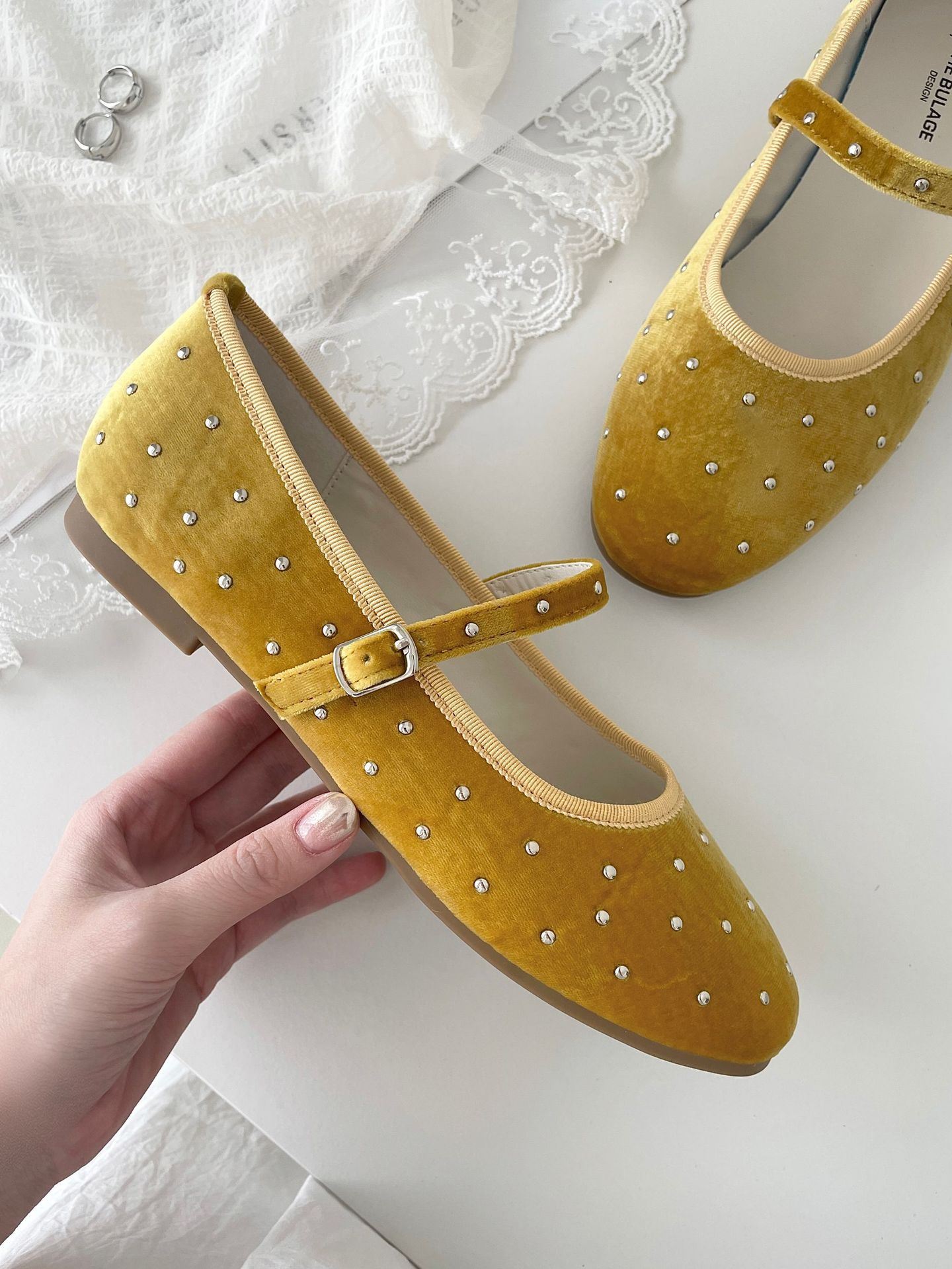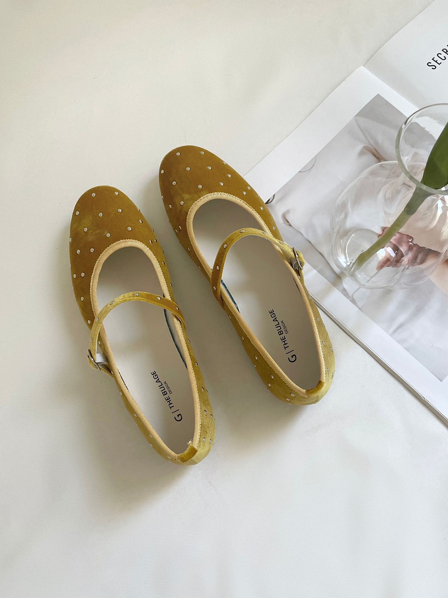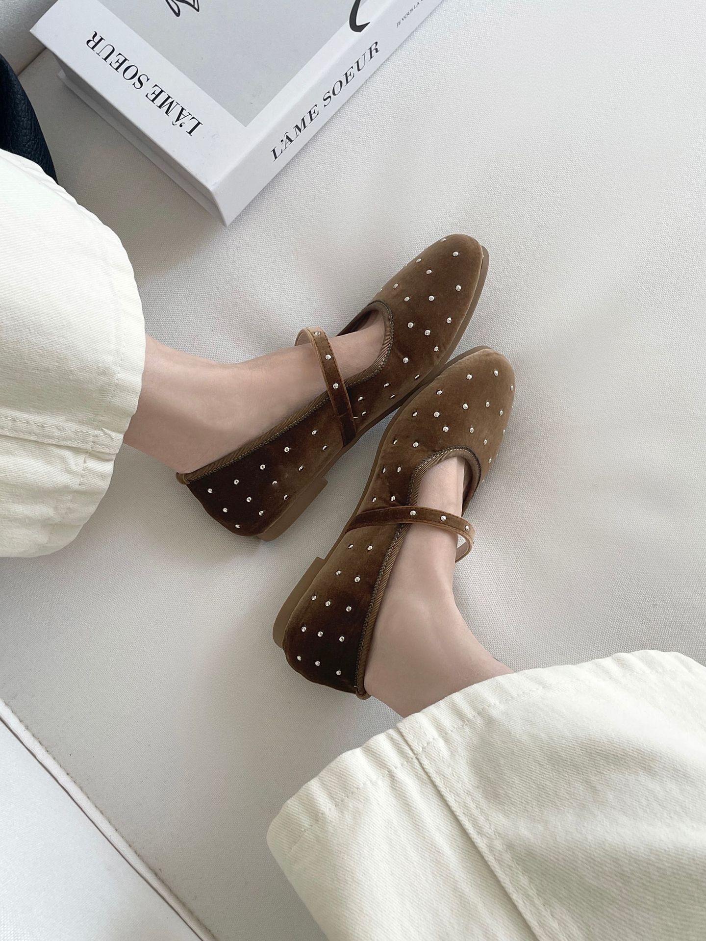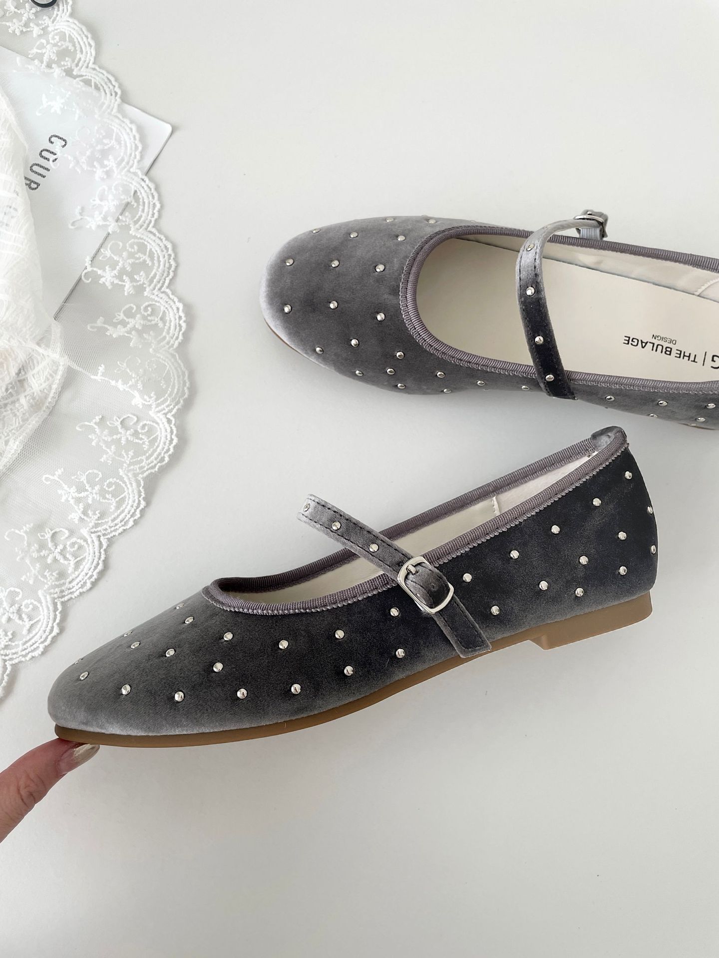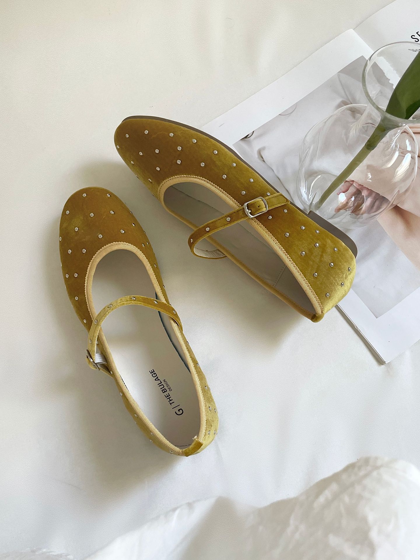 한국식 레트로 니치 벨벳 리벳 스타 메리 제인 여성 신발 이른 봄 새 한 단어 버클 플랫 슈즈스토어 가기
