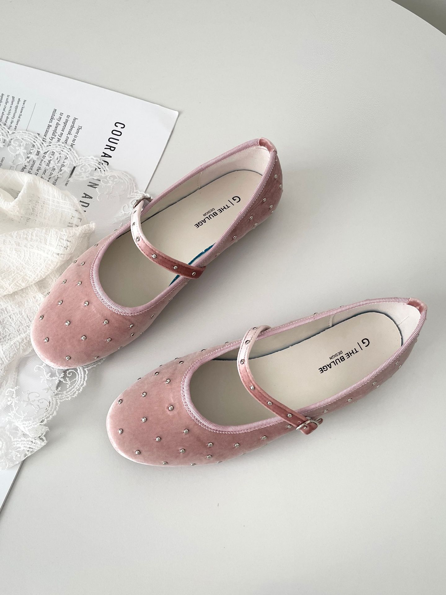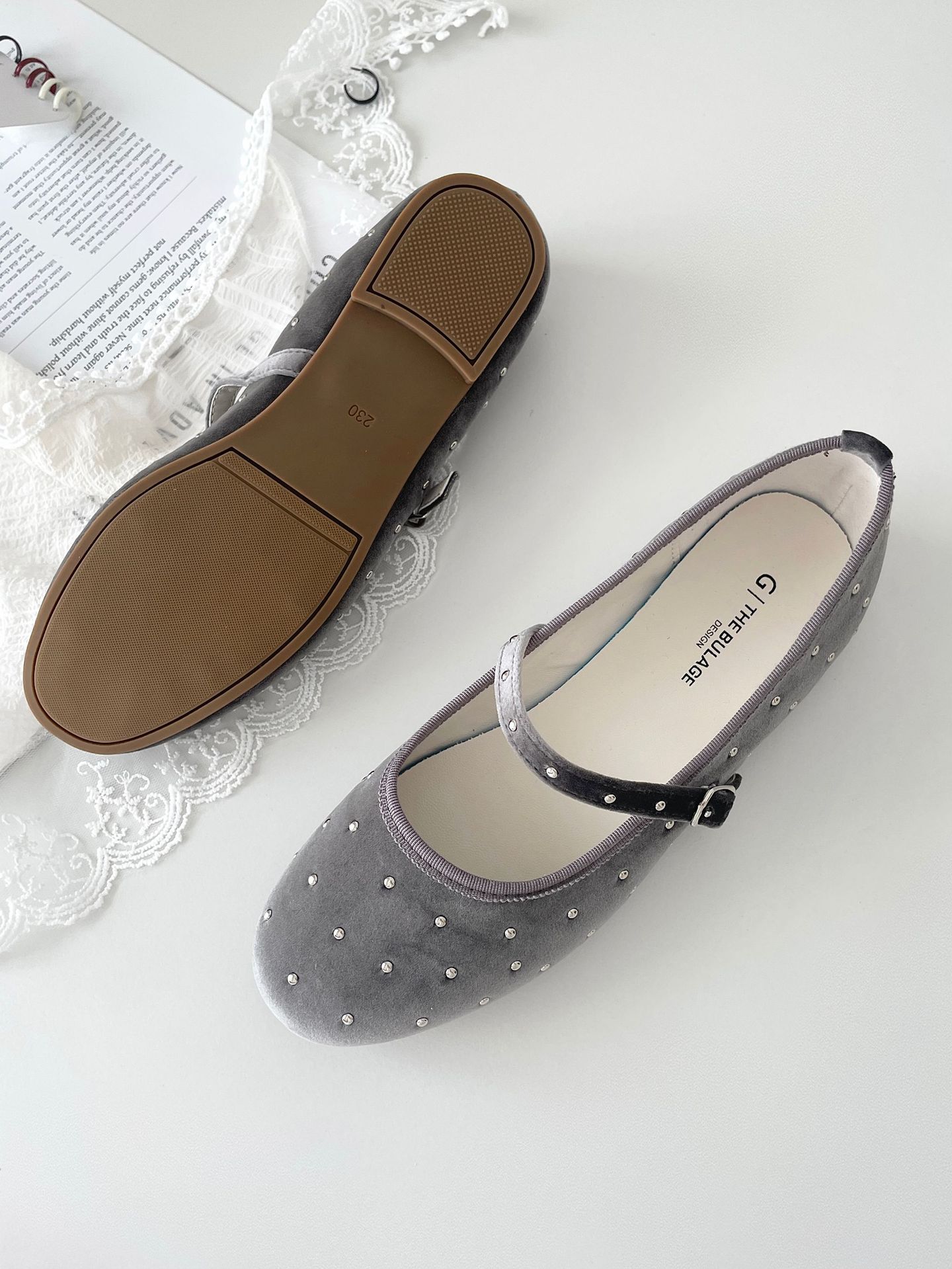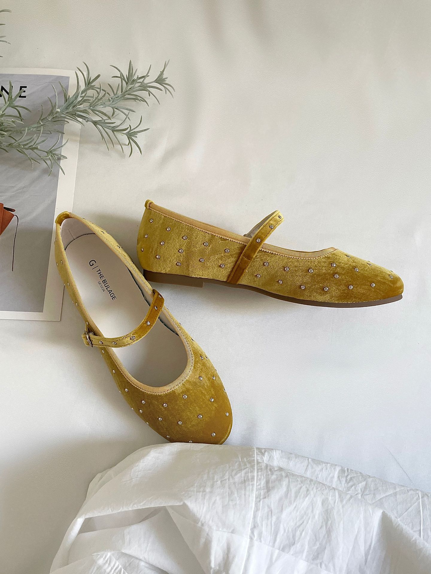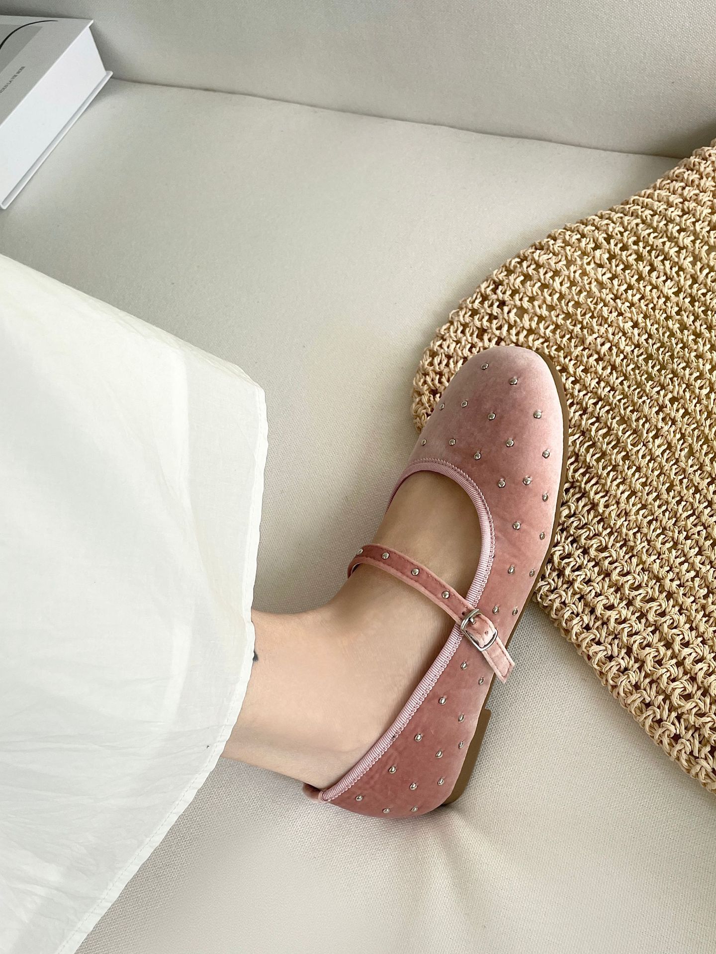 한국식 레트로 니치 벨벳 리벳 스타 메리 제인 여성 신발 이른 봄 새 한 단어 버클 플랫 슈즈스토어 가기