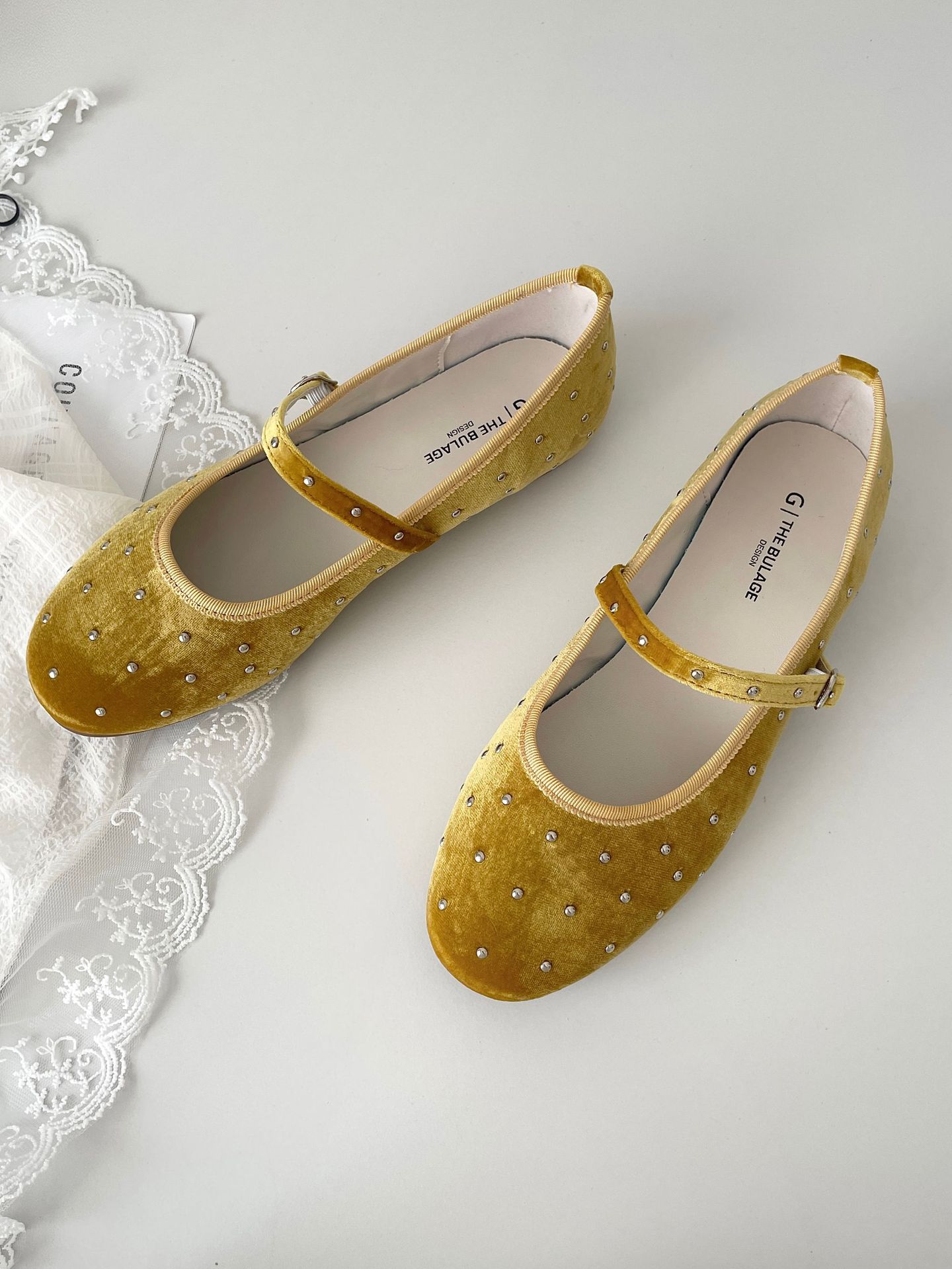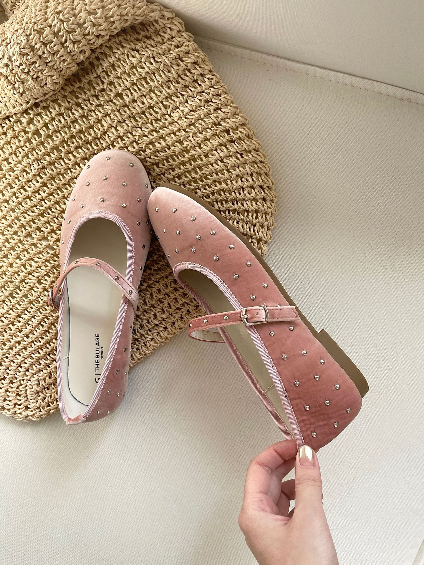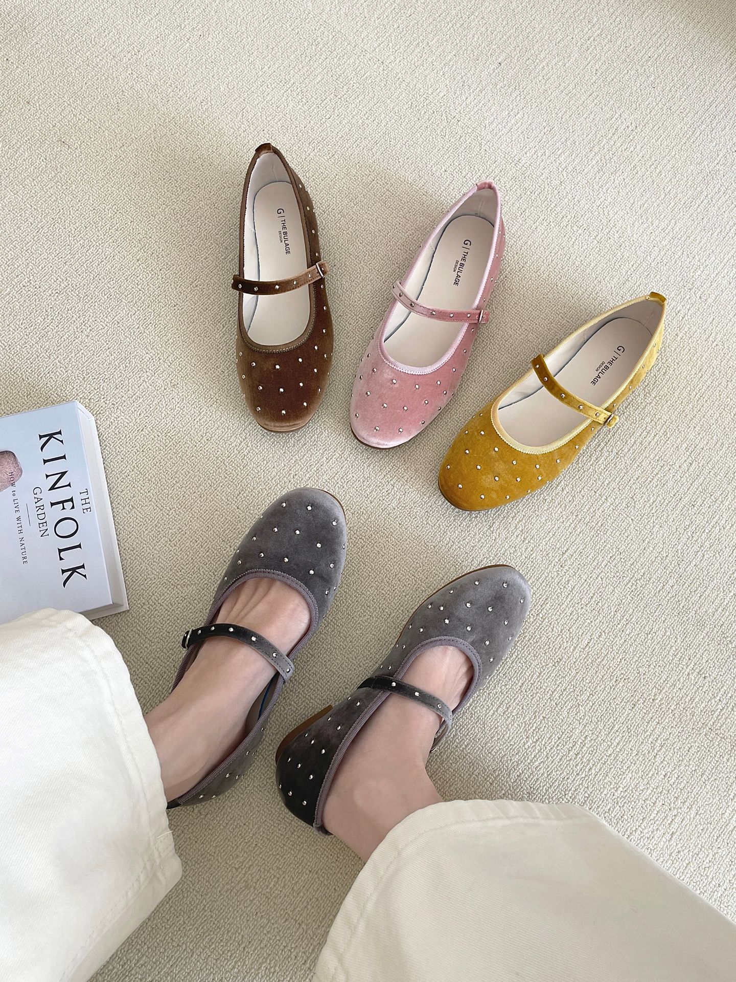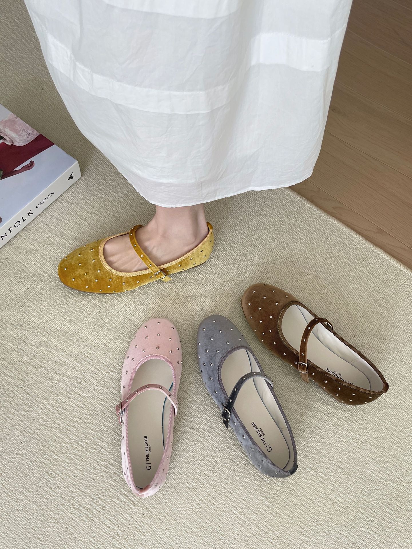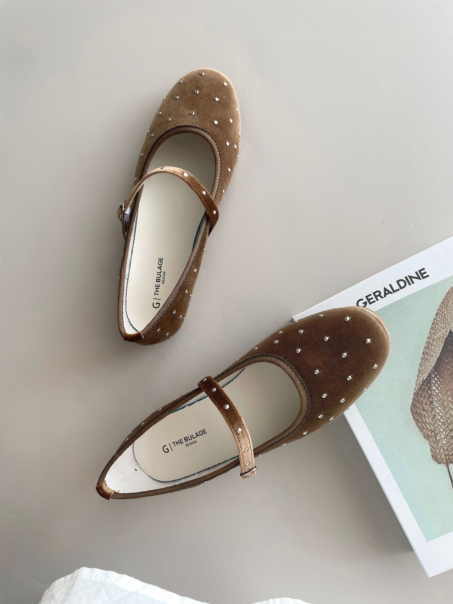 한국식 레트로 니치 벨벳 리벳 스타 메리 제인 여성 신발 이른 봄 새 한 단어 버클 플랫 슈즈스토어 가기
