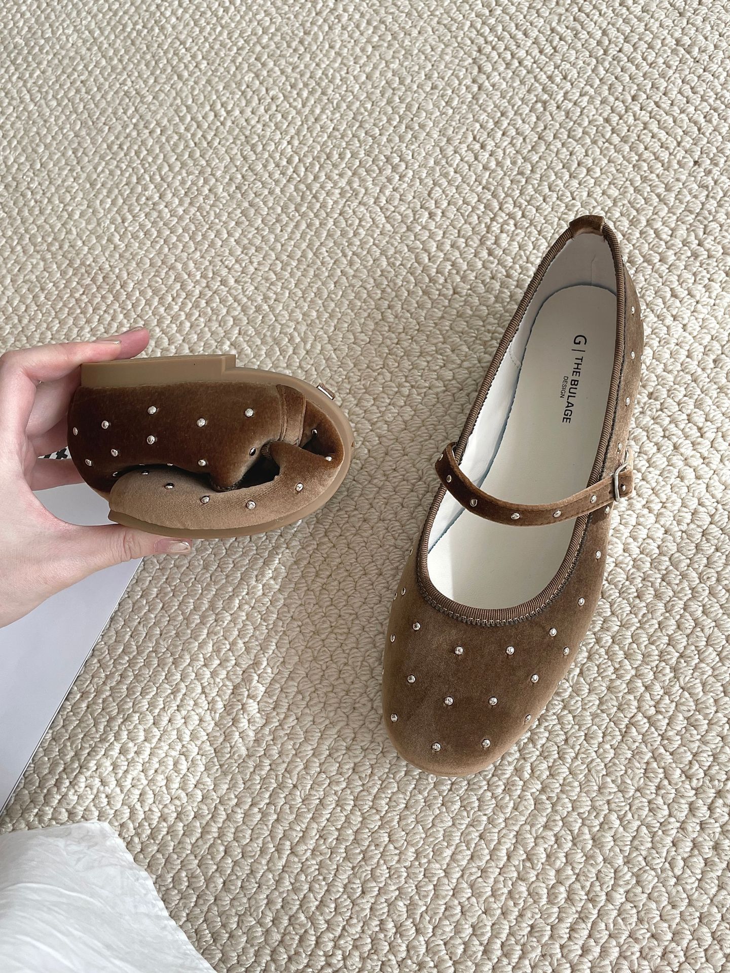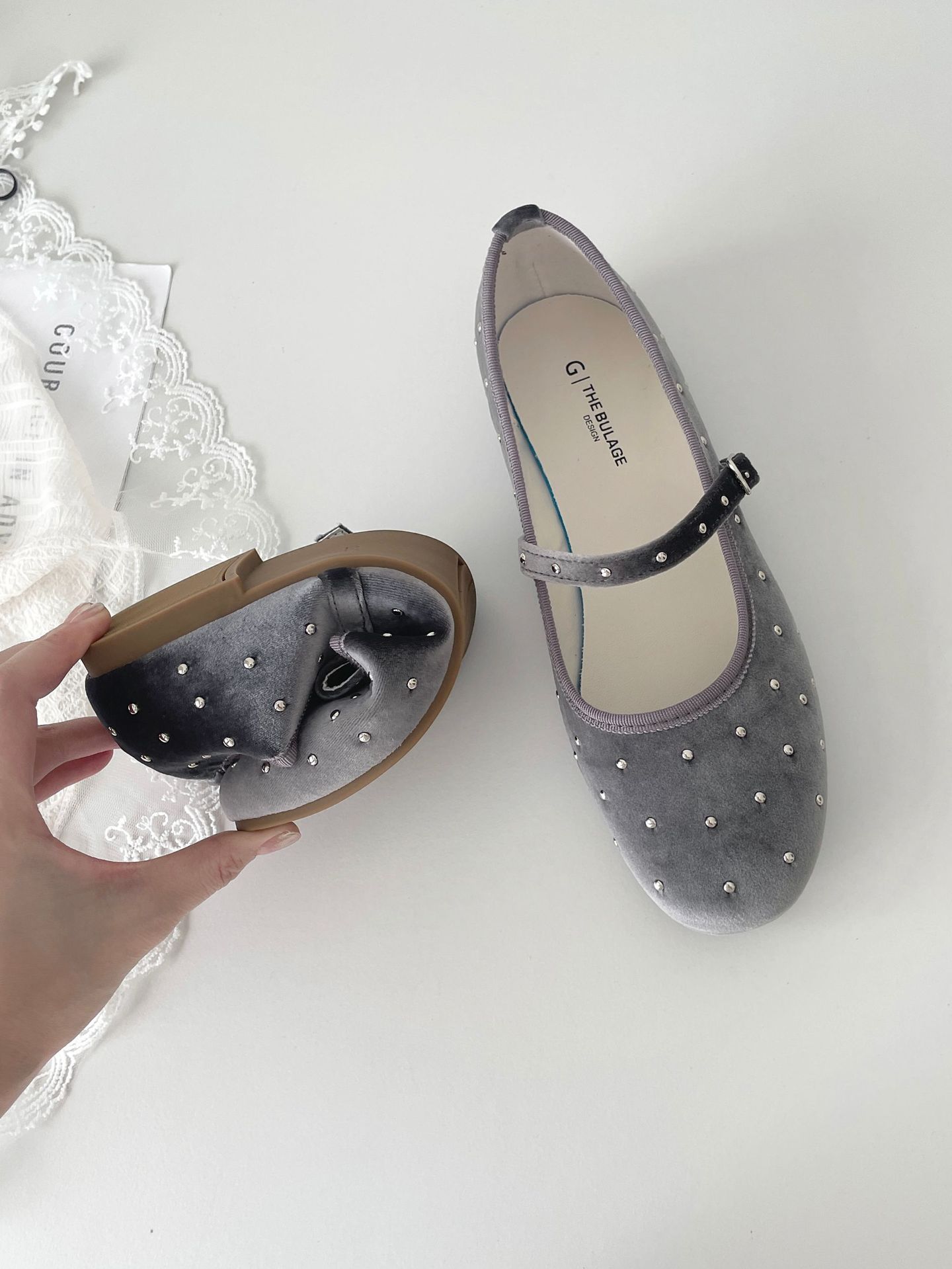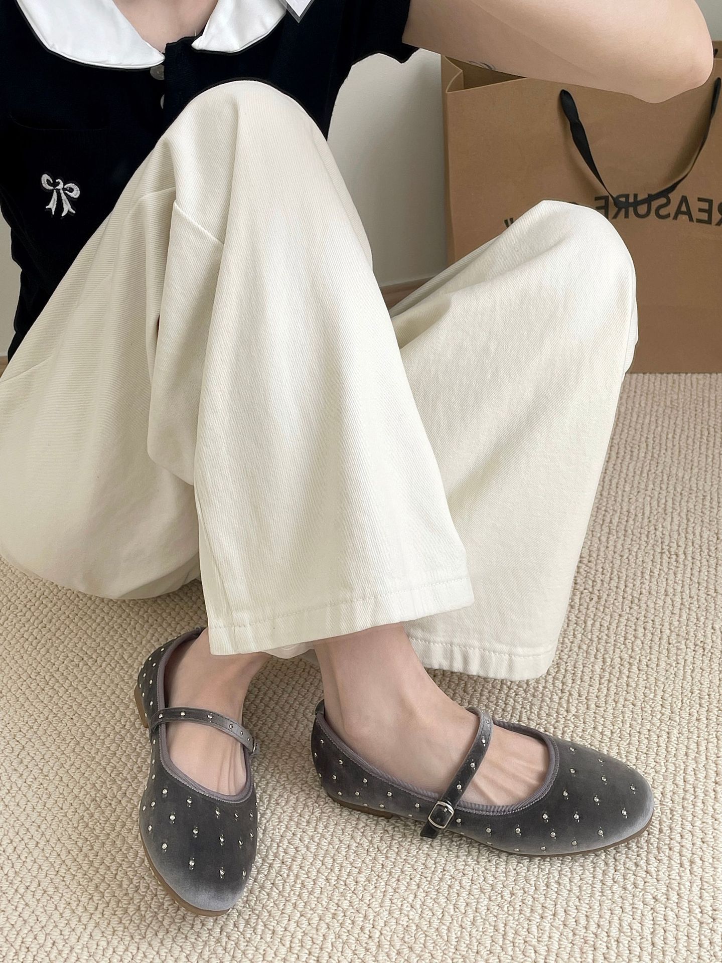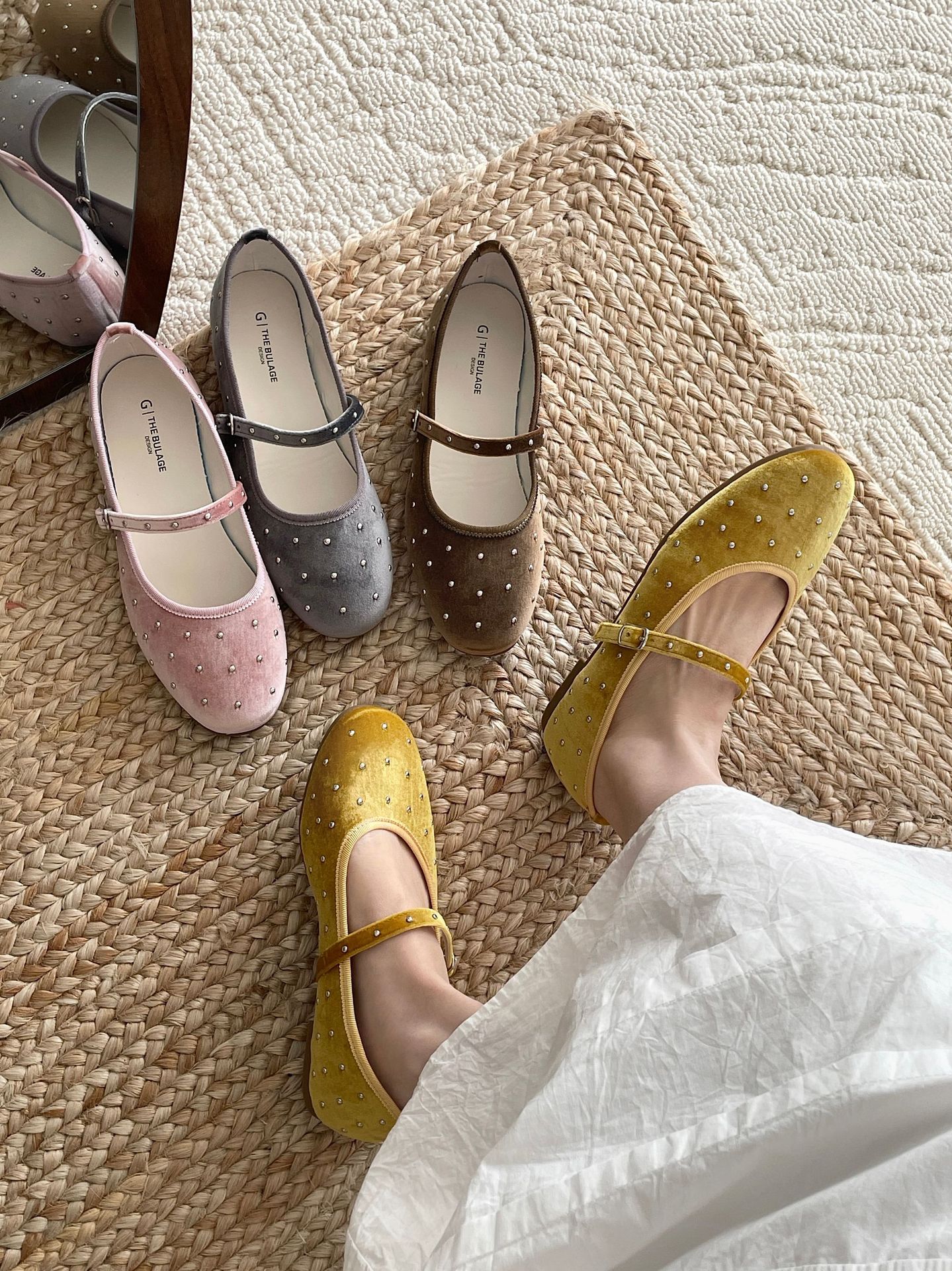 한국식 레트로 니치 벨벳 리벳 스타 메리 제인 여성 신발 이른 봄 새 한 단어 버클 플랫 슈즈스토어 가기