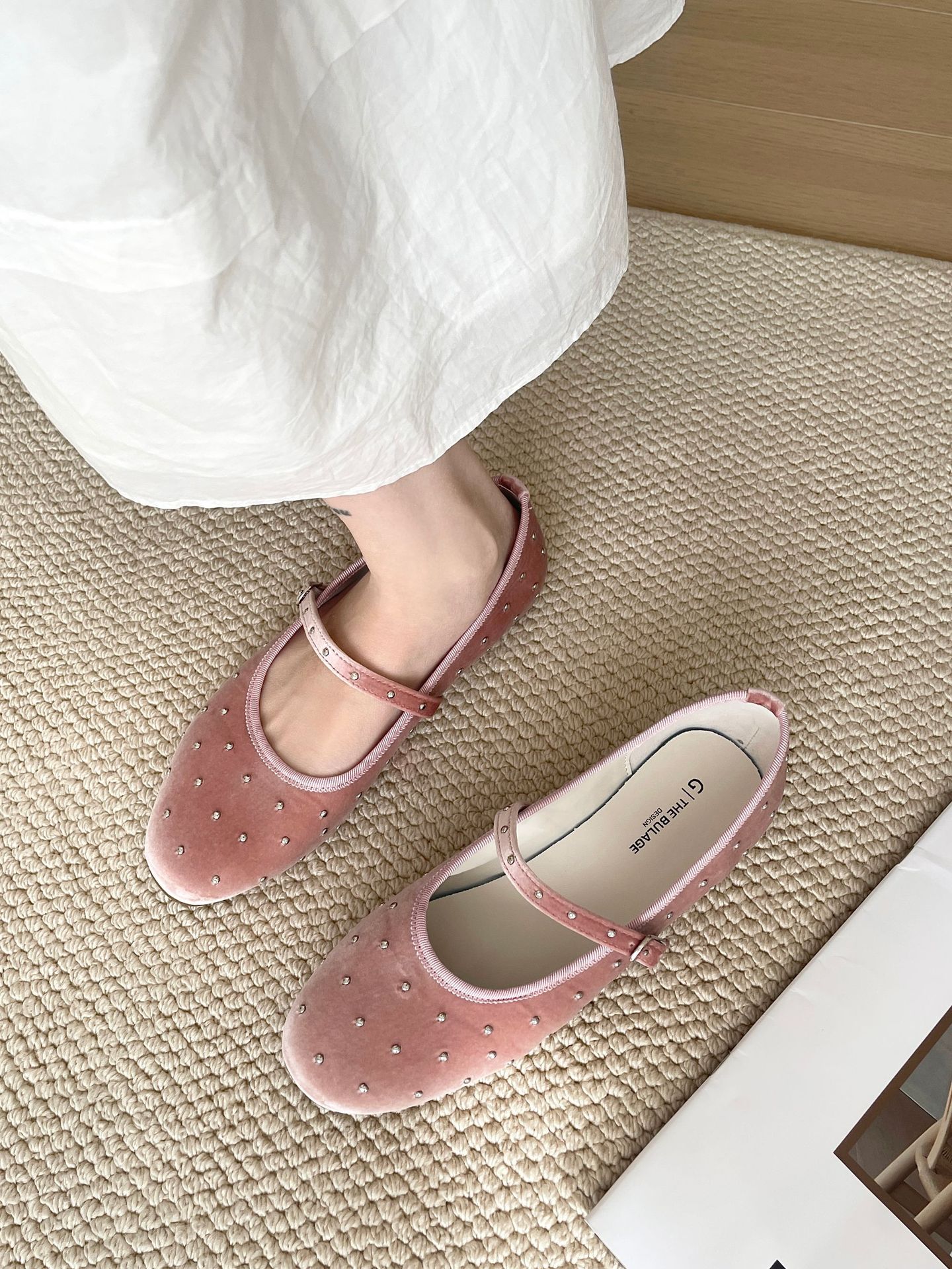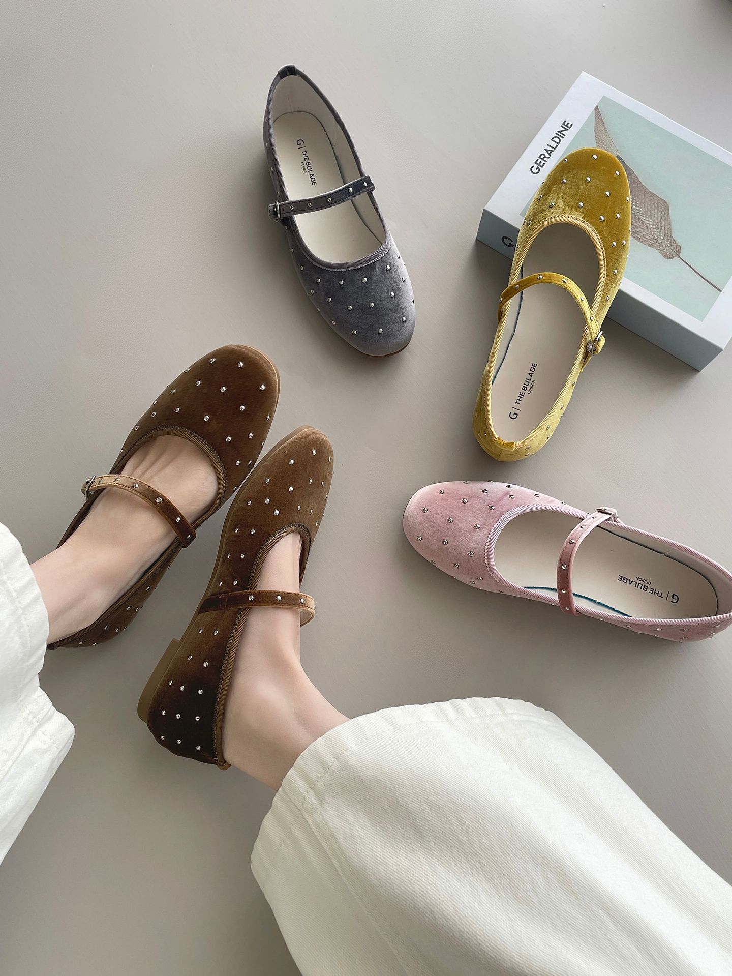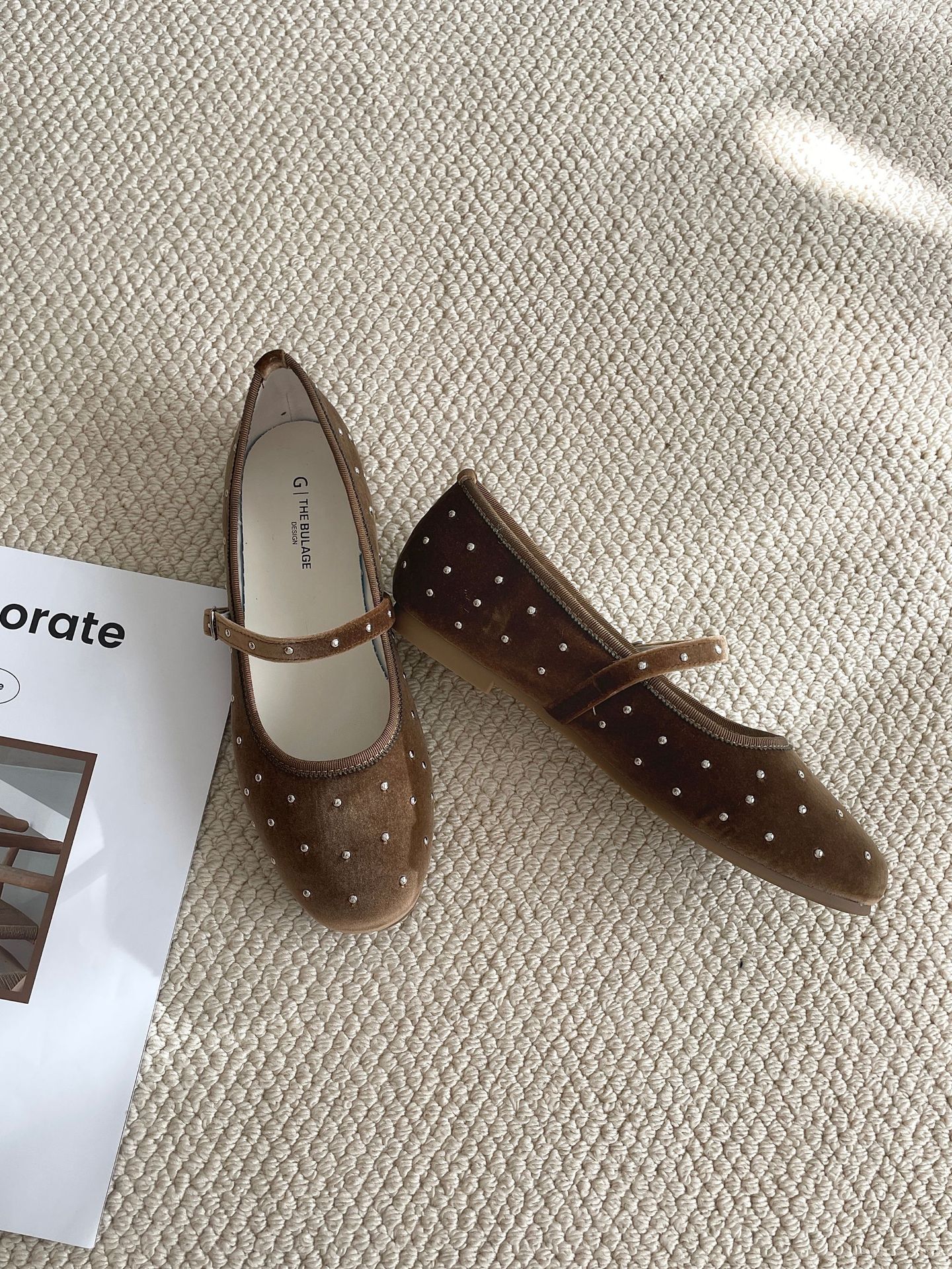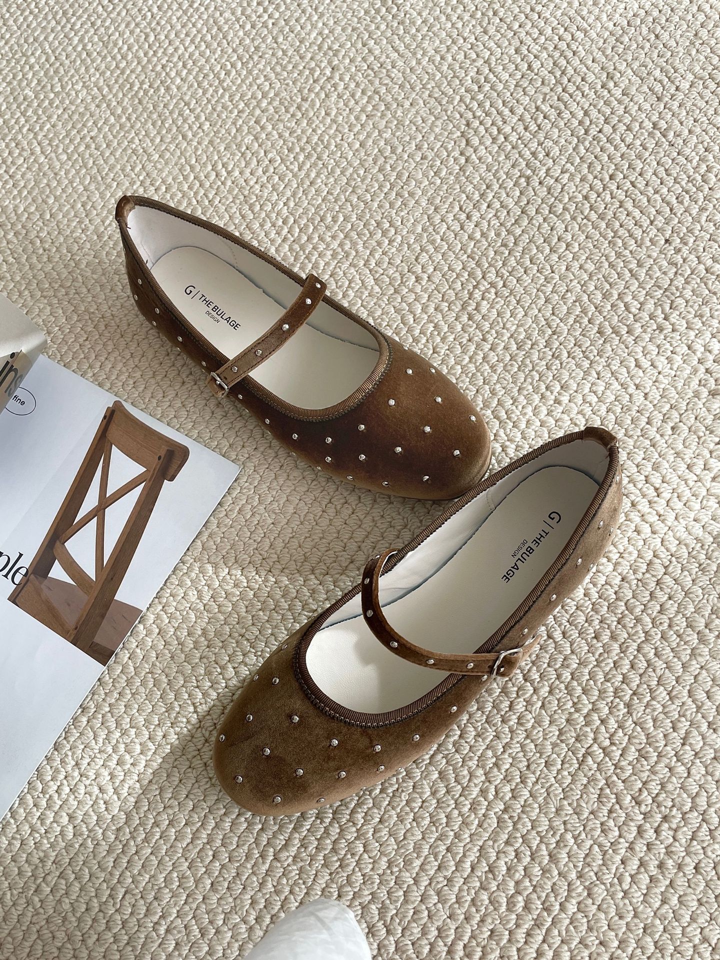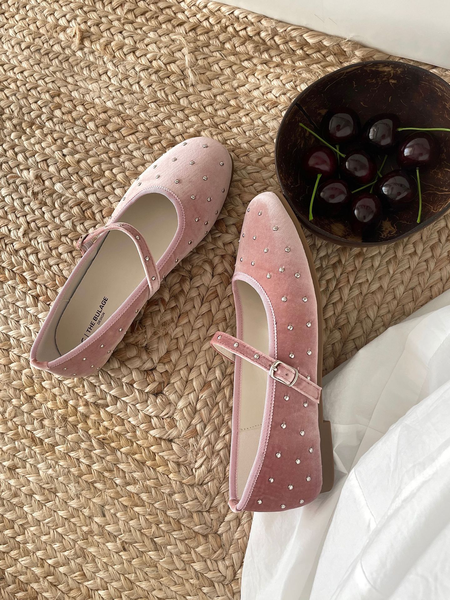 한국식 레트로 니치 벨벳 리벳 스타 메리 제인 여성 신발 이른 봄 새 한 단어 버클 플랫 슈즈스토어 가기