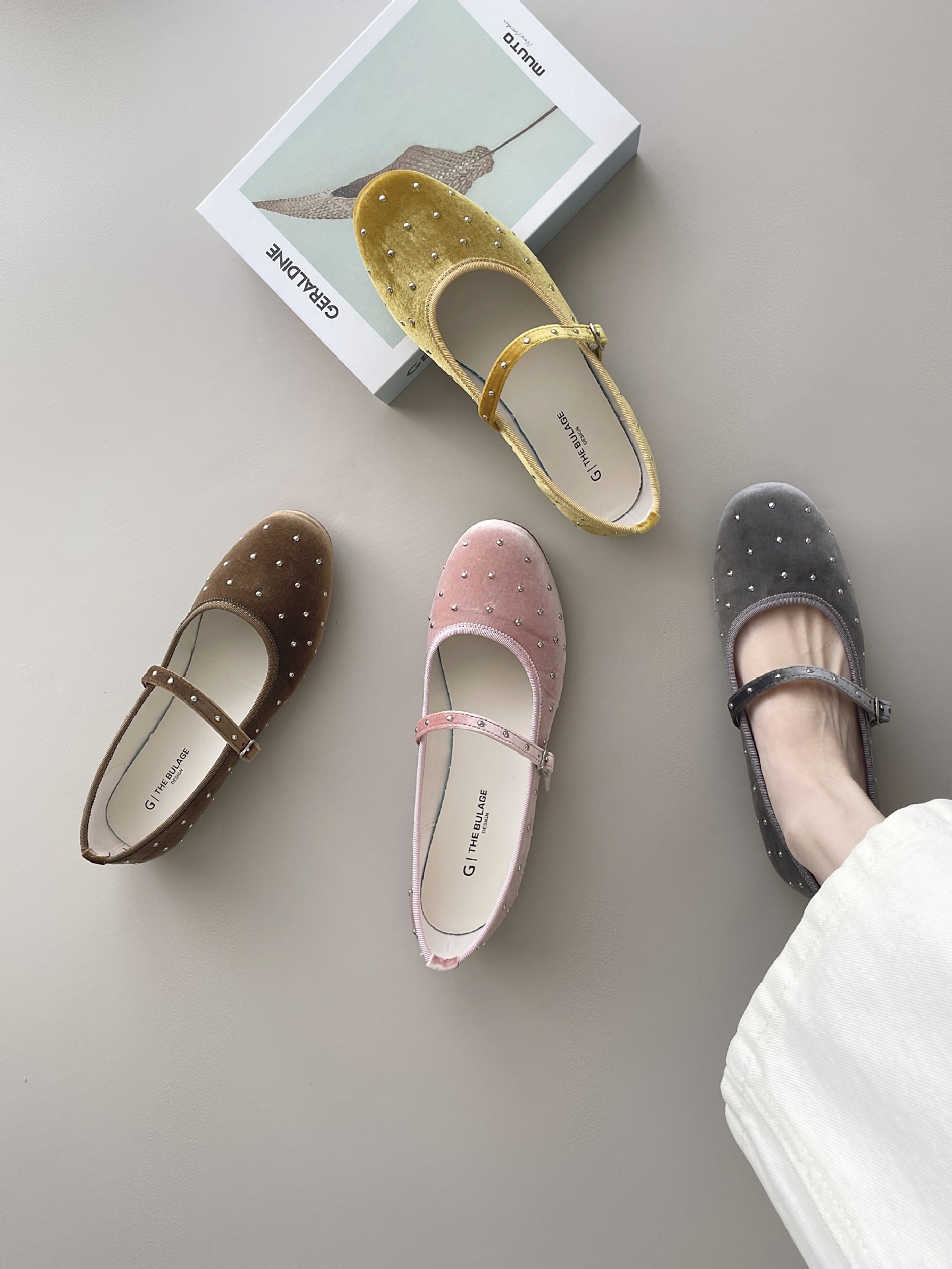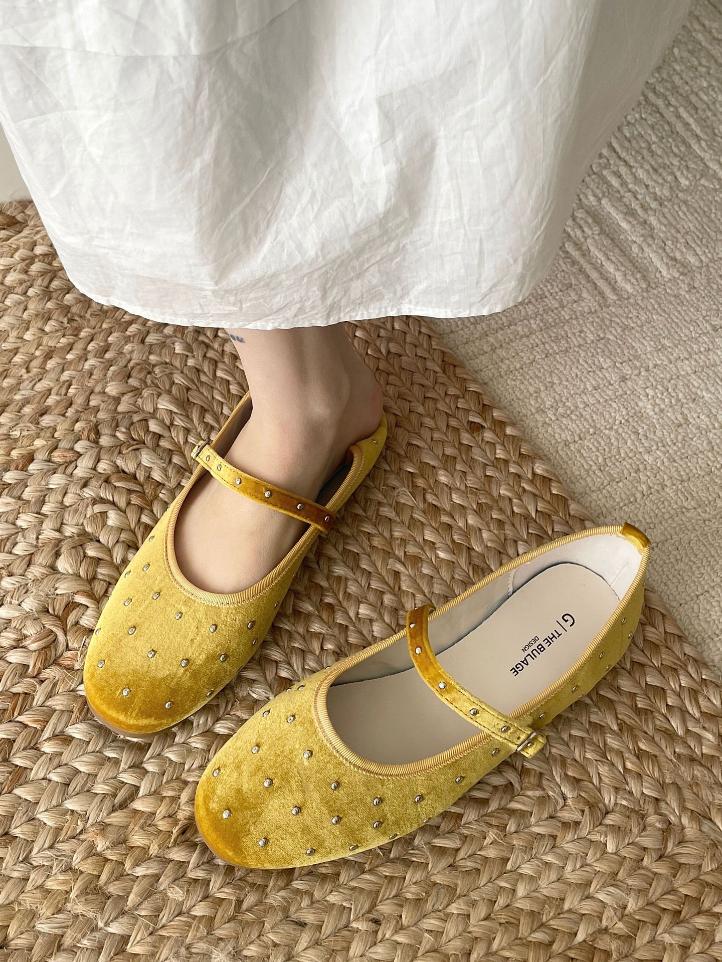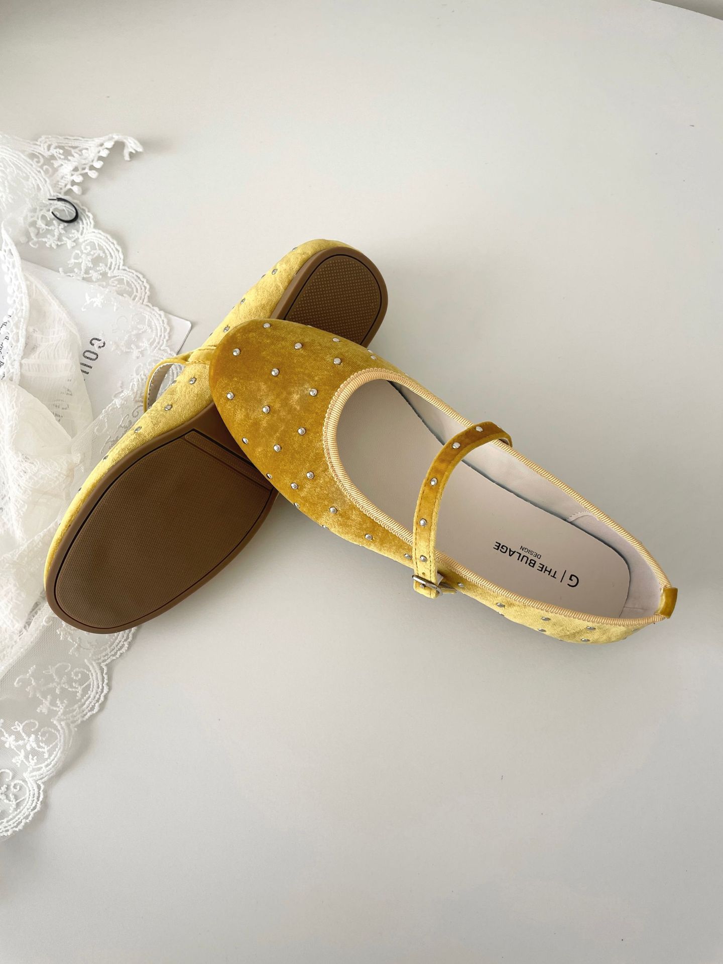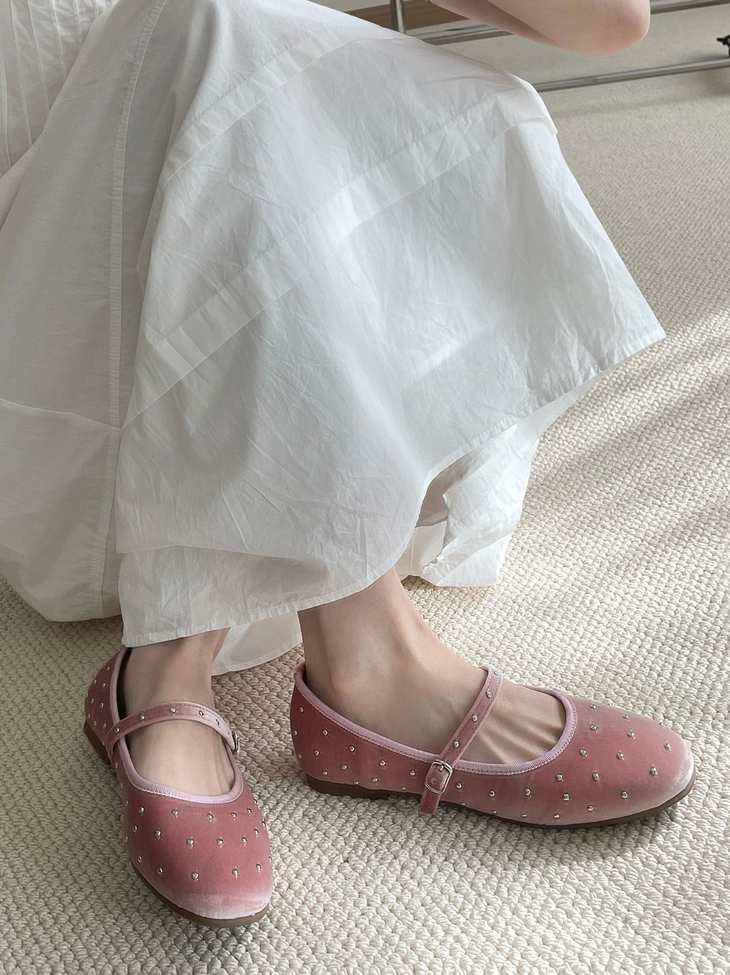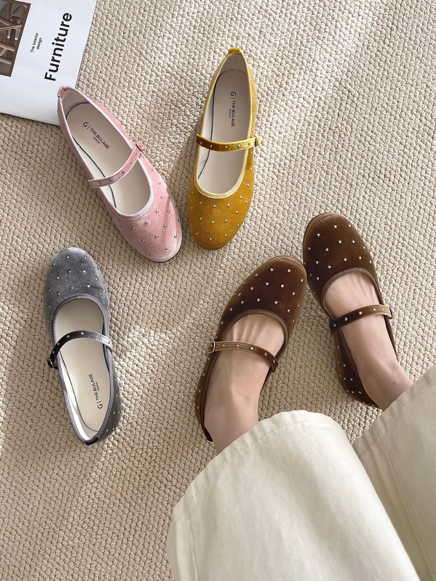 한국식 레트로 니치 벨벳 리벳 스타 메리 제인 여성 신발 이른 봄 새 한 단어 버클 플랫 슈즈스토어 가기