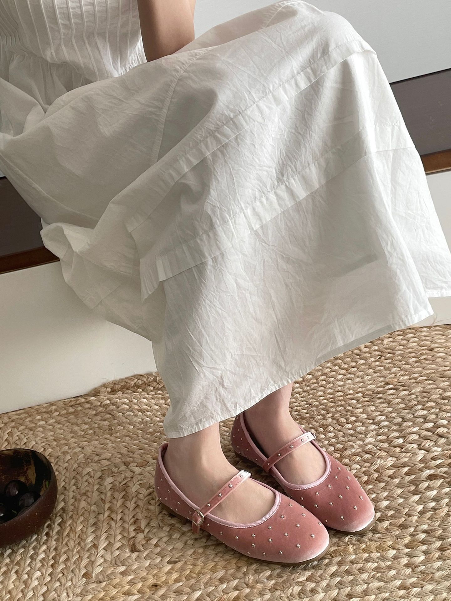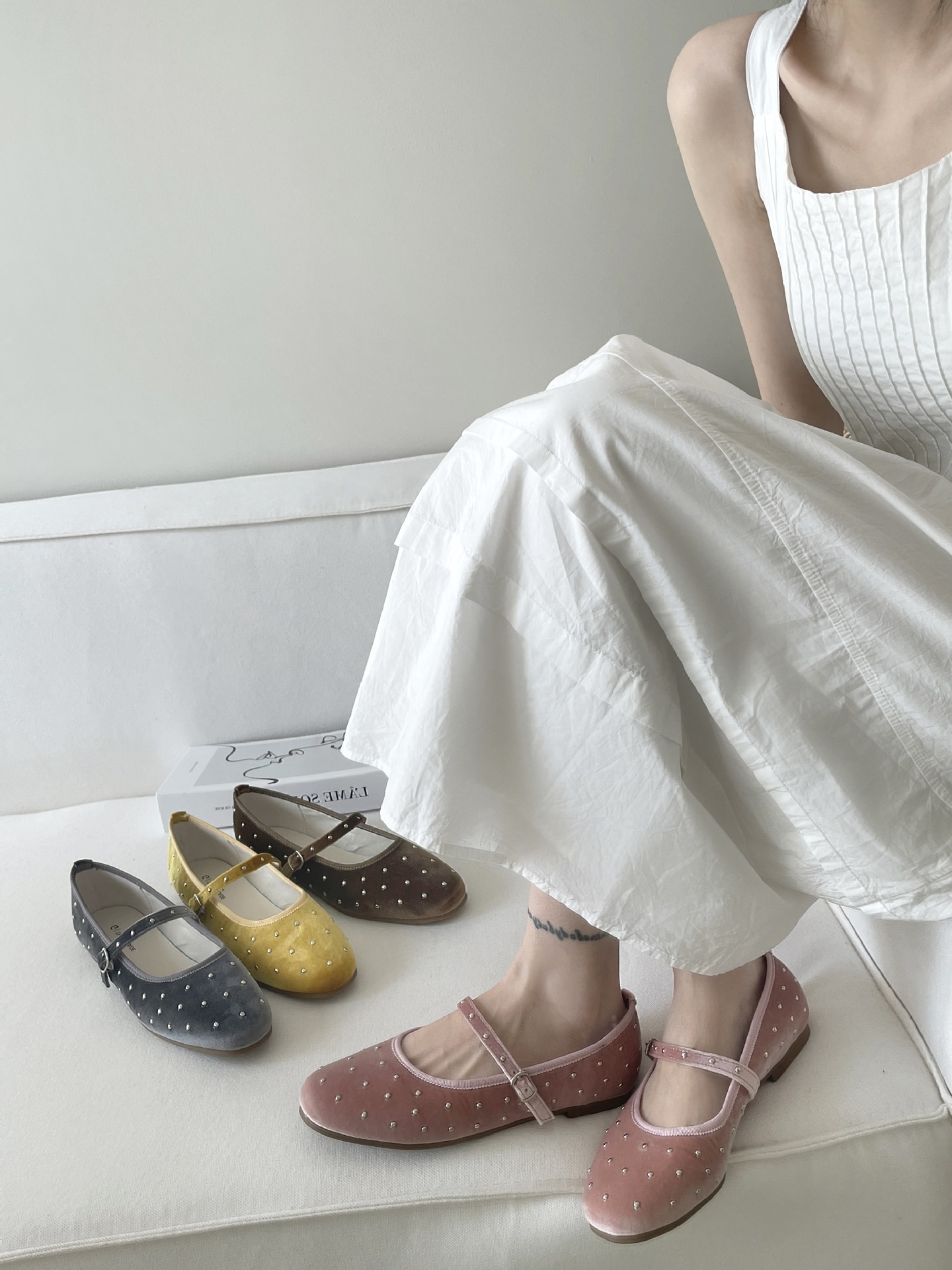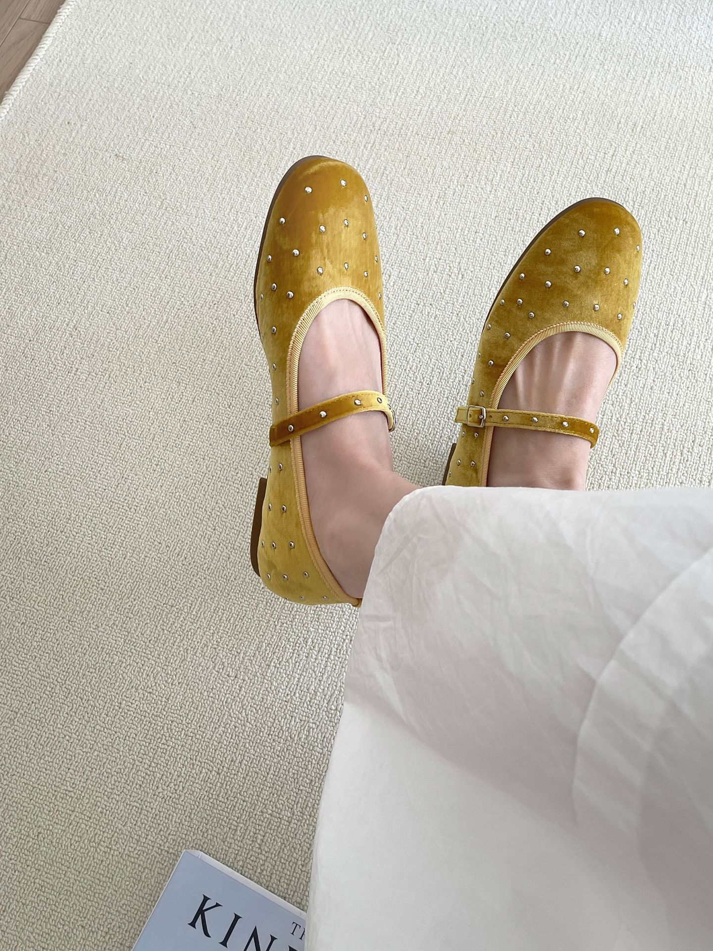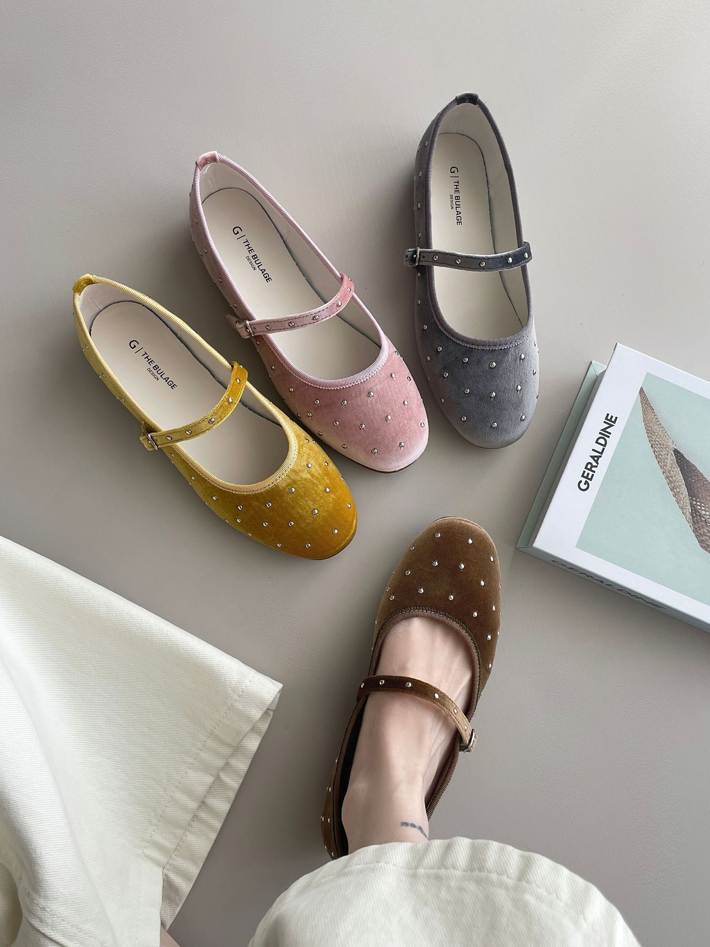 한국식 레트로 니치 벨벳 리벳 스타 메리 제인 여성 신발 이른 봄 새 한 단어 버클 플랫 슈즈스토어 가기