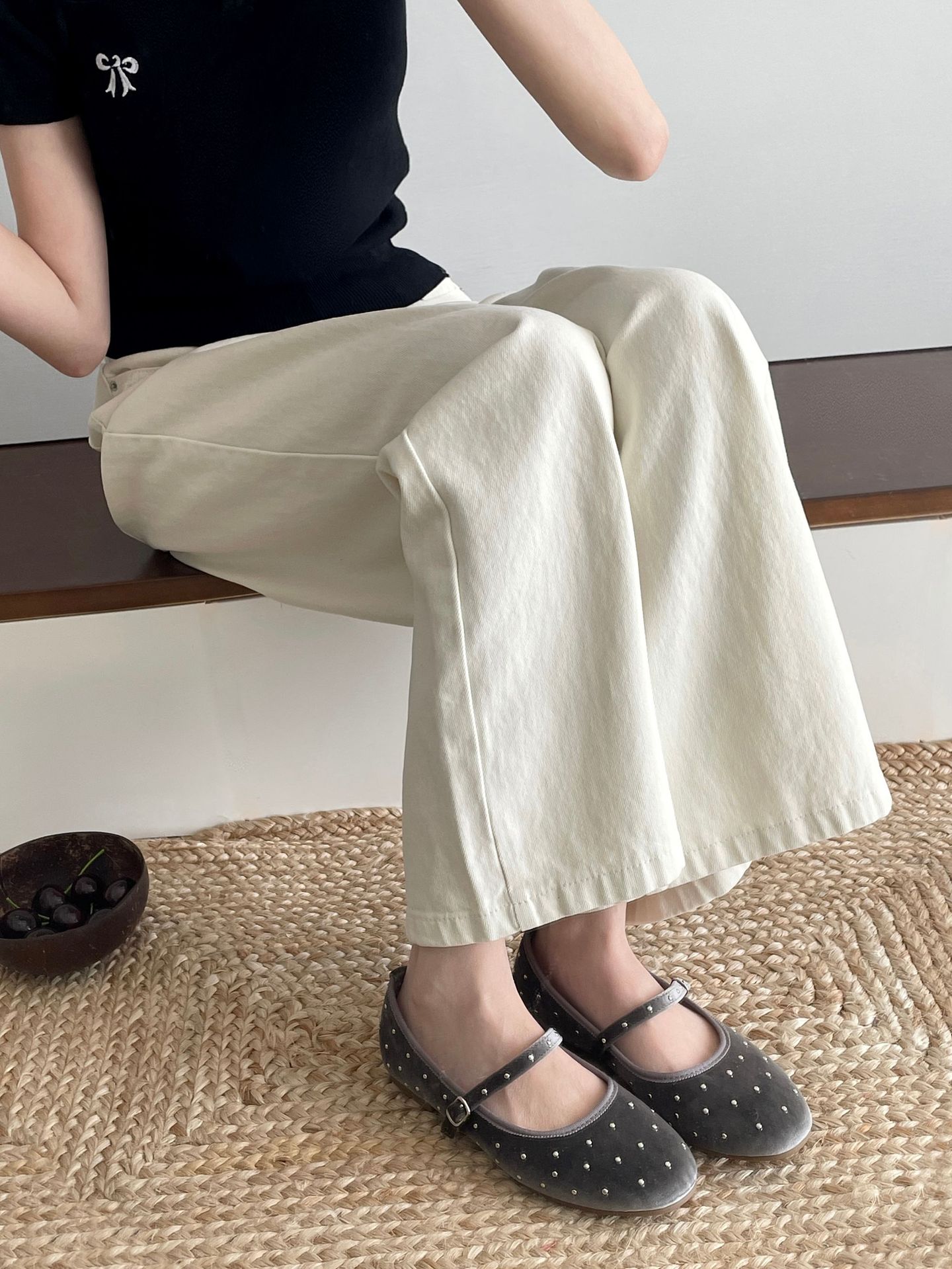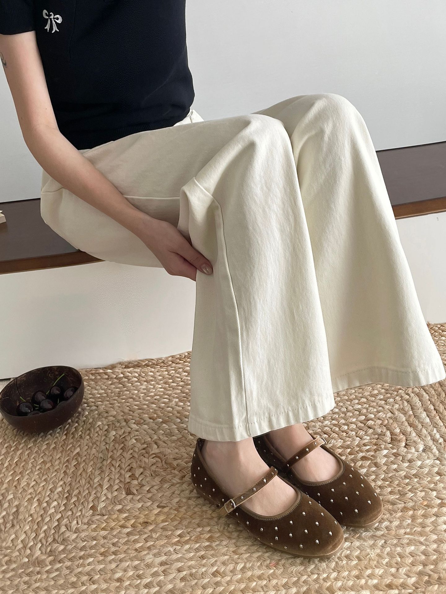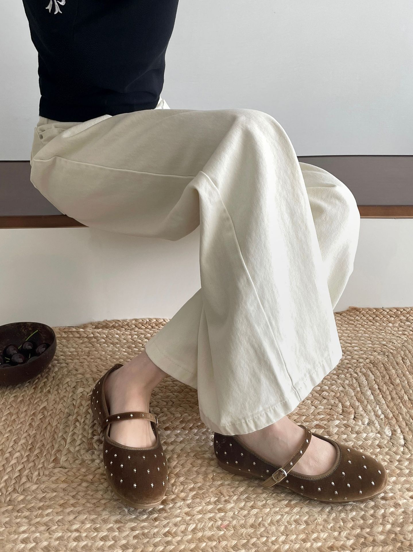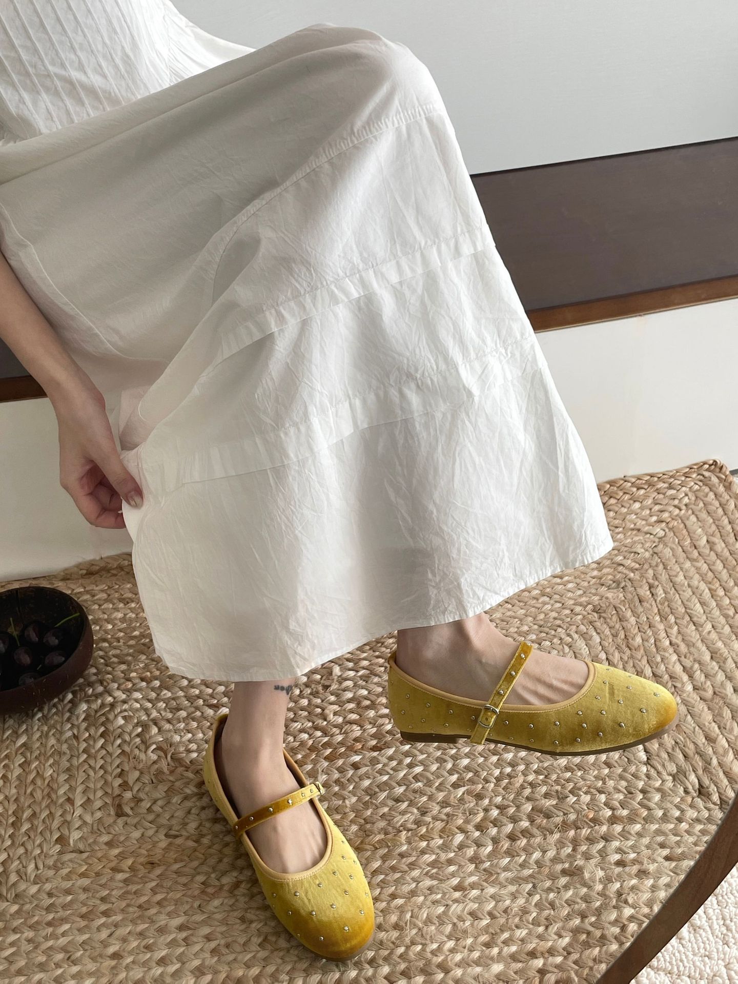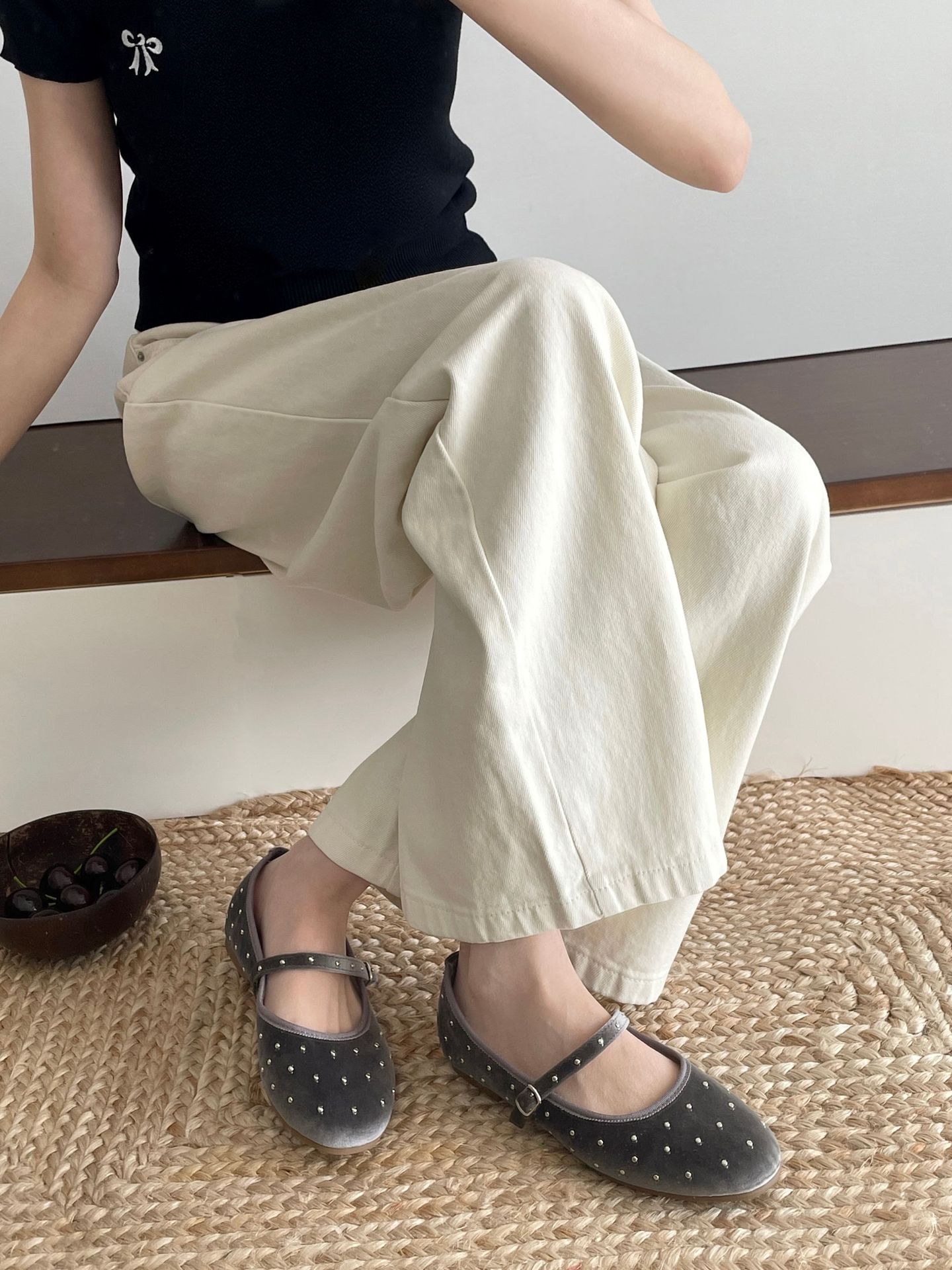 한국식 레트로 니치 벨벳 리벳 스타 메리 제인 여성 신발 이른 봄 새 한 단어 버클 플랫 슈즈스토어 가기