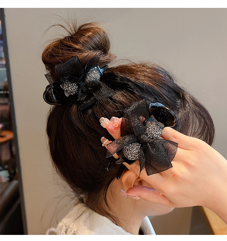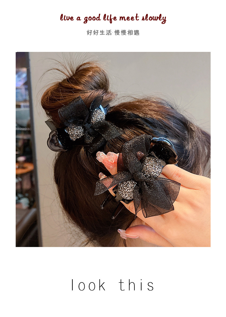 라인스톤 고급 센스 포니 테일 헤어핀 소녀의 머리 뒤 활 잡아 클립 볼 헤드 대형 클립 헤드웨어 탑 클립