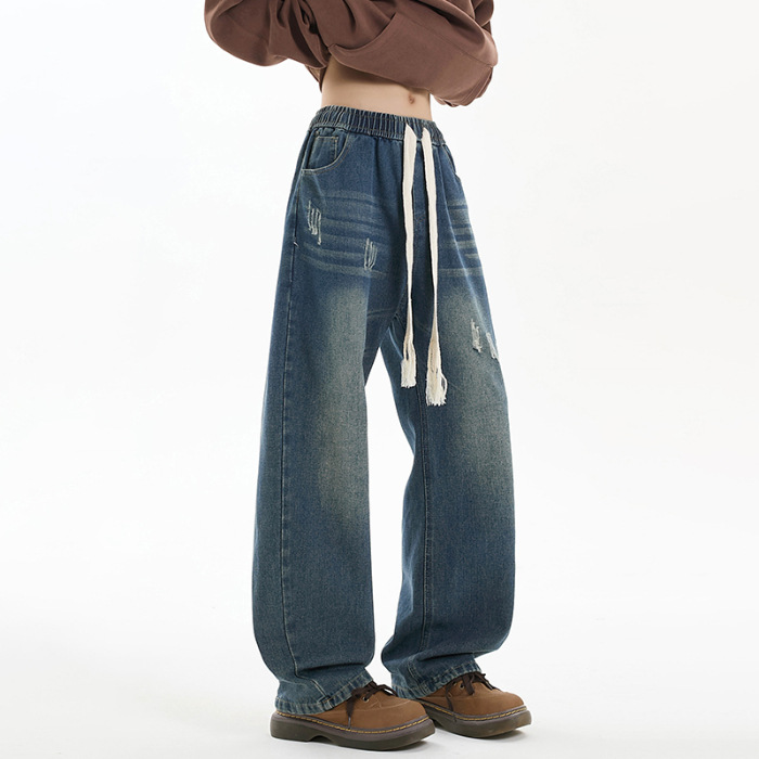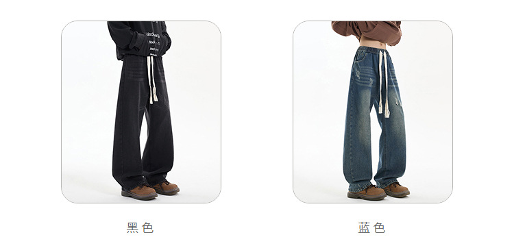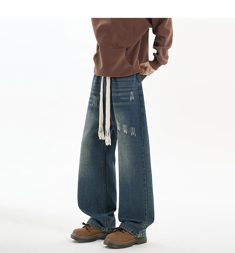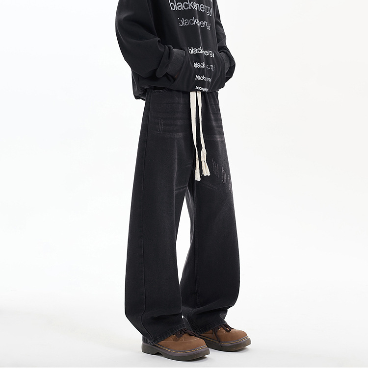 2025 아메리칸 스타일 빈티지 드레스 청바지 남성용 루즈 플러스 사이즈 바지 블랙 블루 패션 남성 바지스토어 가기