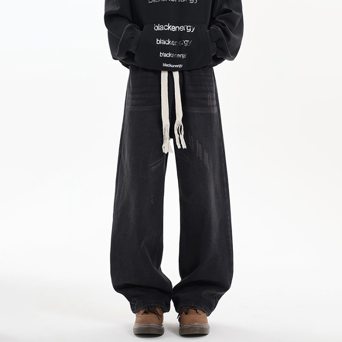 2025 아메리칸 스타일 빈티지 드레스 청바지 남성용 루즈 플러스 사이즈 바지 블랙 블루 패션 남성 바지